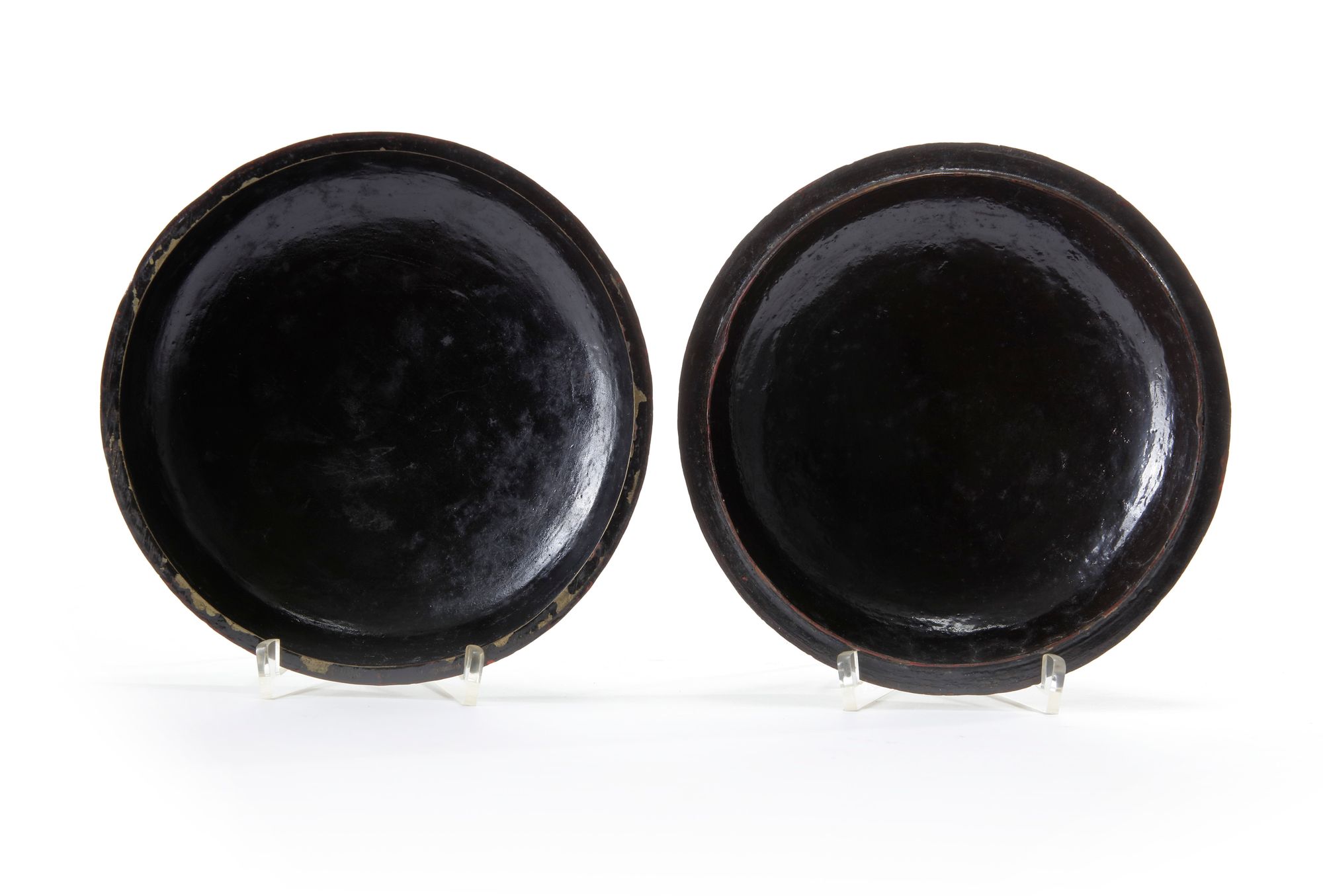 The box is carved to the top with two figures on horseback amongst trees in a mountainous landscape. The sides are carved with dense flowers. The interior and base are lacquered black.