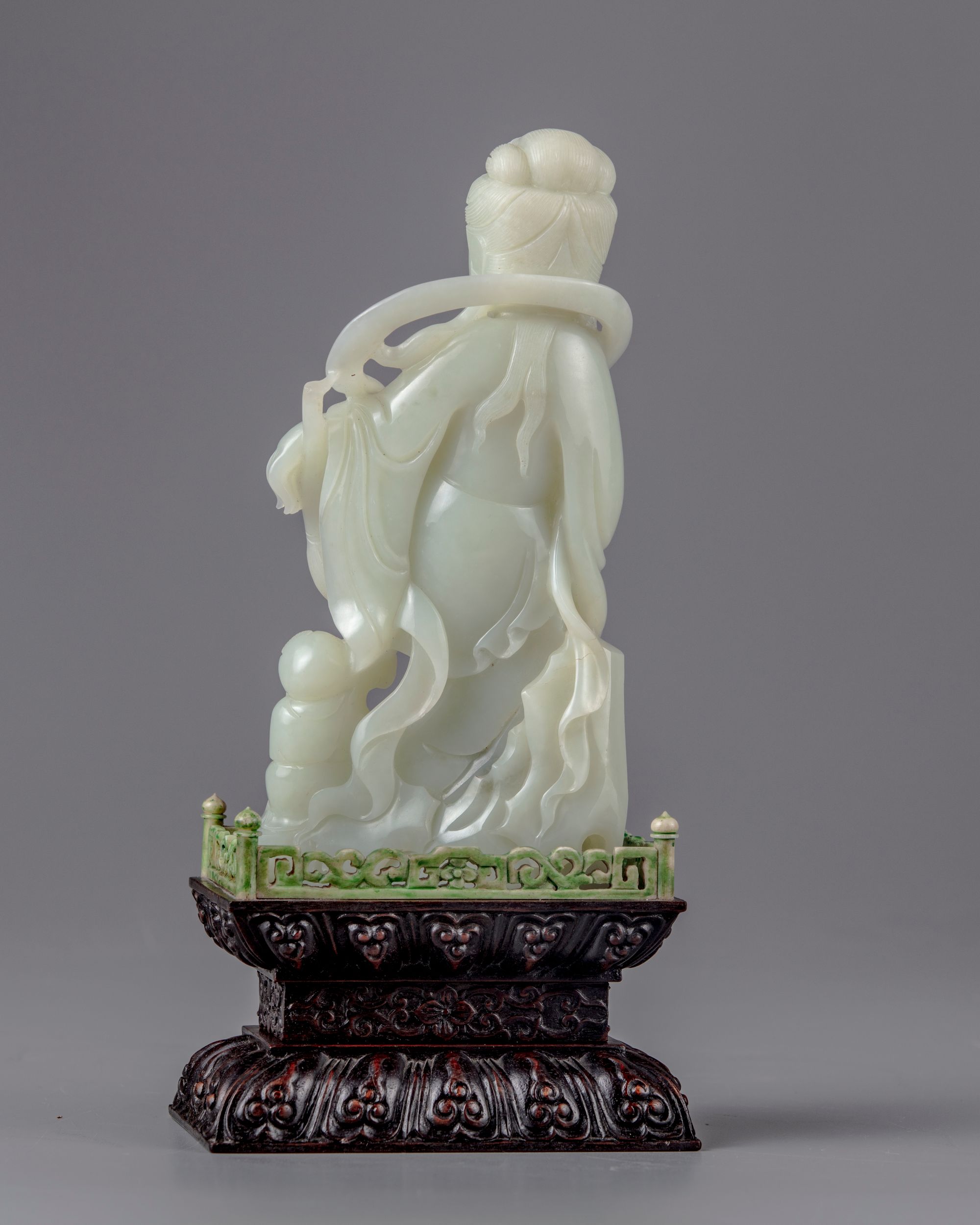 The height of the Guanyin with stand is 26.00 cm.The measurements of the box are 36.00 x 19.00 x 12.00 cm.