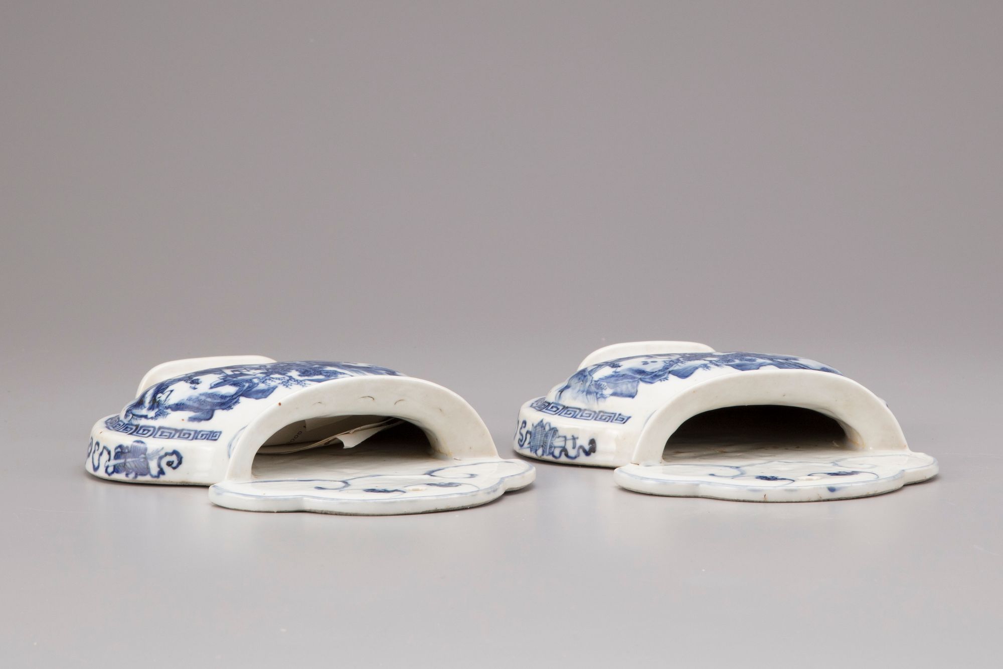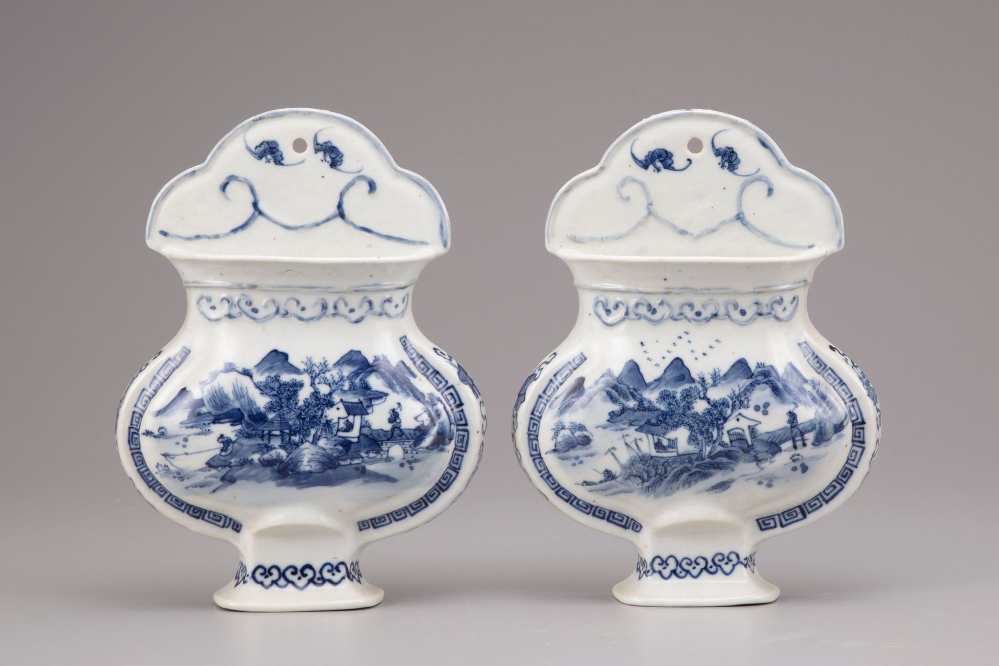 Decorated in underglaze blue with landscapes, antiquities and bats.