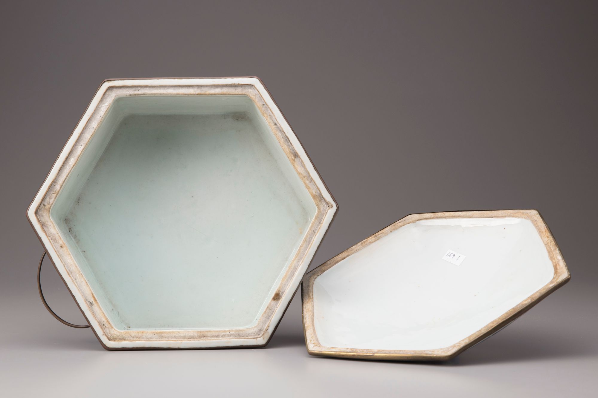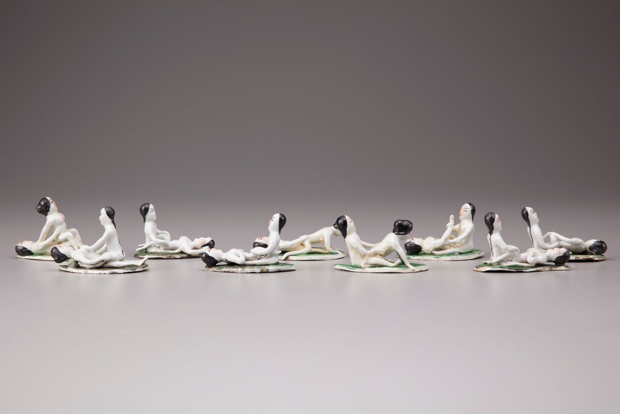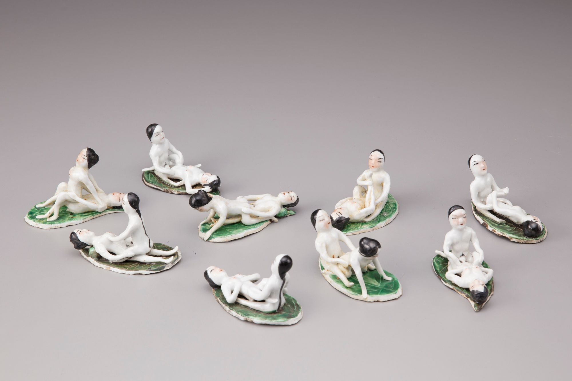 Chinese porcelain box with cover and 9 erotic porcelain figures