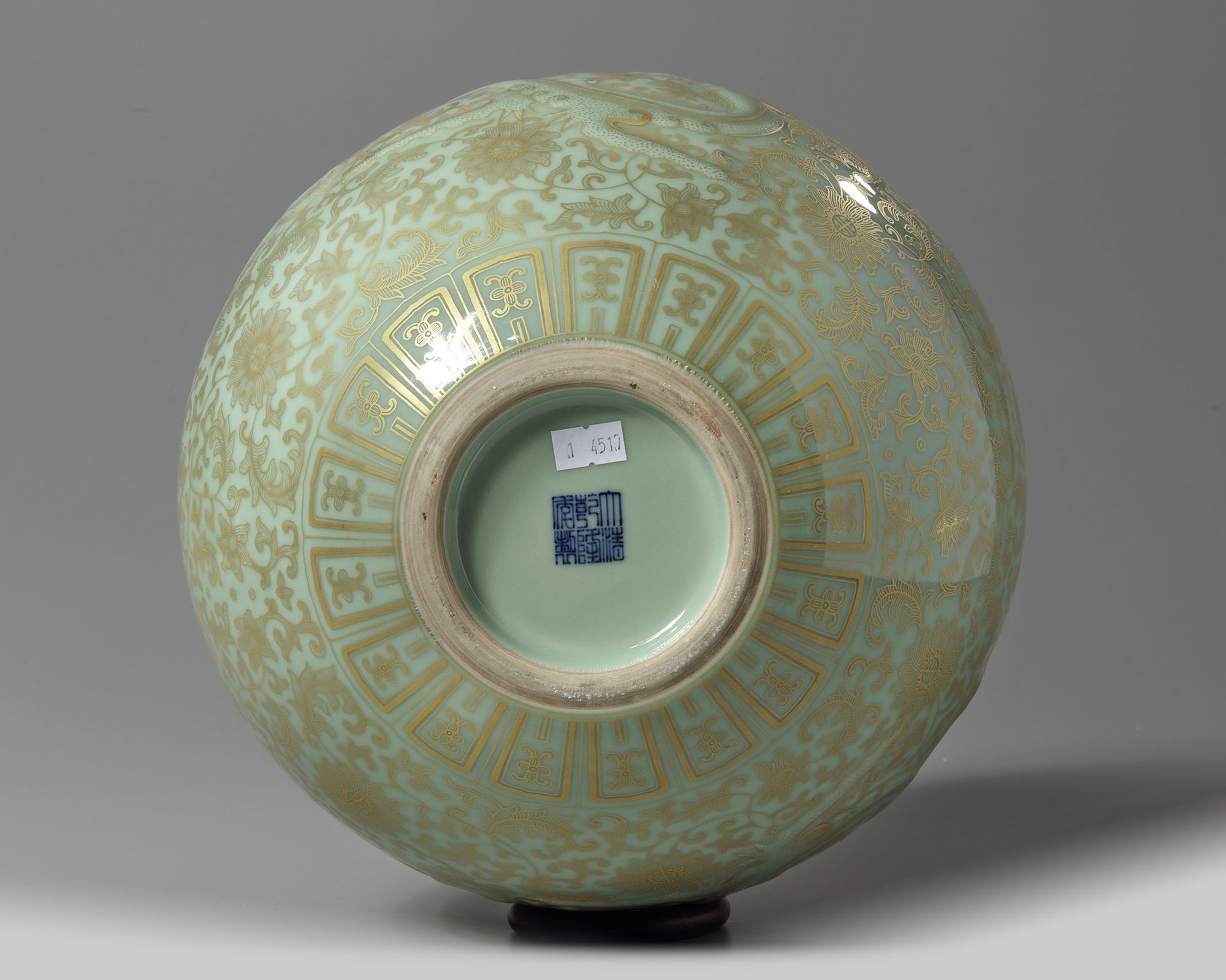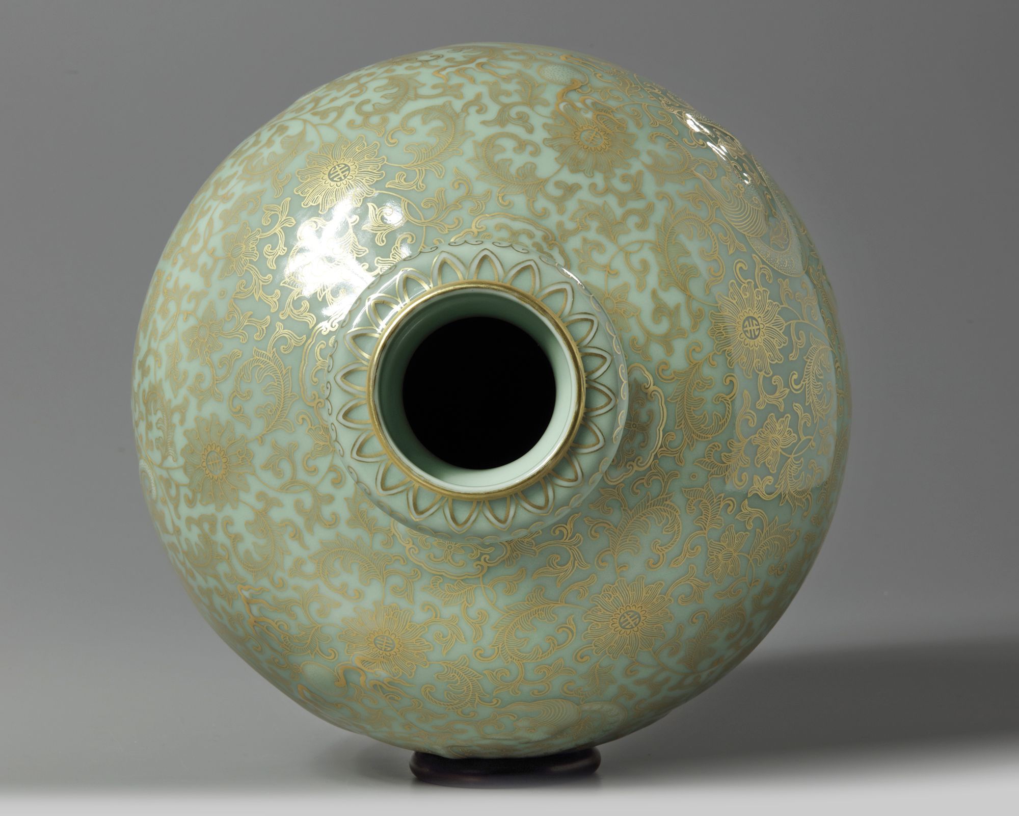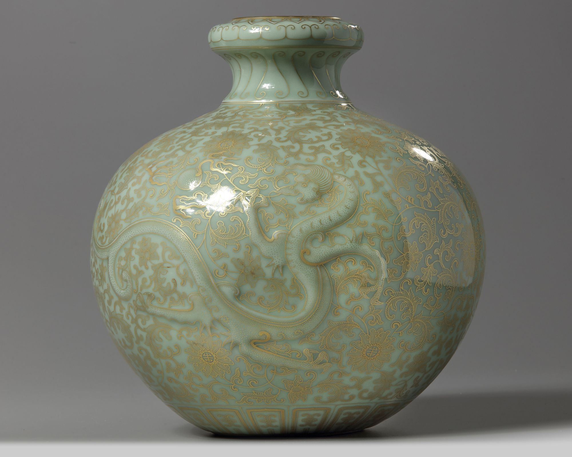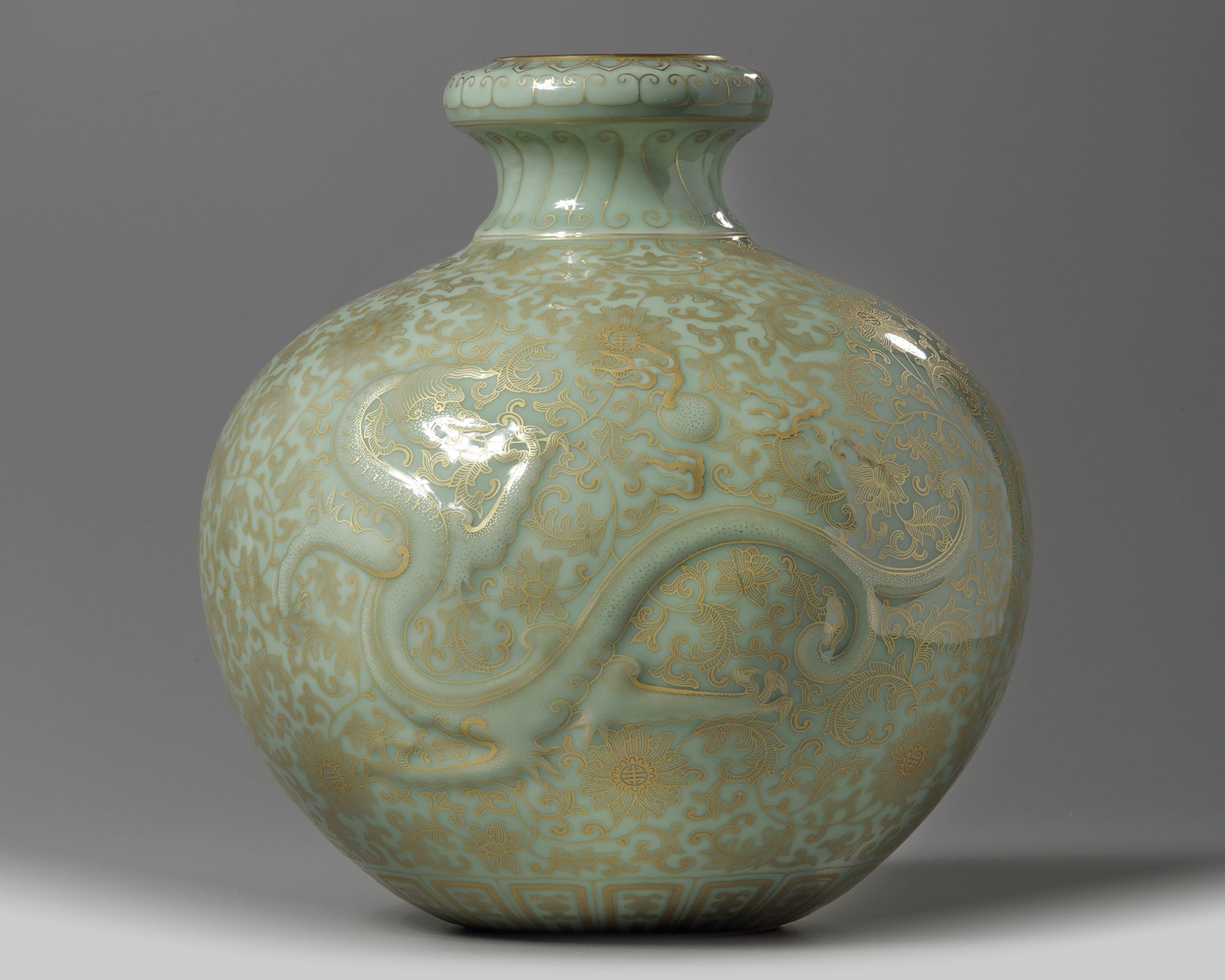 A Chinese gilt-decorated celadon-glazed 'kui dragon' vase