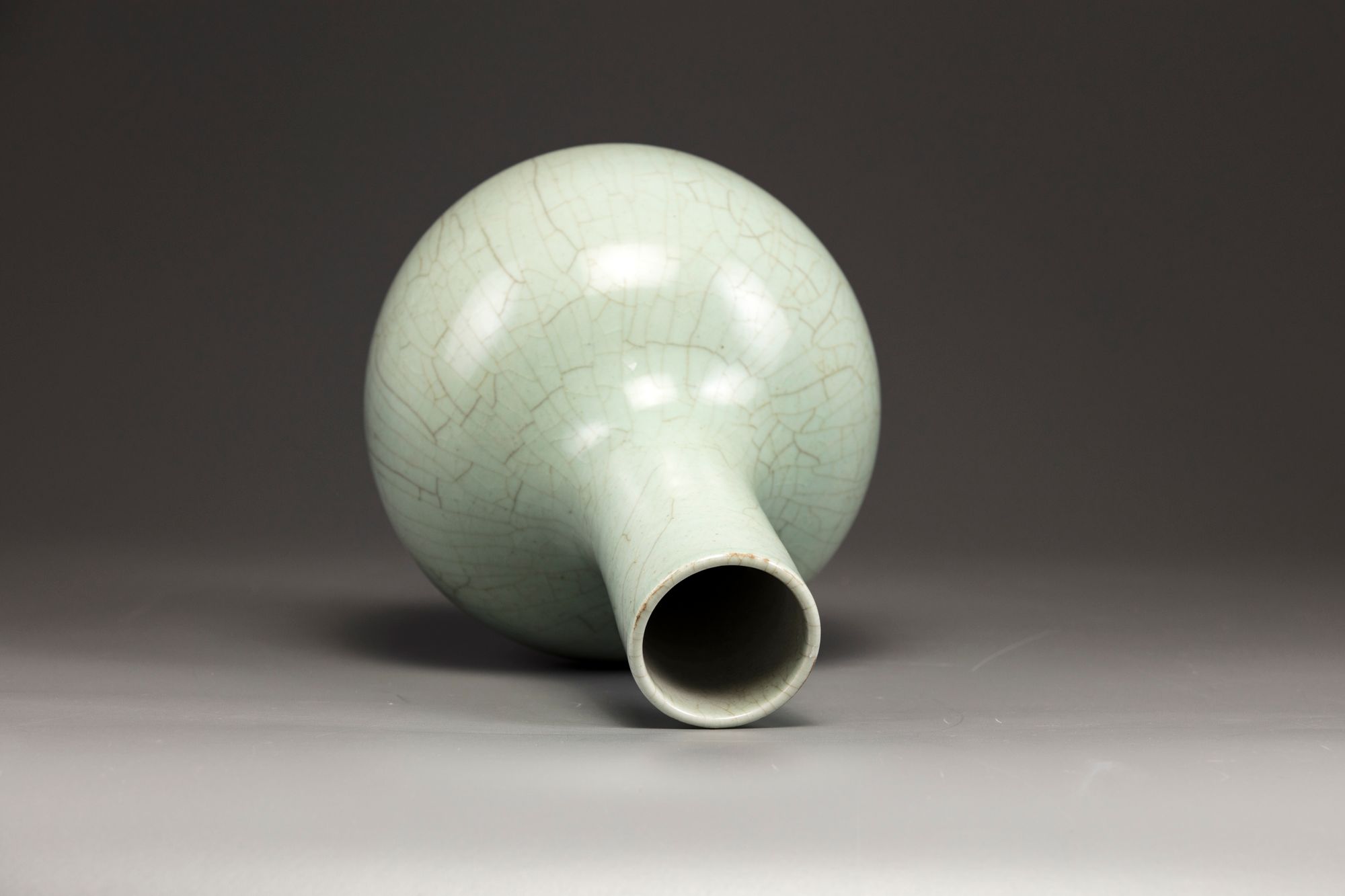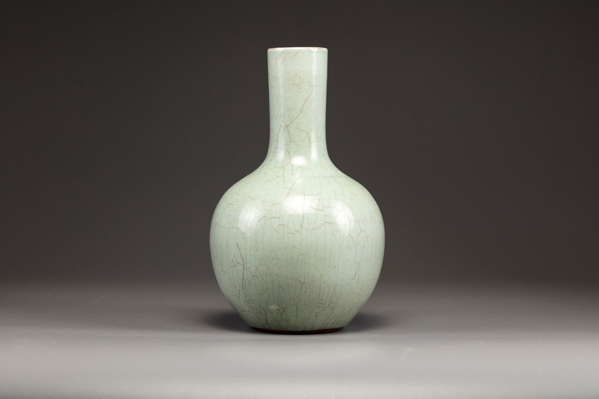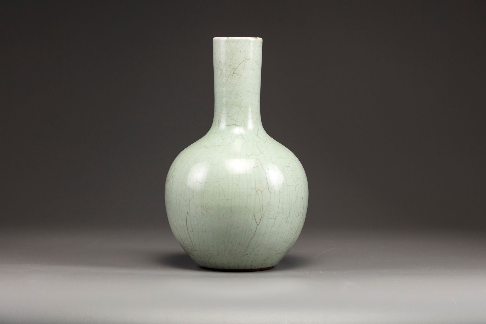 A Chinese celadon crackle glaze baluster vase ,with a tall cylindrical neck
