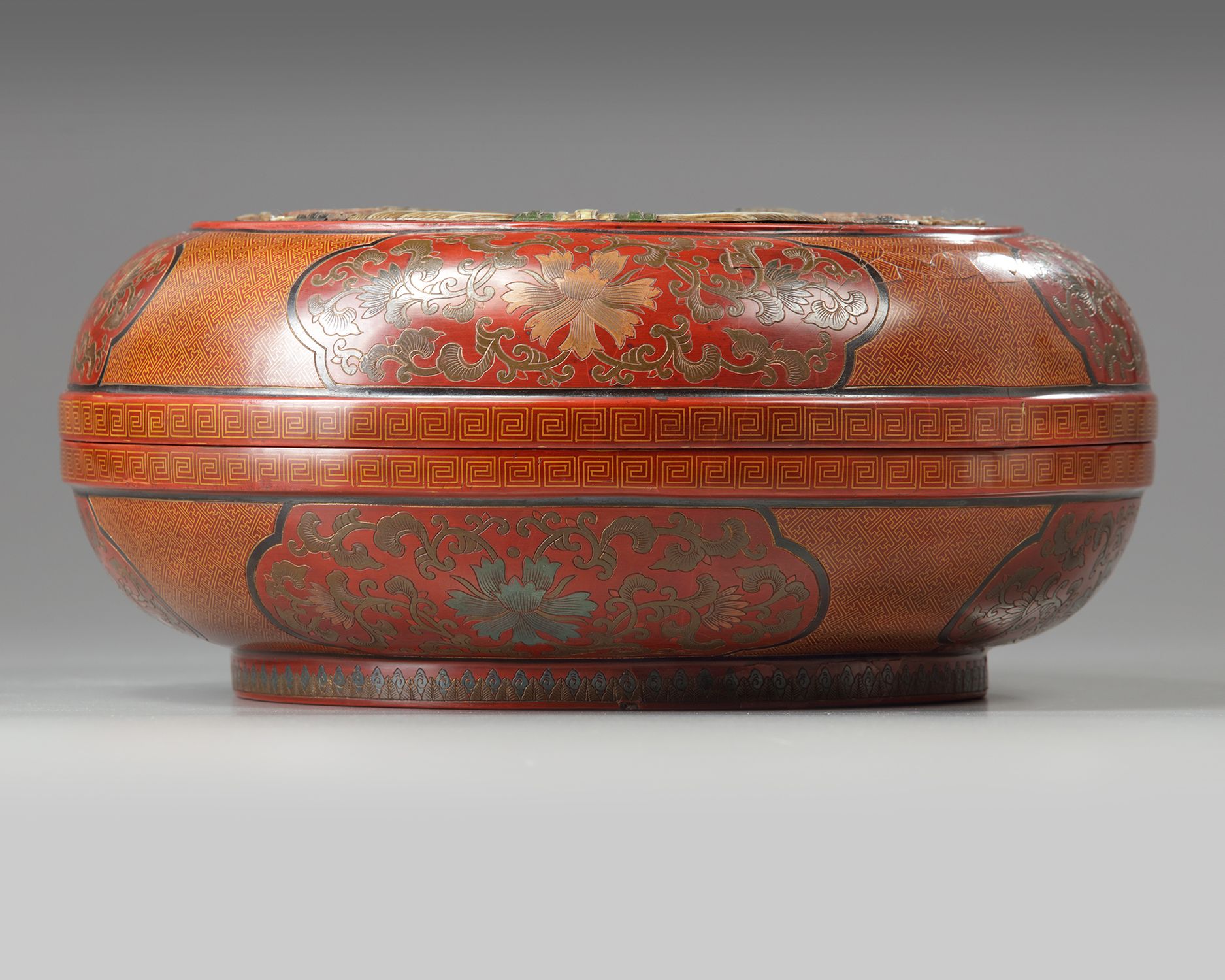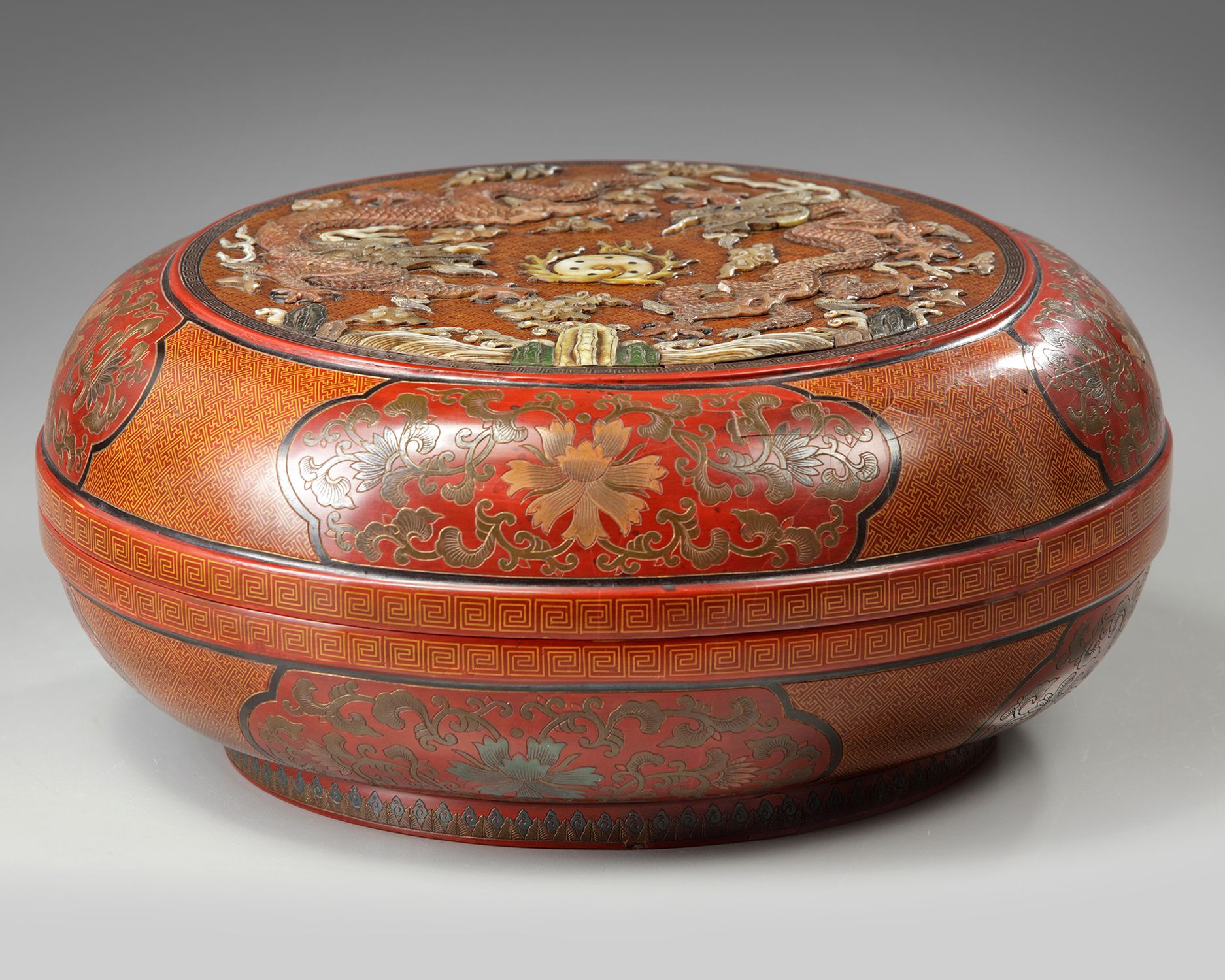 A Chinese tianqi lacquer precious objects-inlaid 'dragon' box and cover A Chinese tianqi lacquer precious objects-inlaid 'dragon' box and cover A Chinese tianqi lacquer precious objects-inlaid 'dragon' box and cover A Chinese tianqi lacquer precious objects-inlaid 'dragon' box and cover