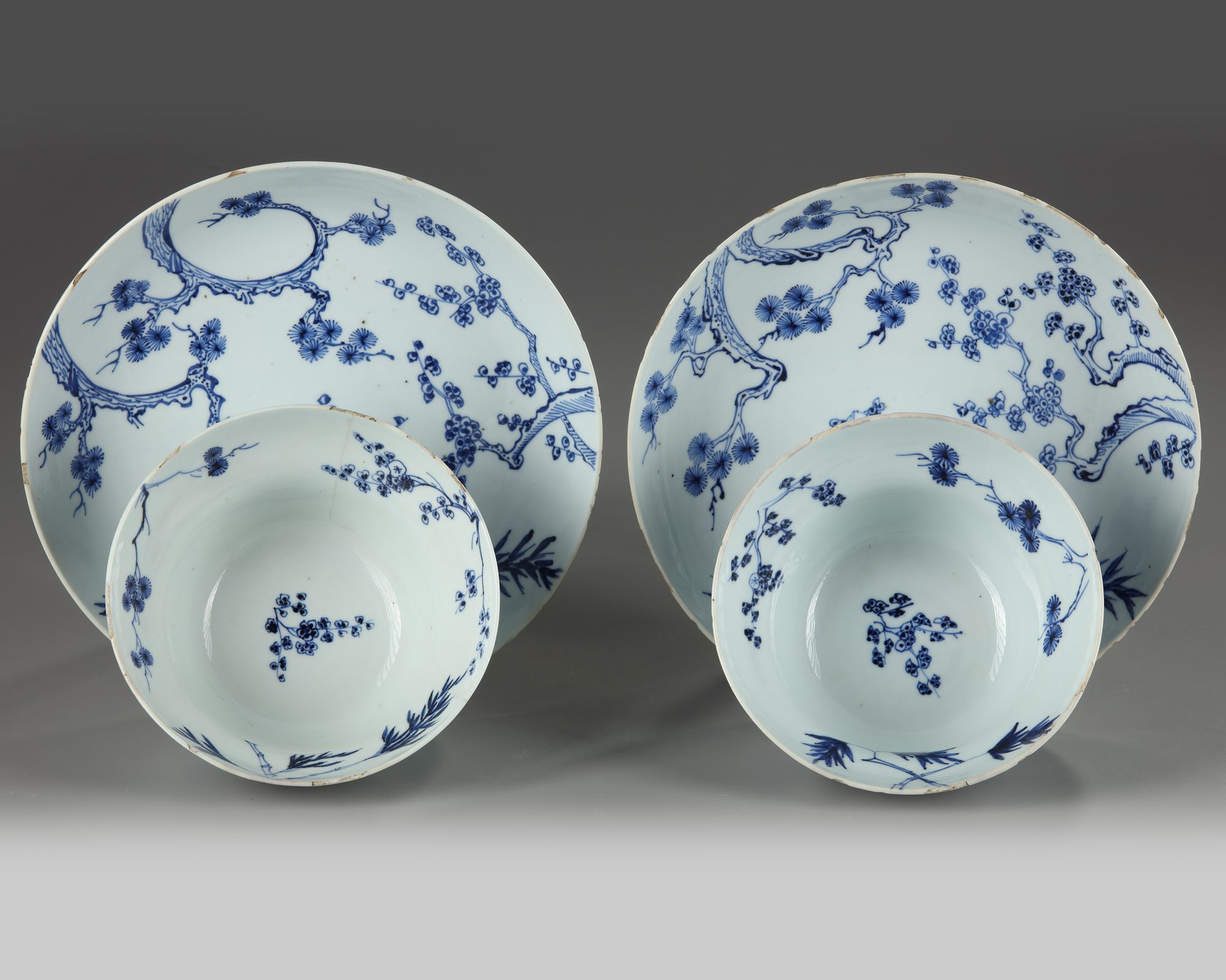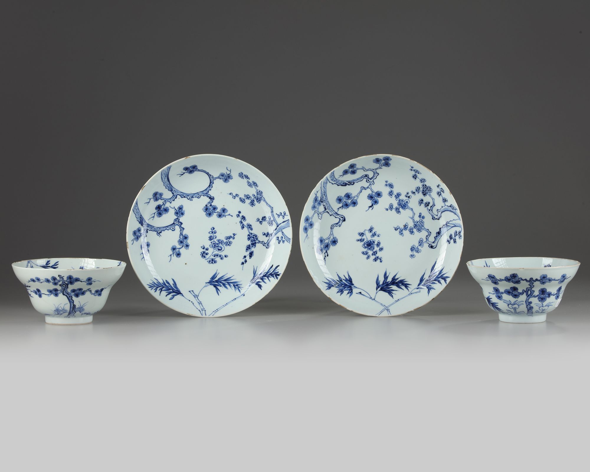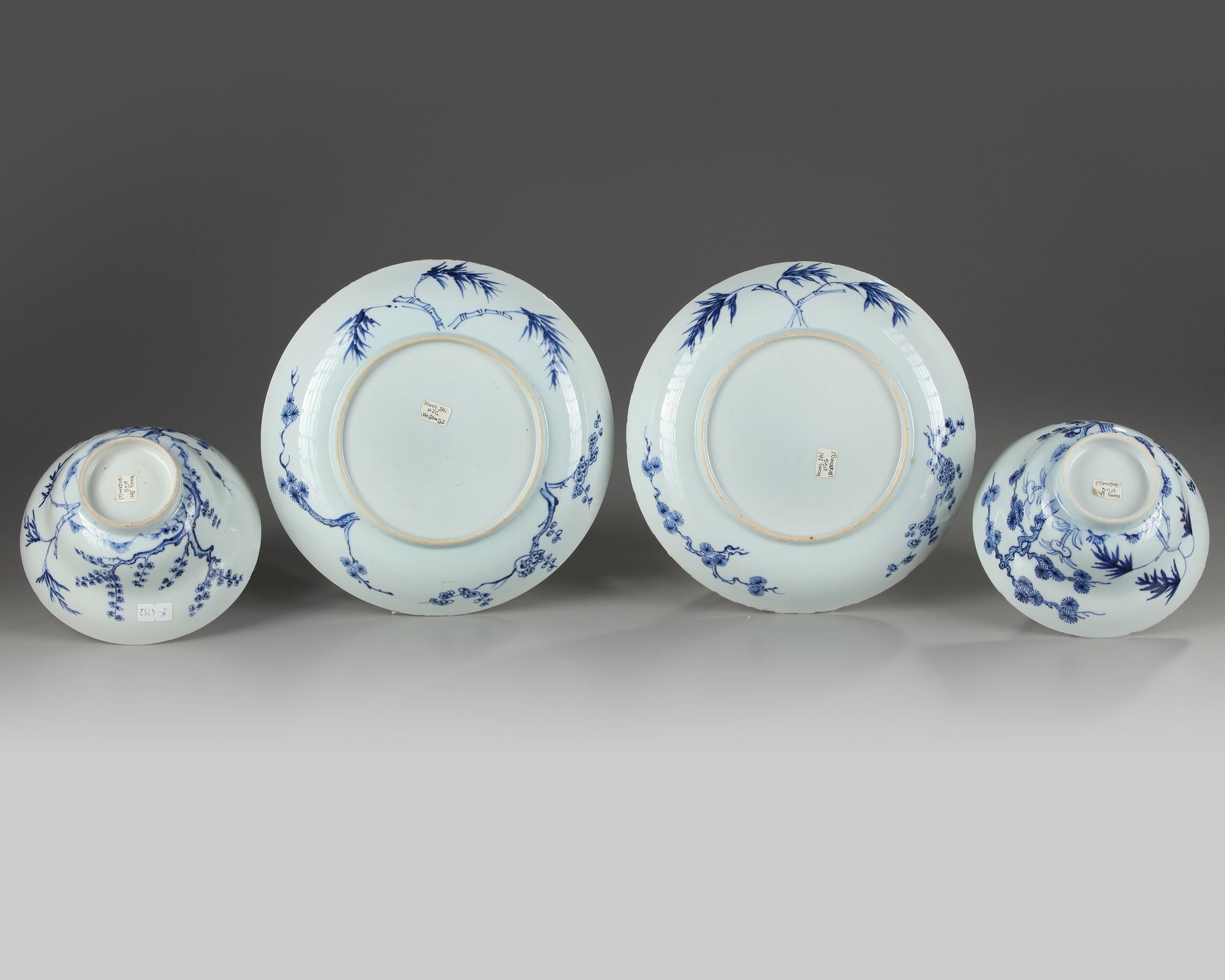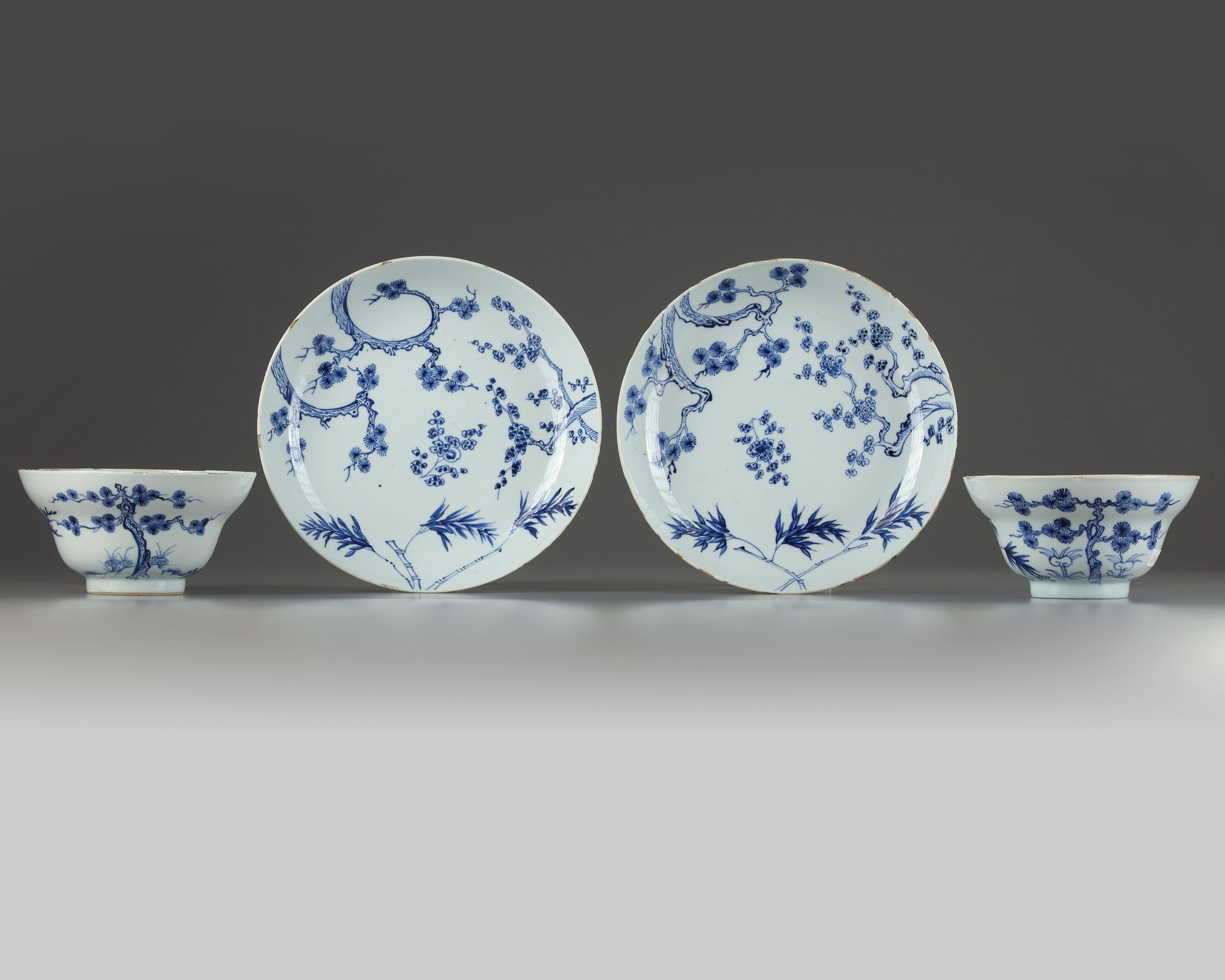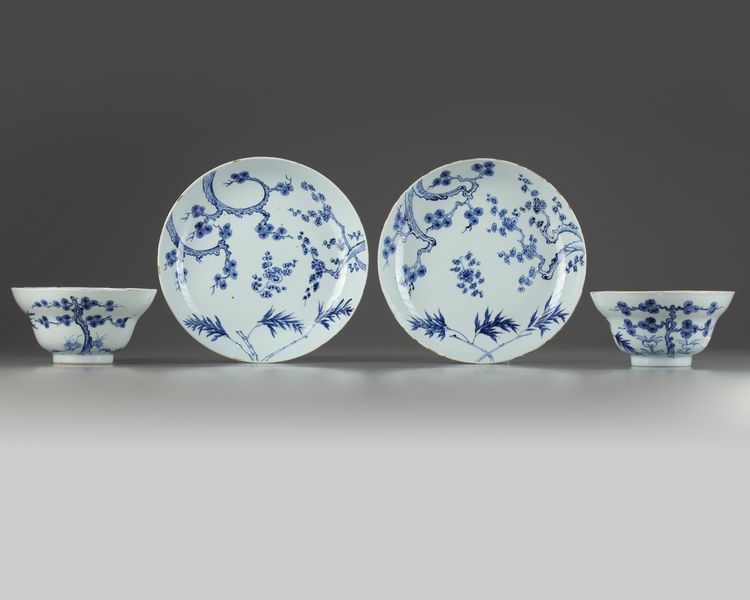 Each bowl and dish are simply decorated with the Three Friends of Winter, pine, prunus, and bamboo.