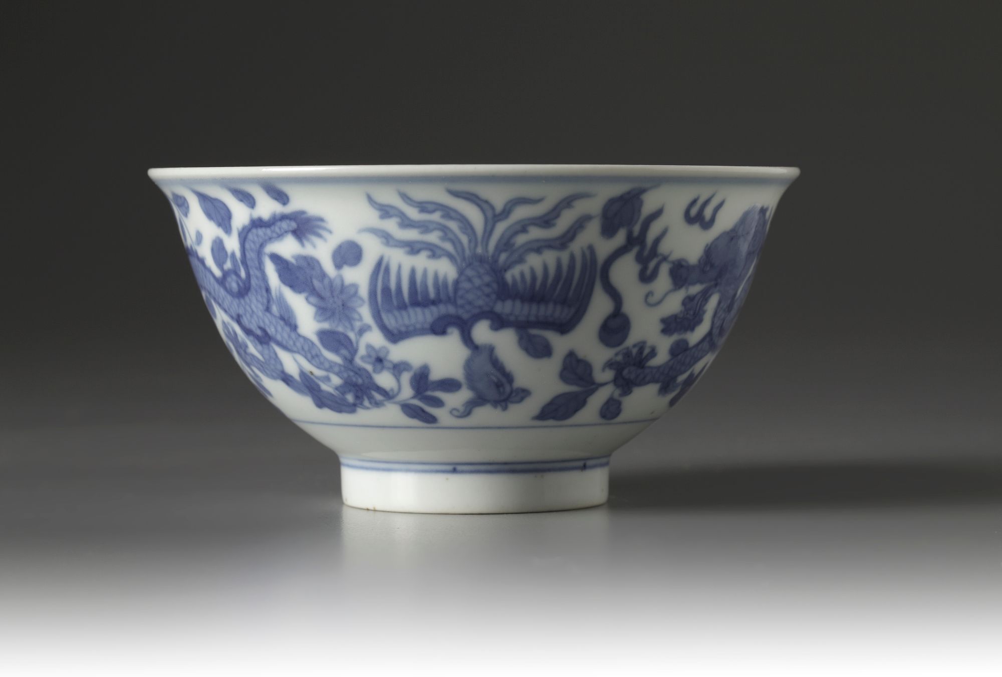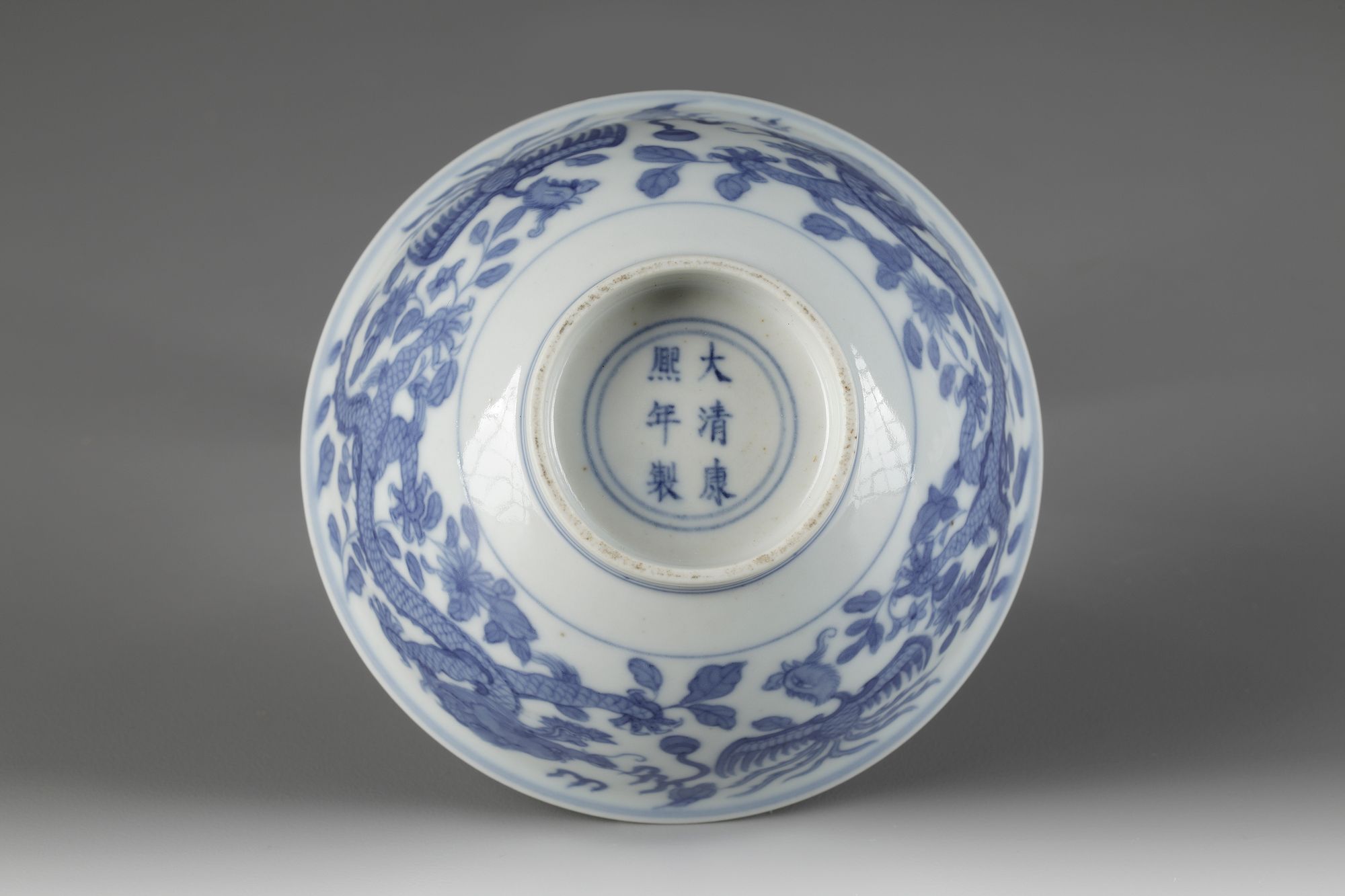 Finely decorated with two dragons chasing the flaming pearl separated by two phoenixes. Marked to the base with six character Kangxi mark.