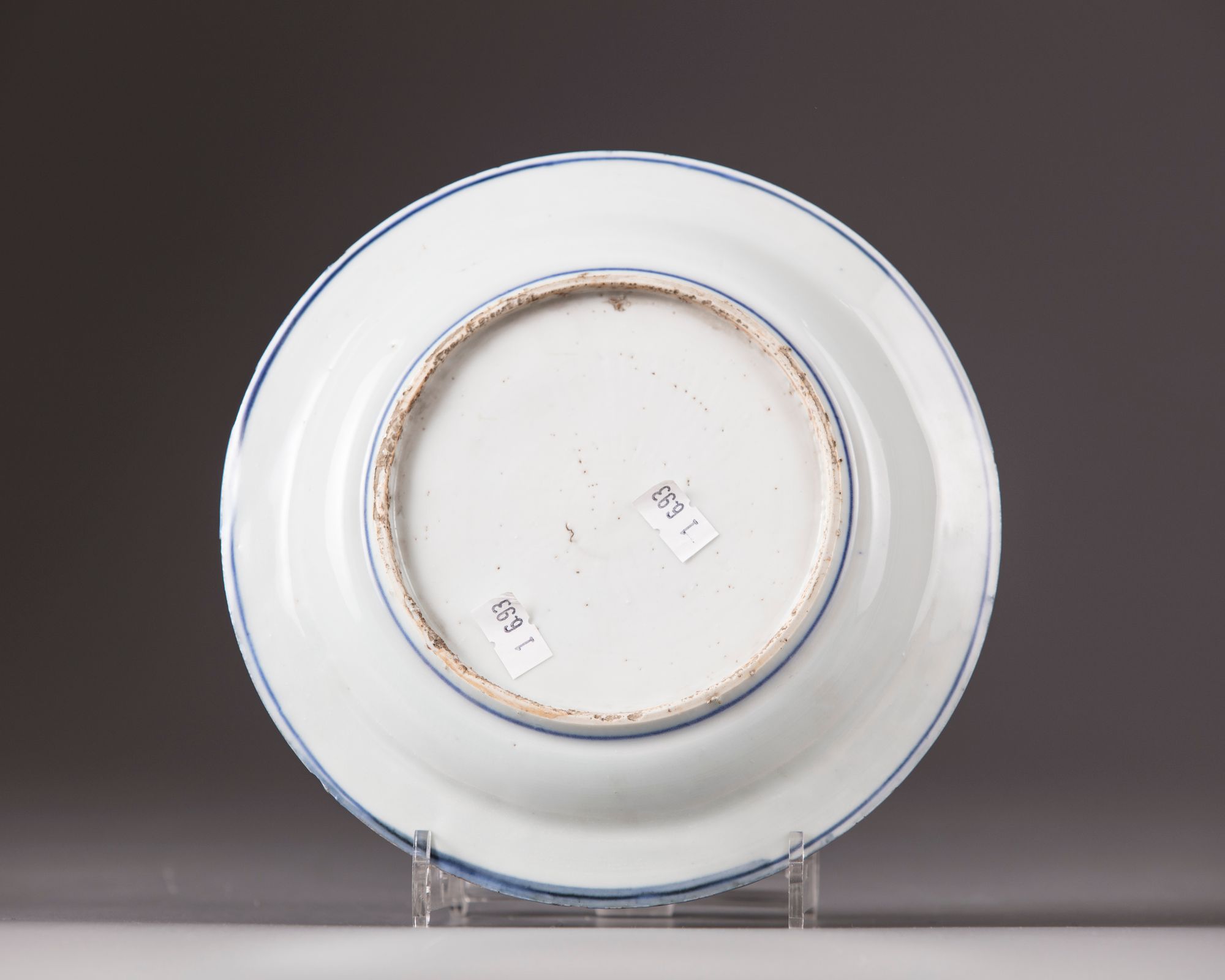 The well is decorated with a scene of scholars playing chess and a further scholar on a bridge in a mountainous river landscape. The rim is decorated with a flower and conch shell foliage band. The exterior is left undecorated.