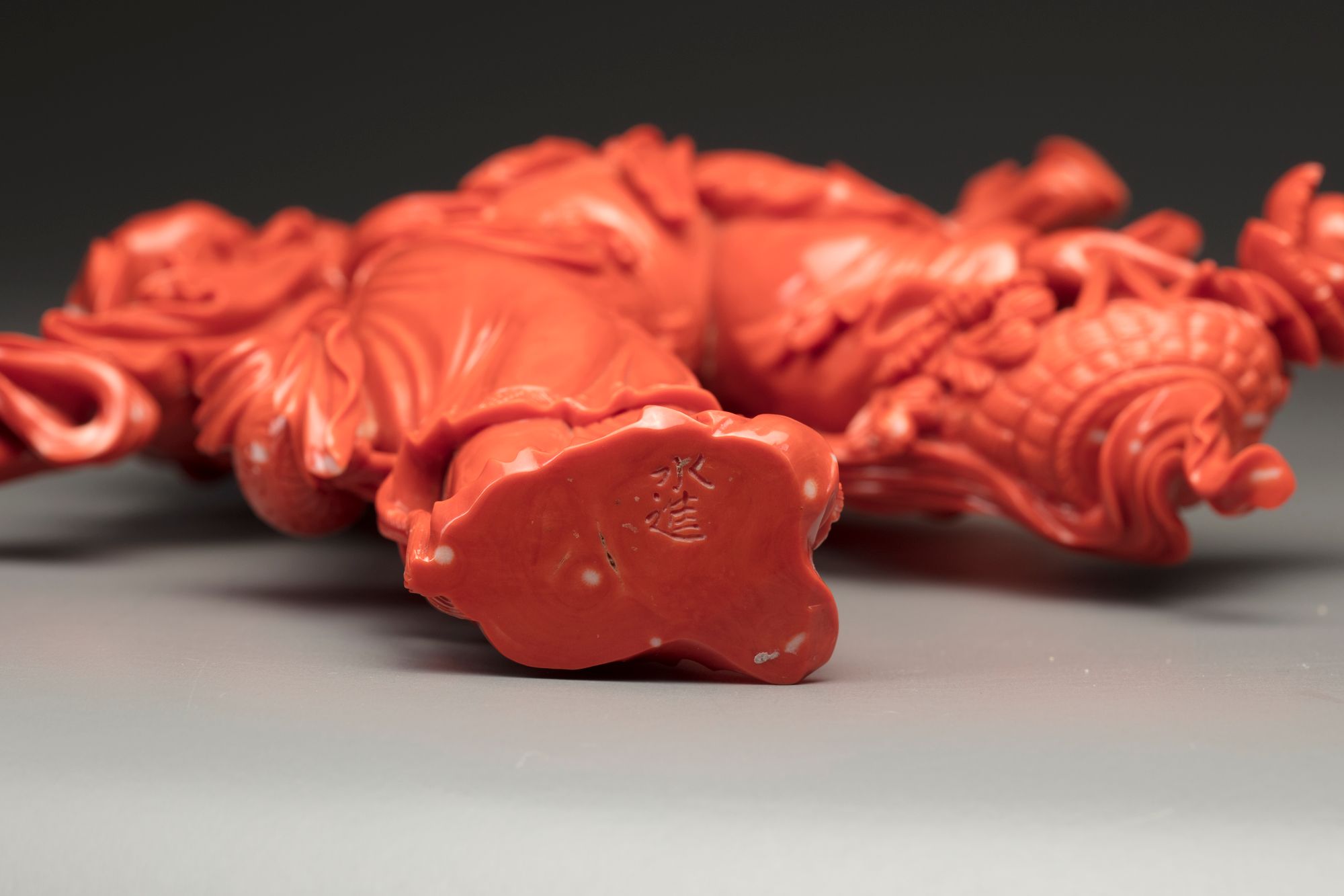 Condition: a small section of the tip of the scarf has been restuck, a few thin cracks.