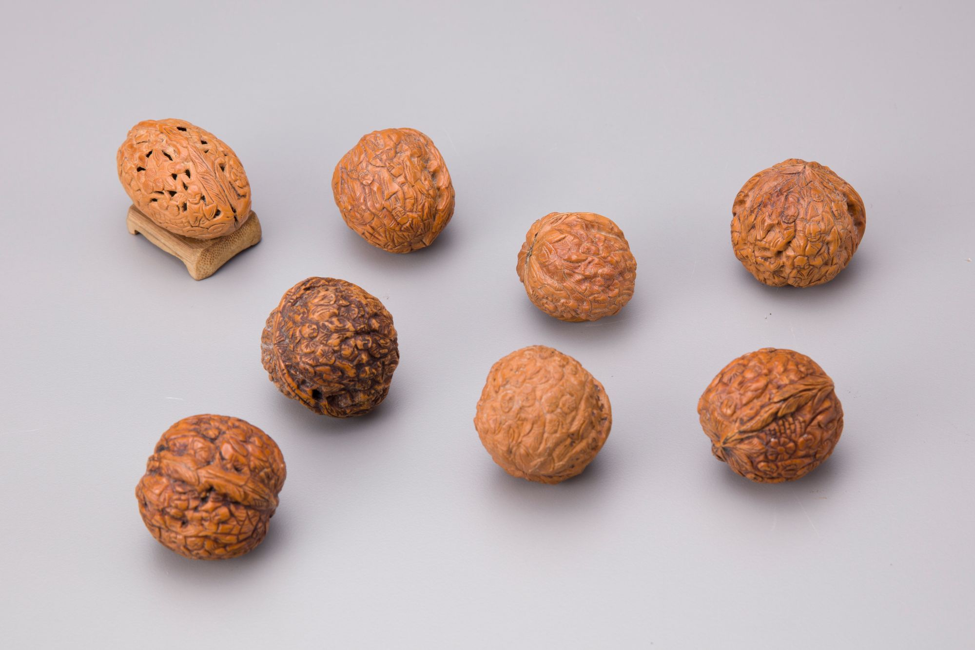 Carved on the irregualrly shaped surface and ribs with monks, the rims carved in the form of bamboo.