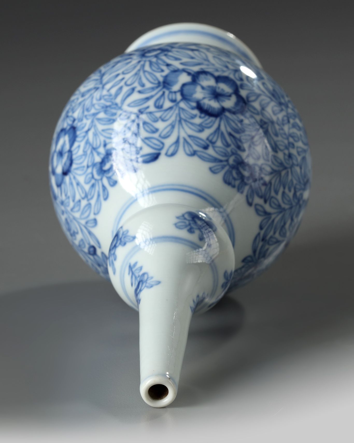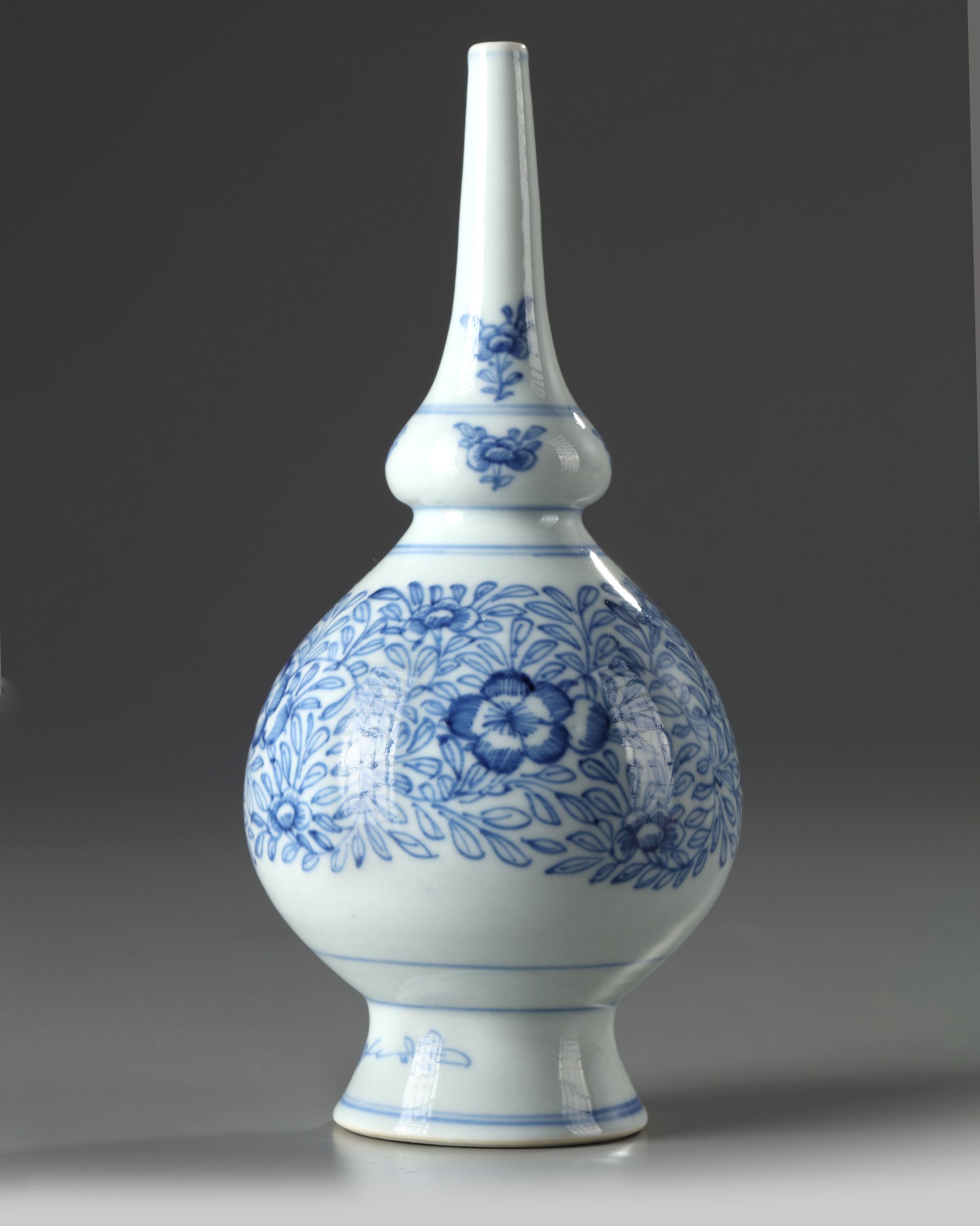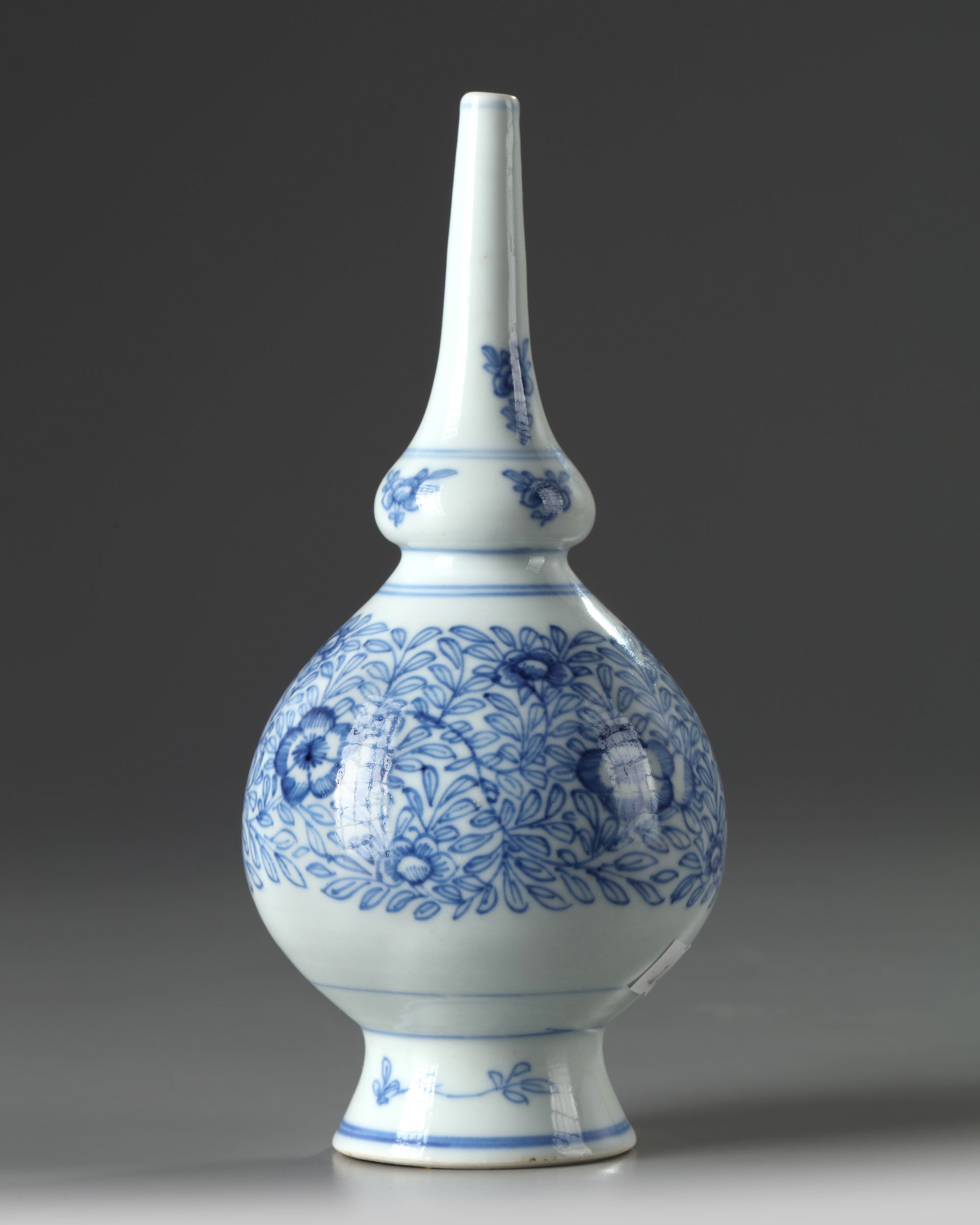 The sprinkler is decorated in pencil style with scrolling flowers below further flower sprays.