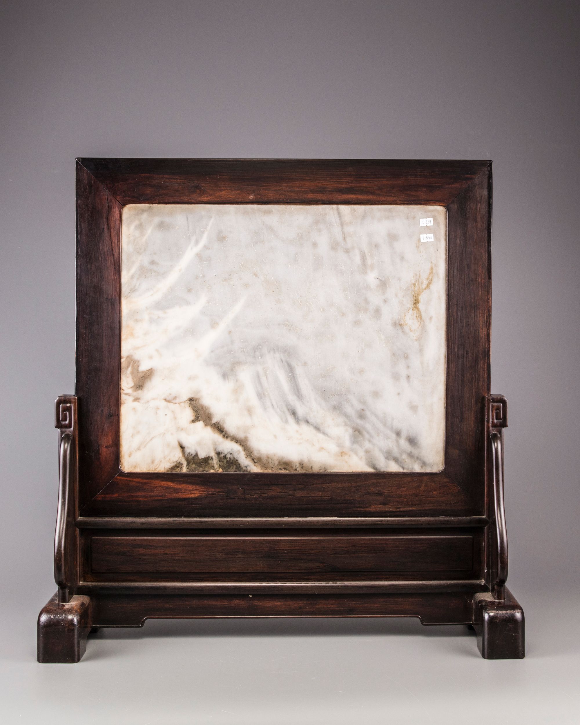 Condition: the stone with surface scratches and a thin crack; the wood stand with natural wear and age cracks.