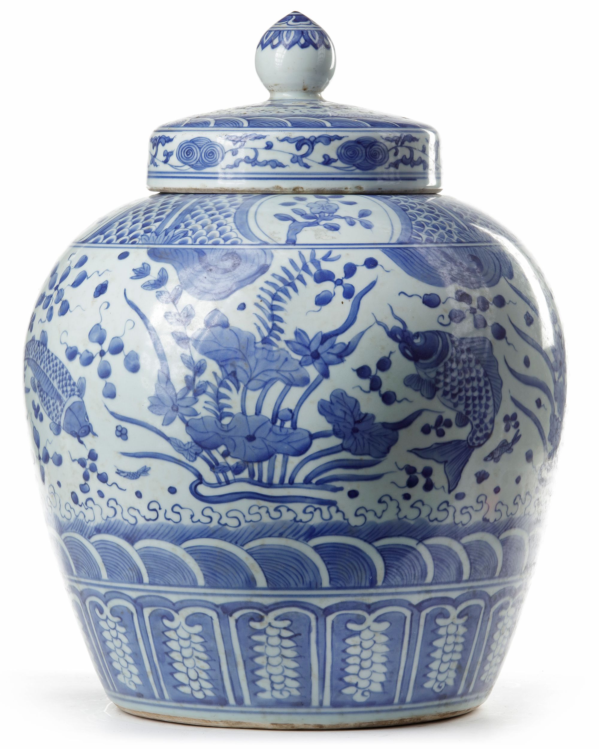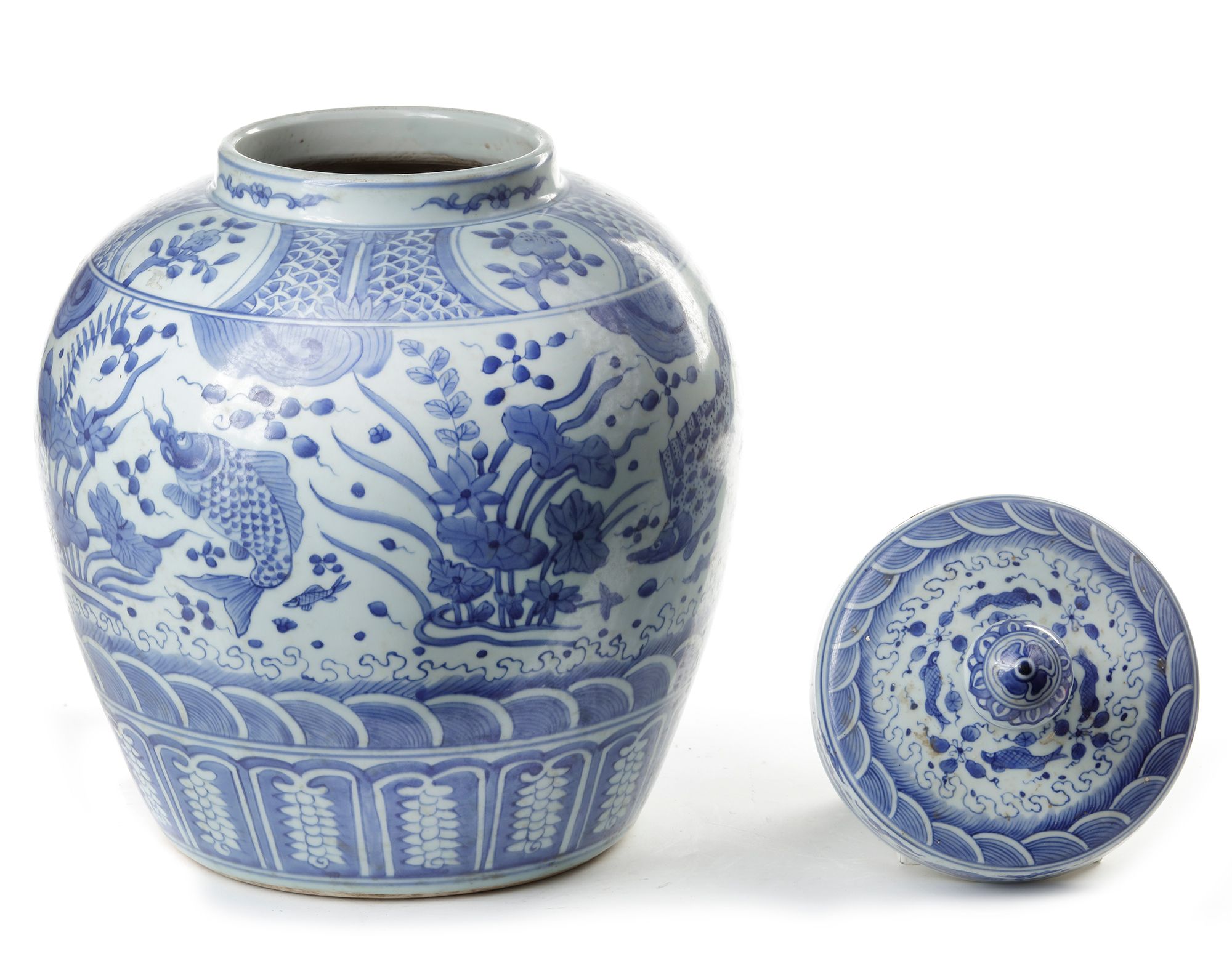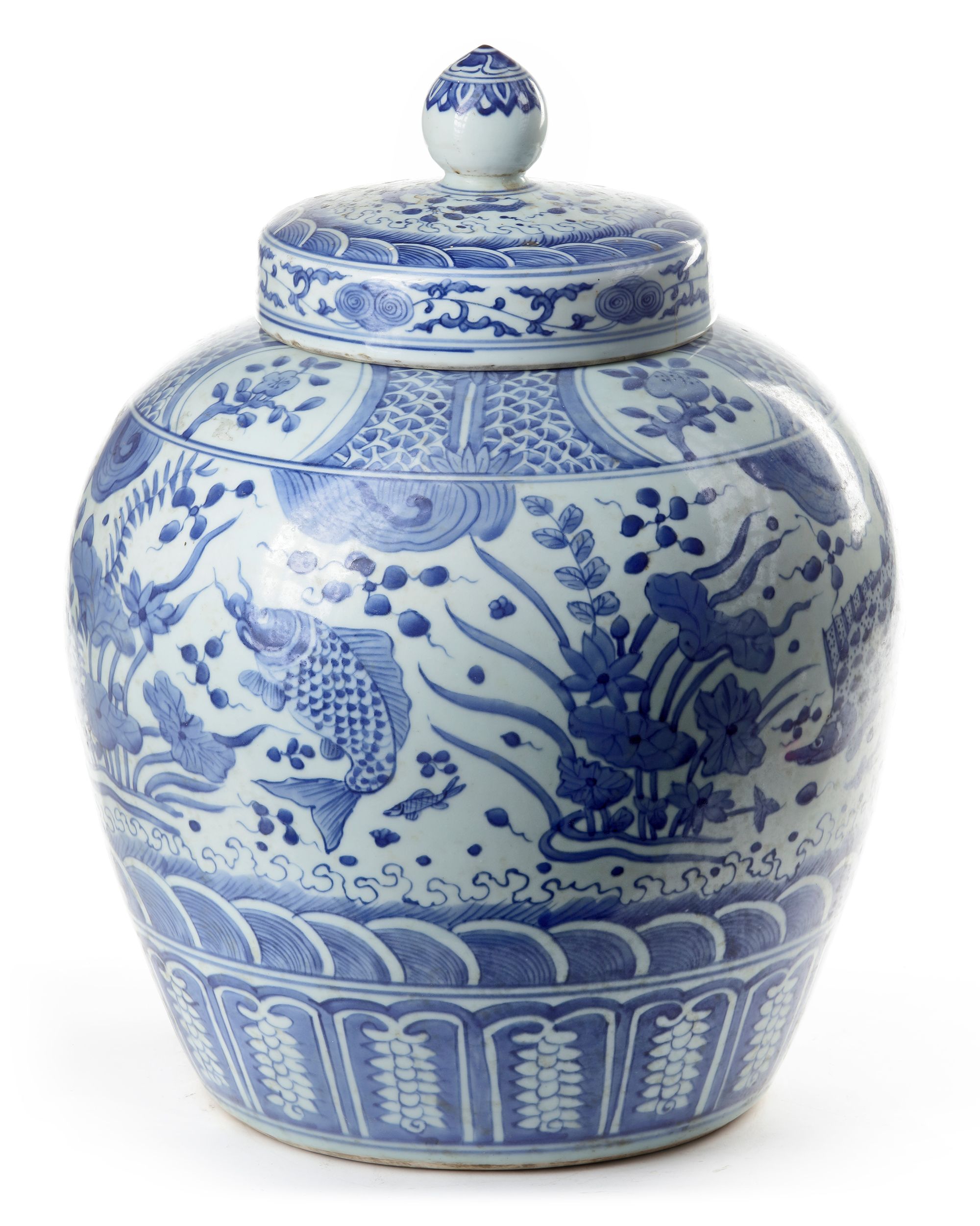 A CHINESE BLUE AND WHITE JAR AND COVER, QING DYNASTY (1644-1911)