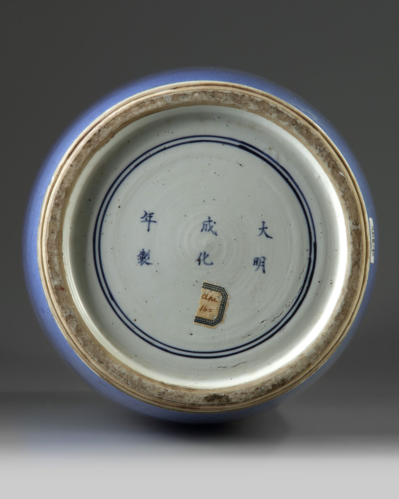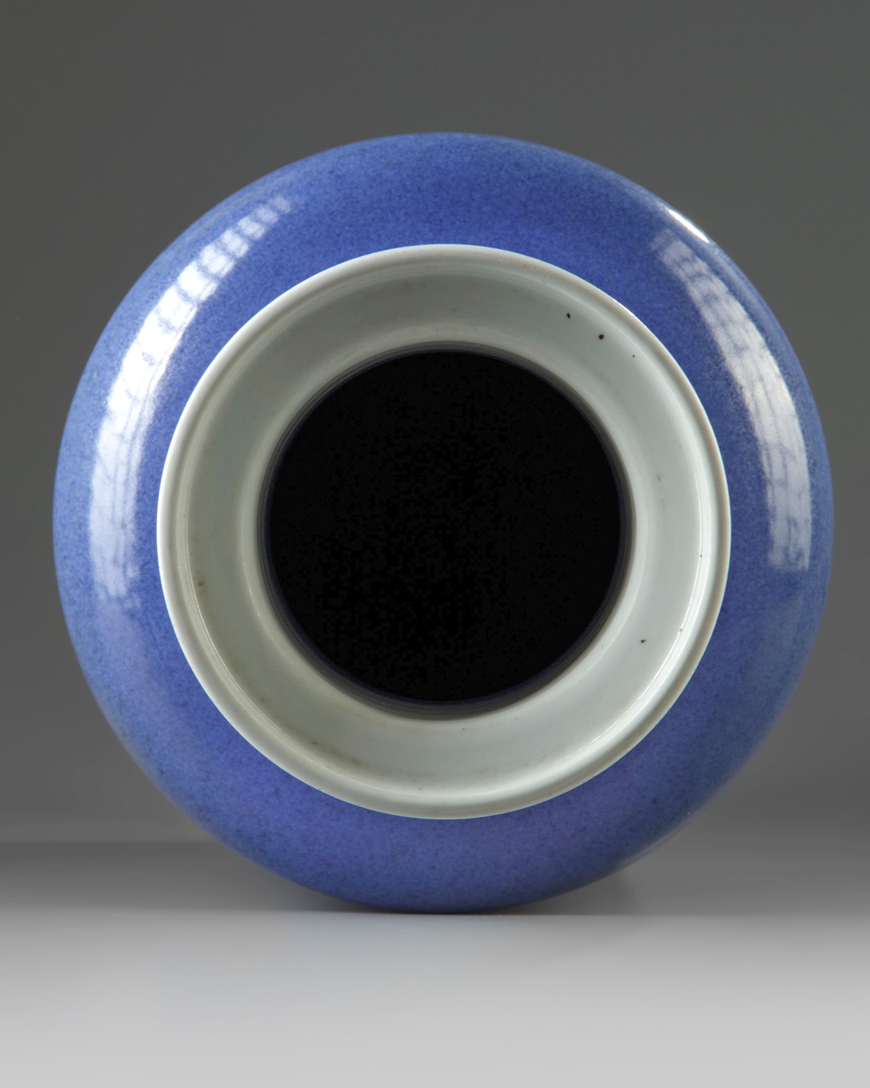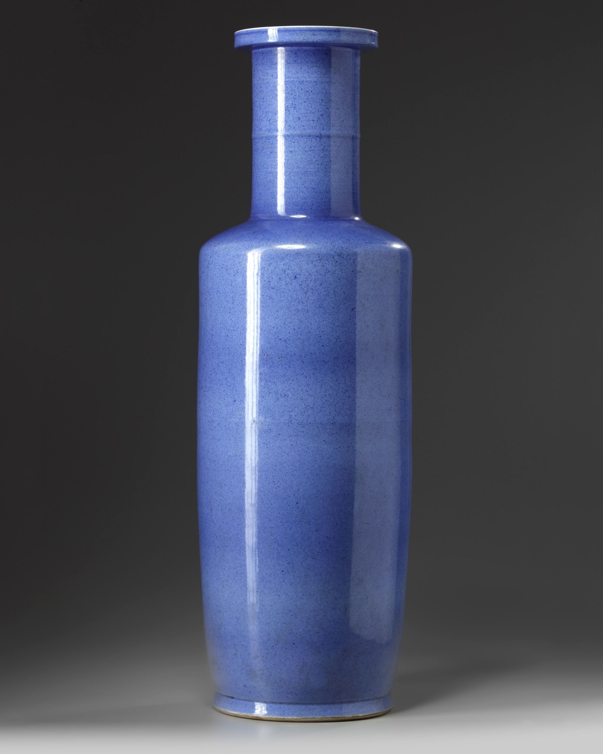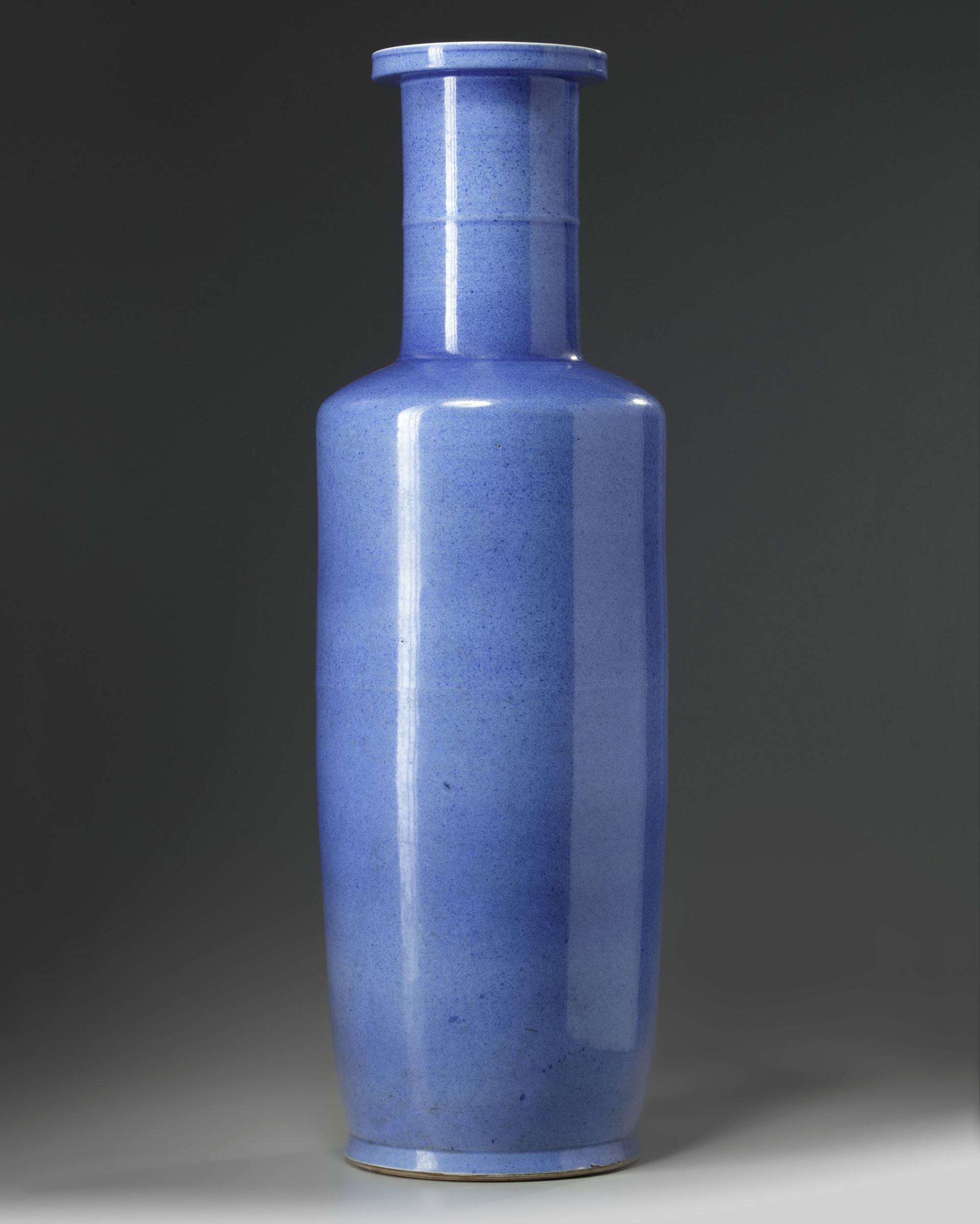 The large vase is covered overall in a mottled powder blue glaze. The interior and base glazed white, and the base with an apocryphal Chenghua mark.