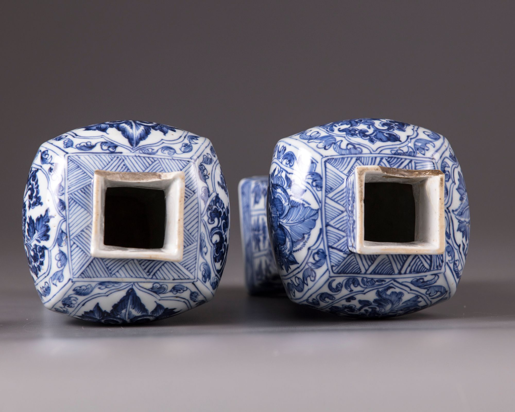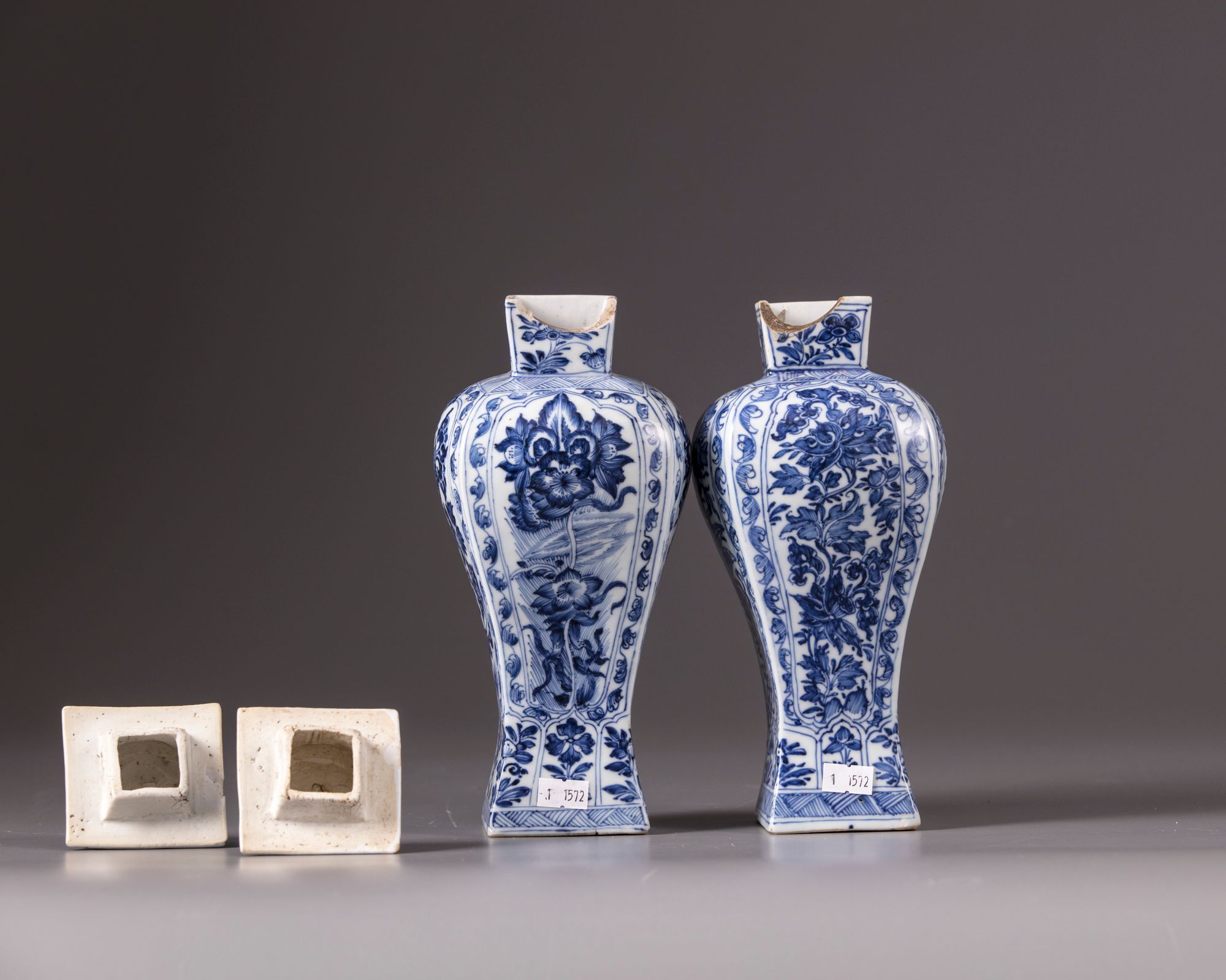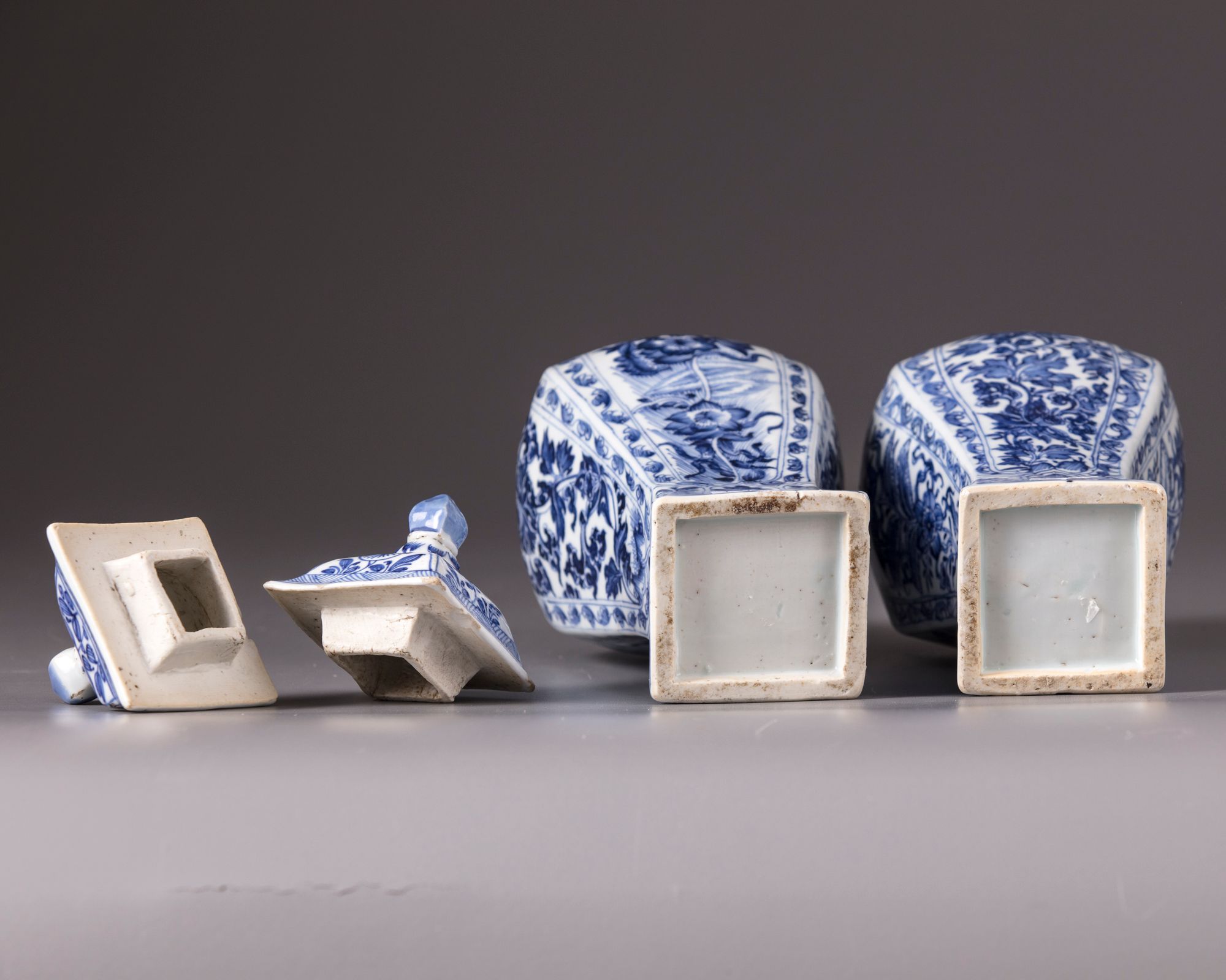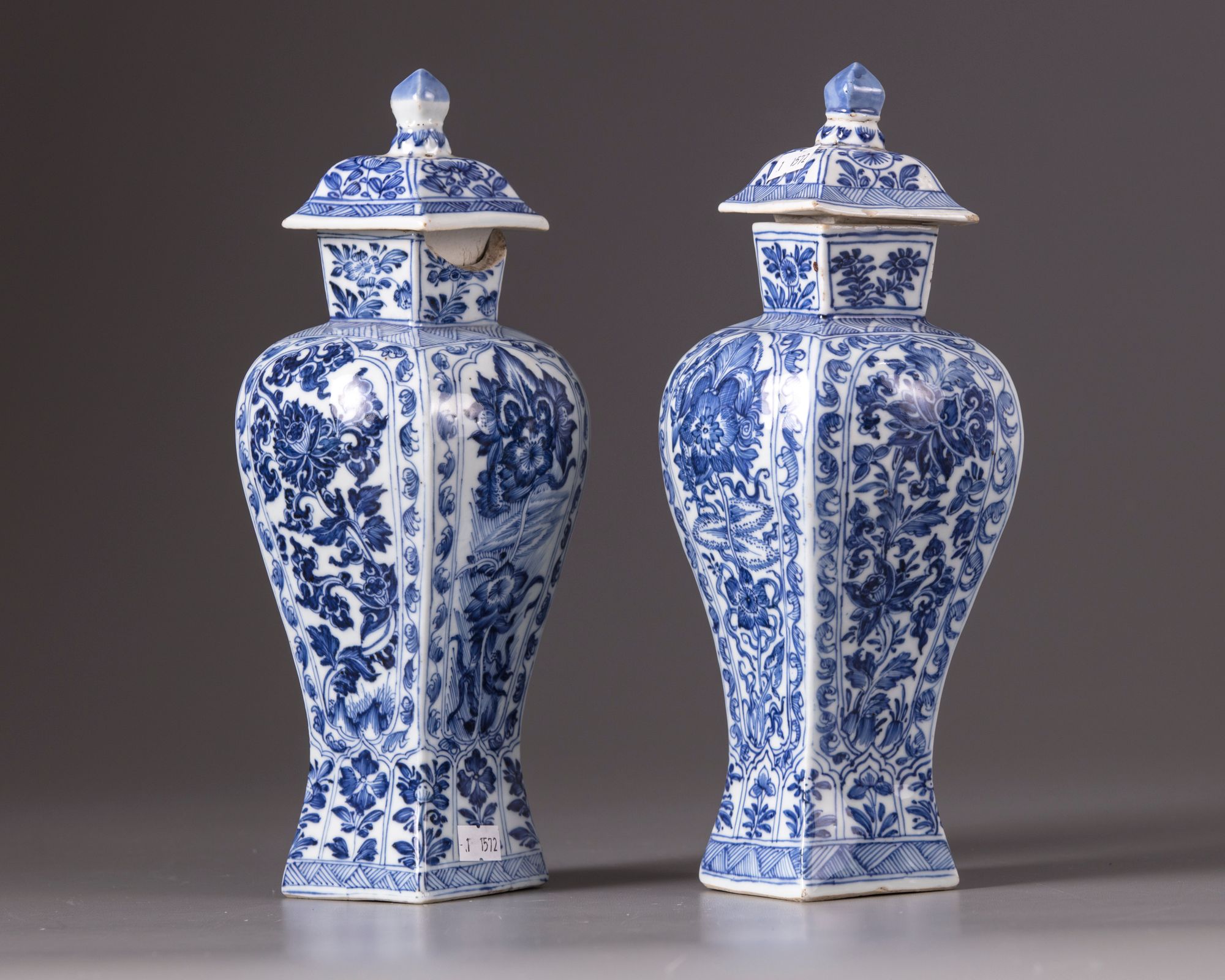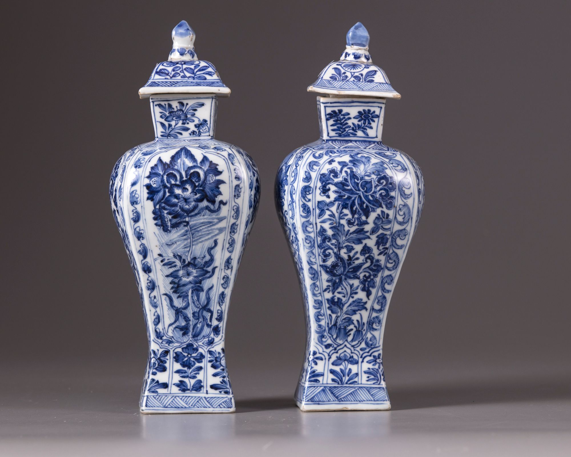 Decorated with panels enclosing flowers and foliage, the domed covers with flowers.