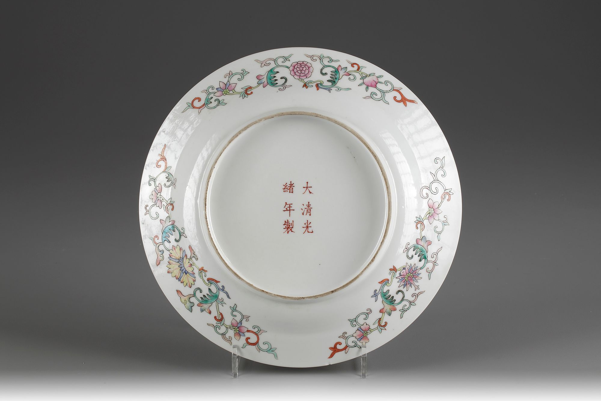 Decorated to the interior with four gilt medallions enclosing the characters wanshou wujiang, surrounding a central stylised shou medallion encircled by waves, all reserved on a yellow ground. The exteriors are glazed white and enamelled with three floral sprays, with six character mark Guangxu (1875-1908) in iron red.