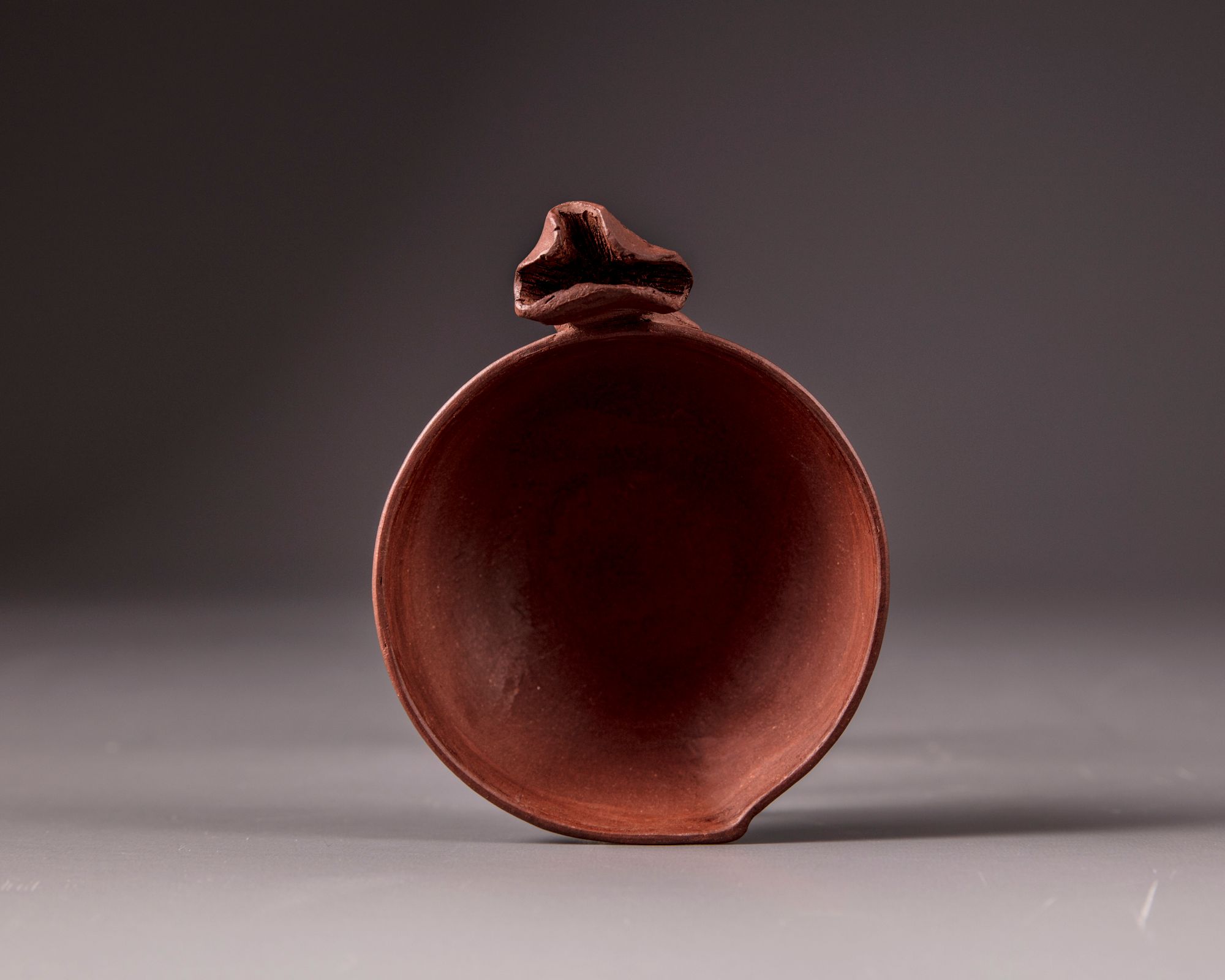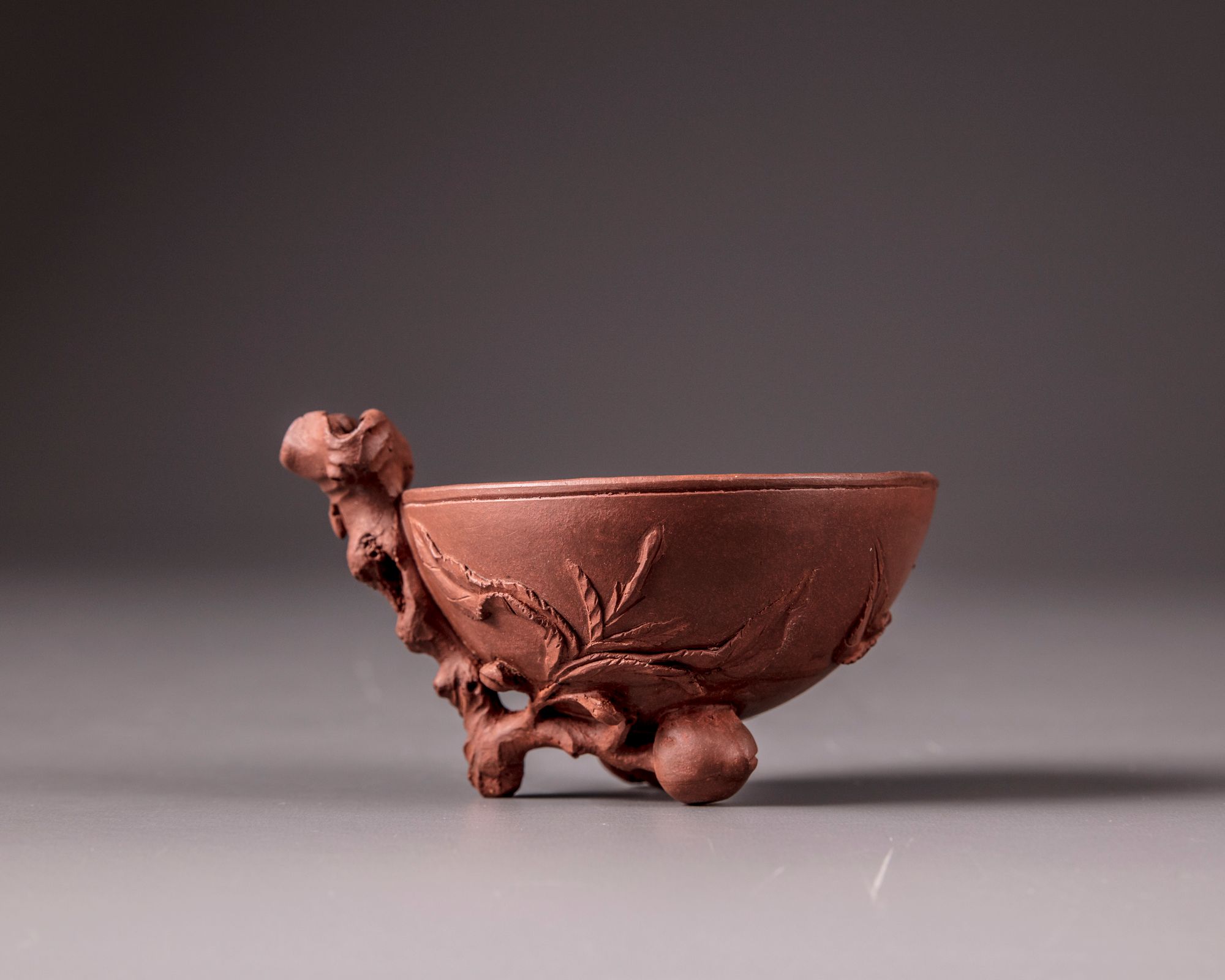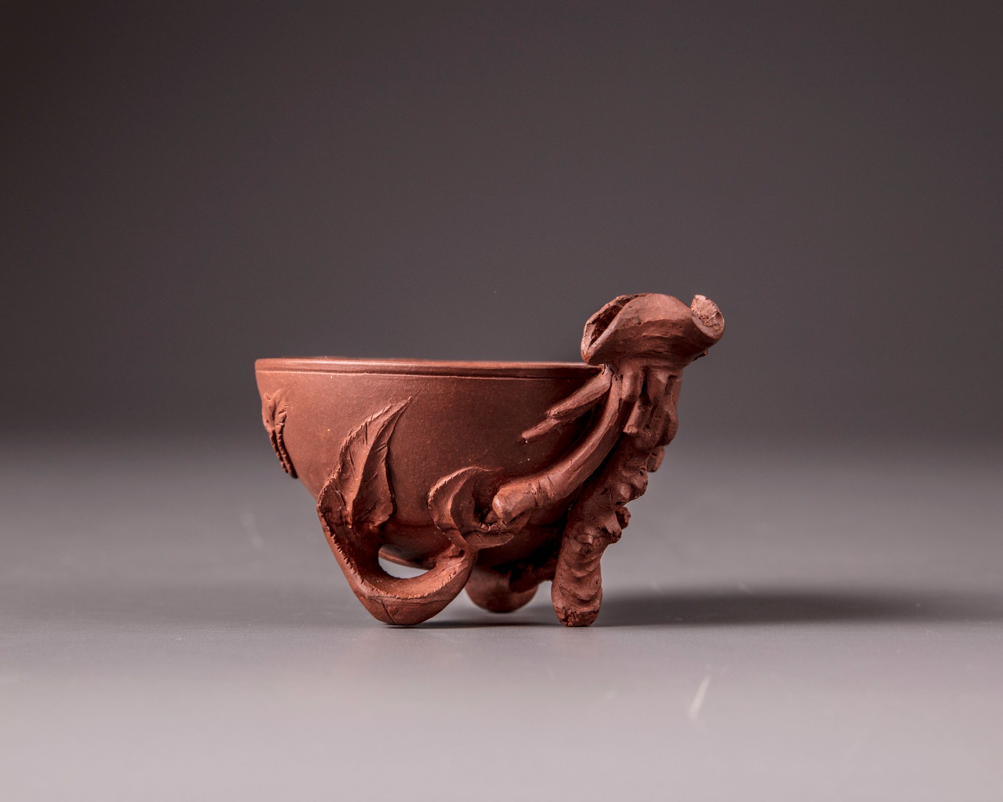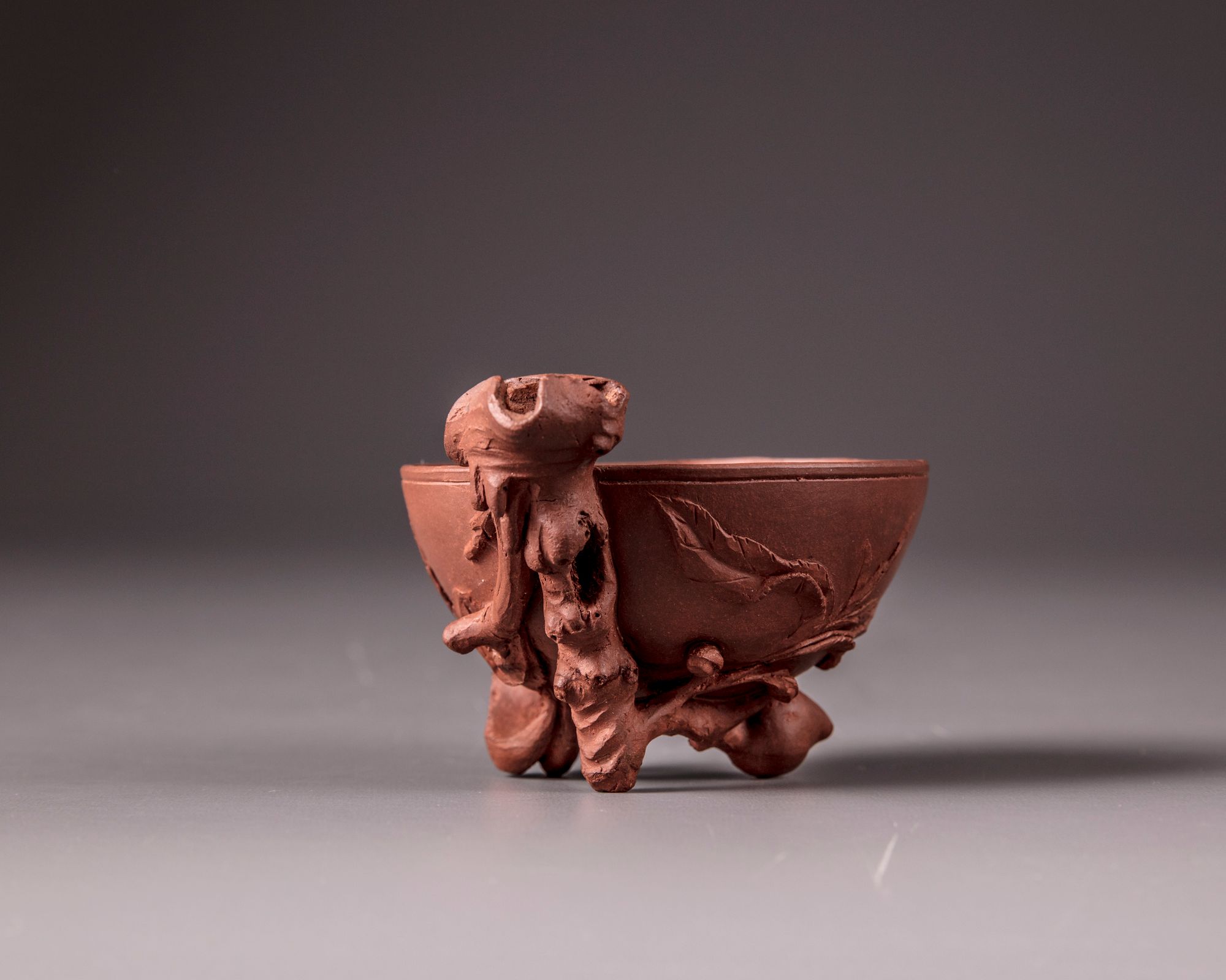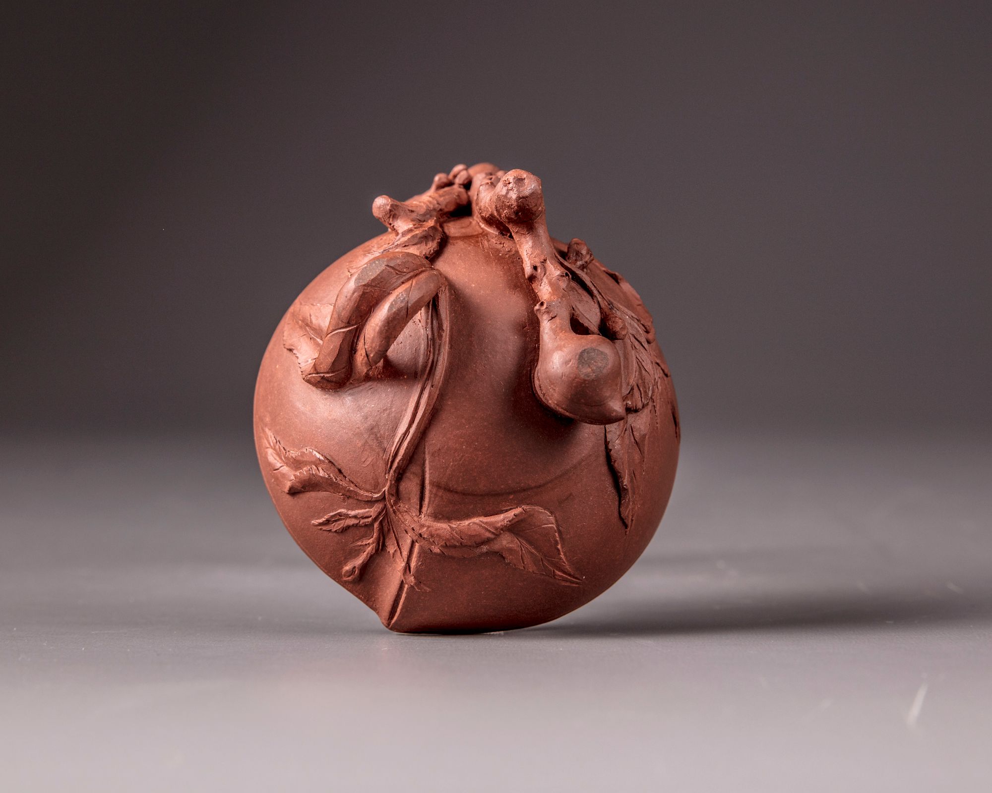 The coupe is realistically modelled as a large peach which forms the water vessel attached to a smaller peach by a leafy gnarled branch.