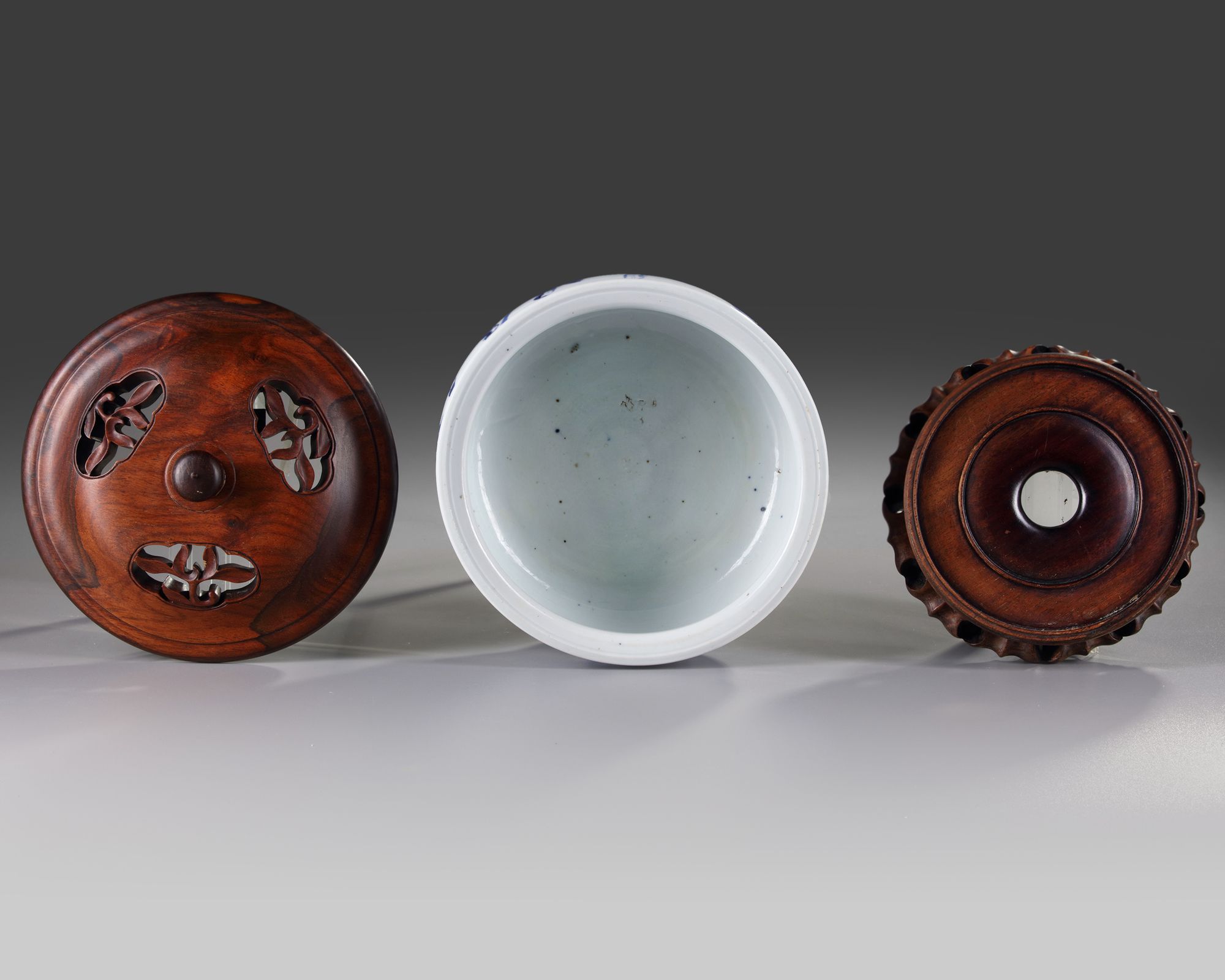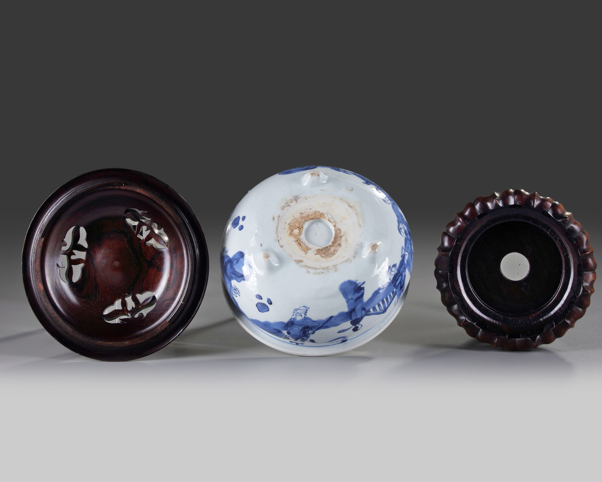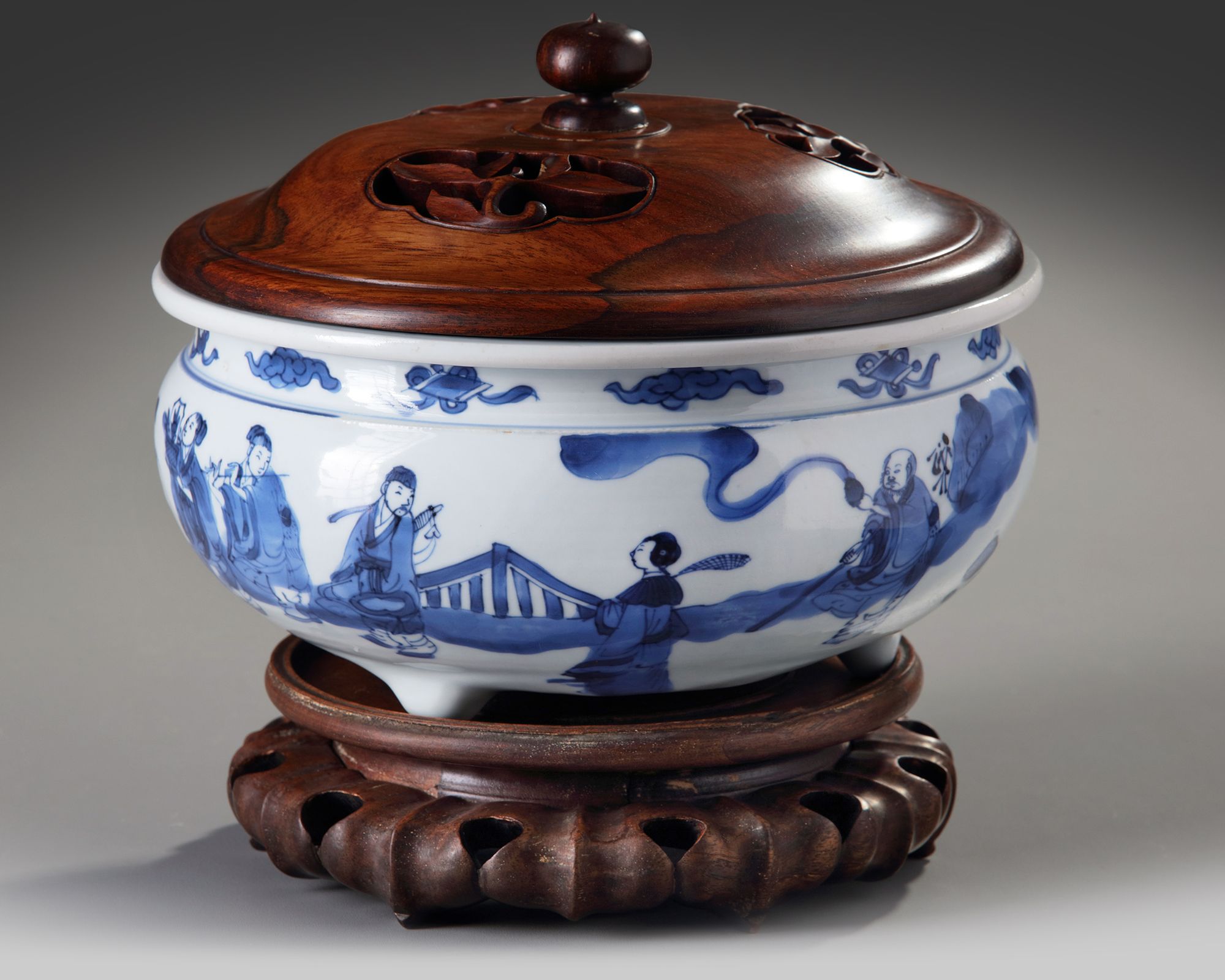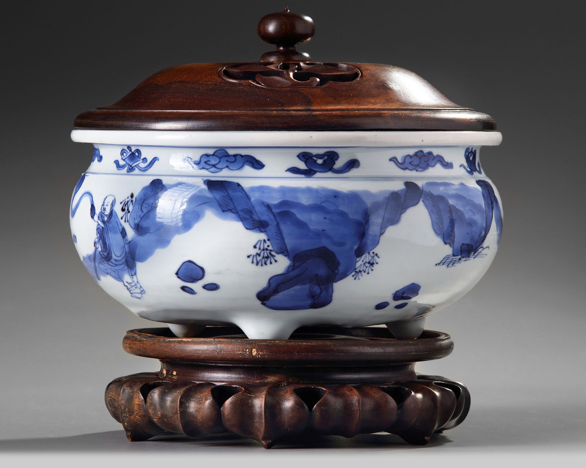 A Chinese blue and white 'Eight Immortals' tripod censer