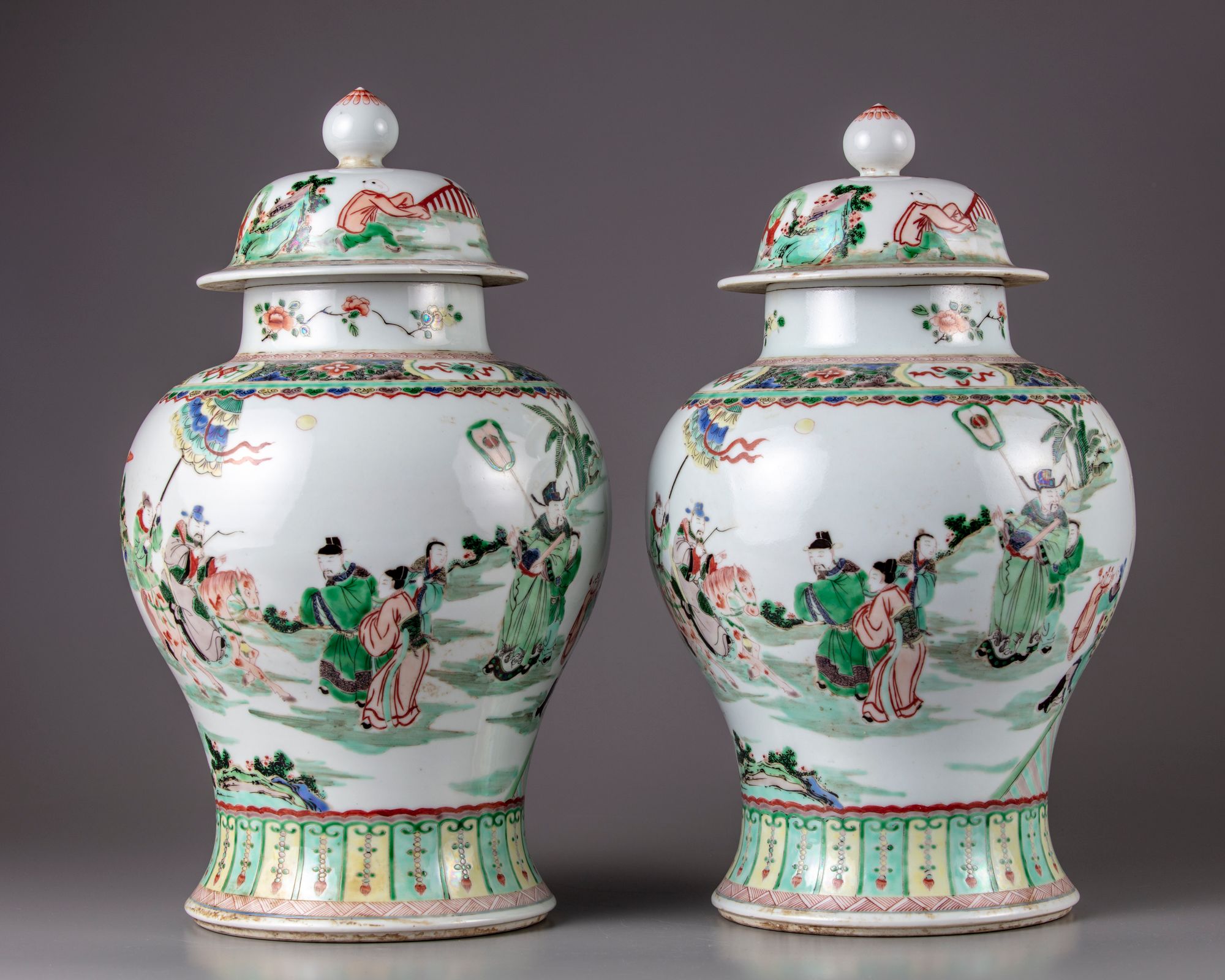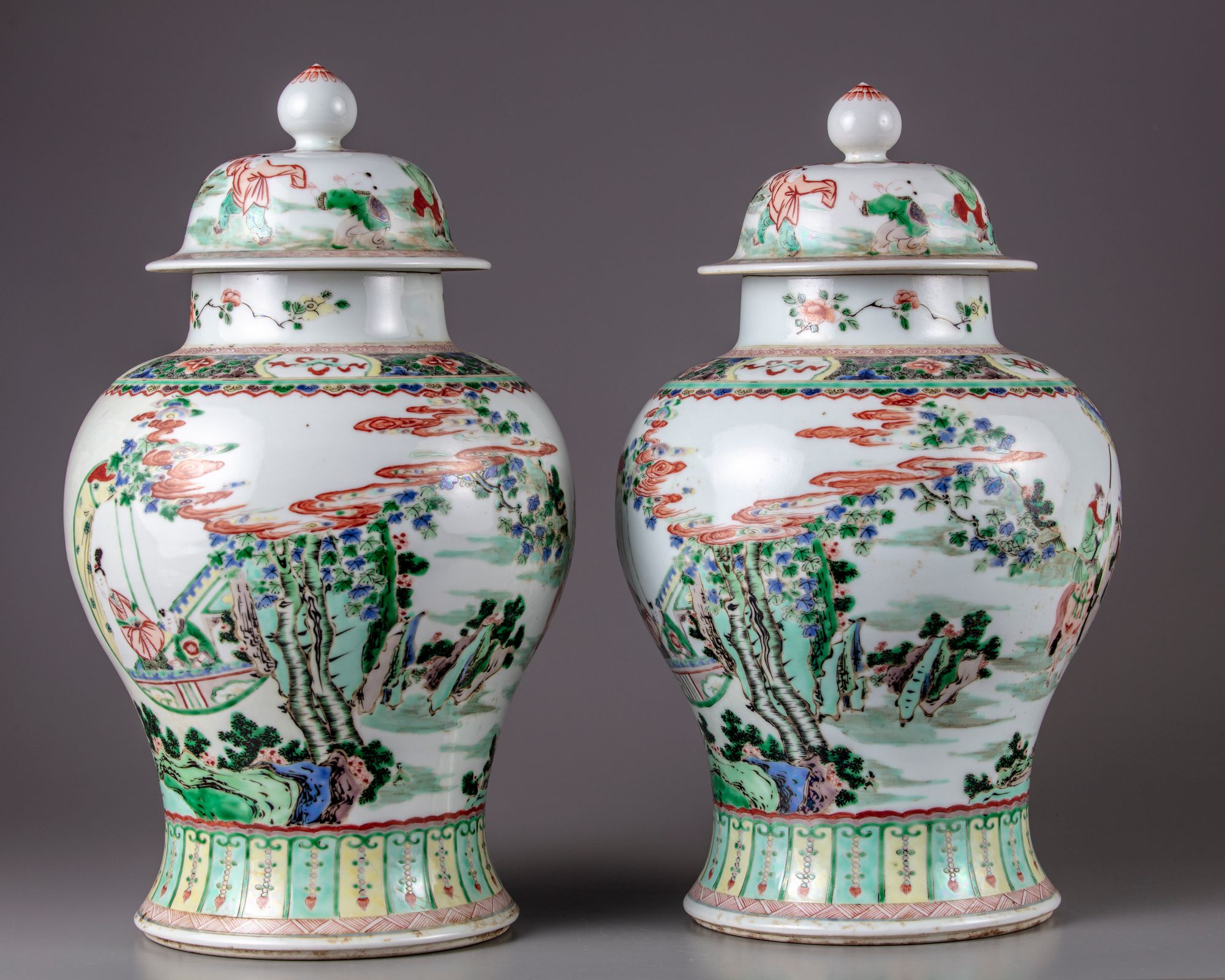One of the vases has a height of of approx. 43.00 CM the other has a height of approx. 42.00 CM.
