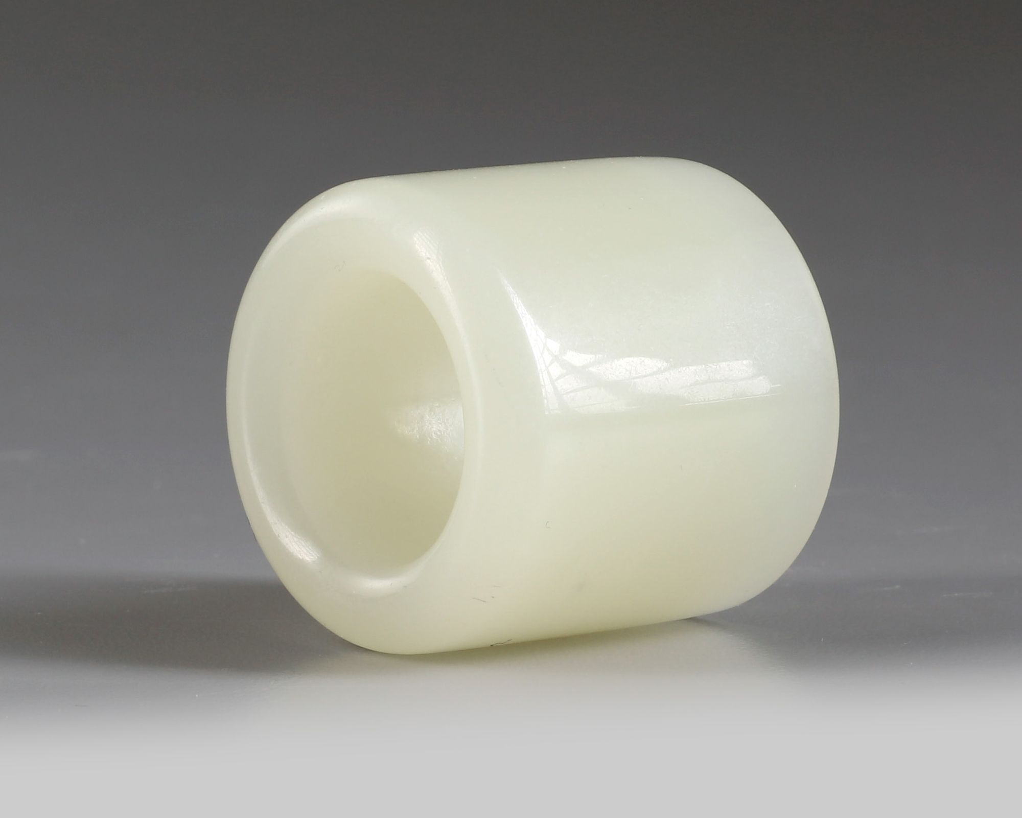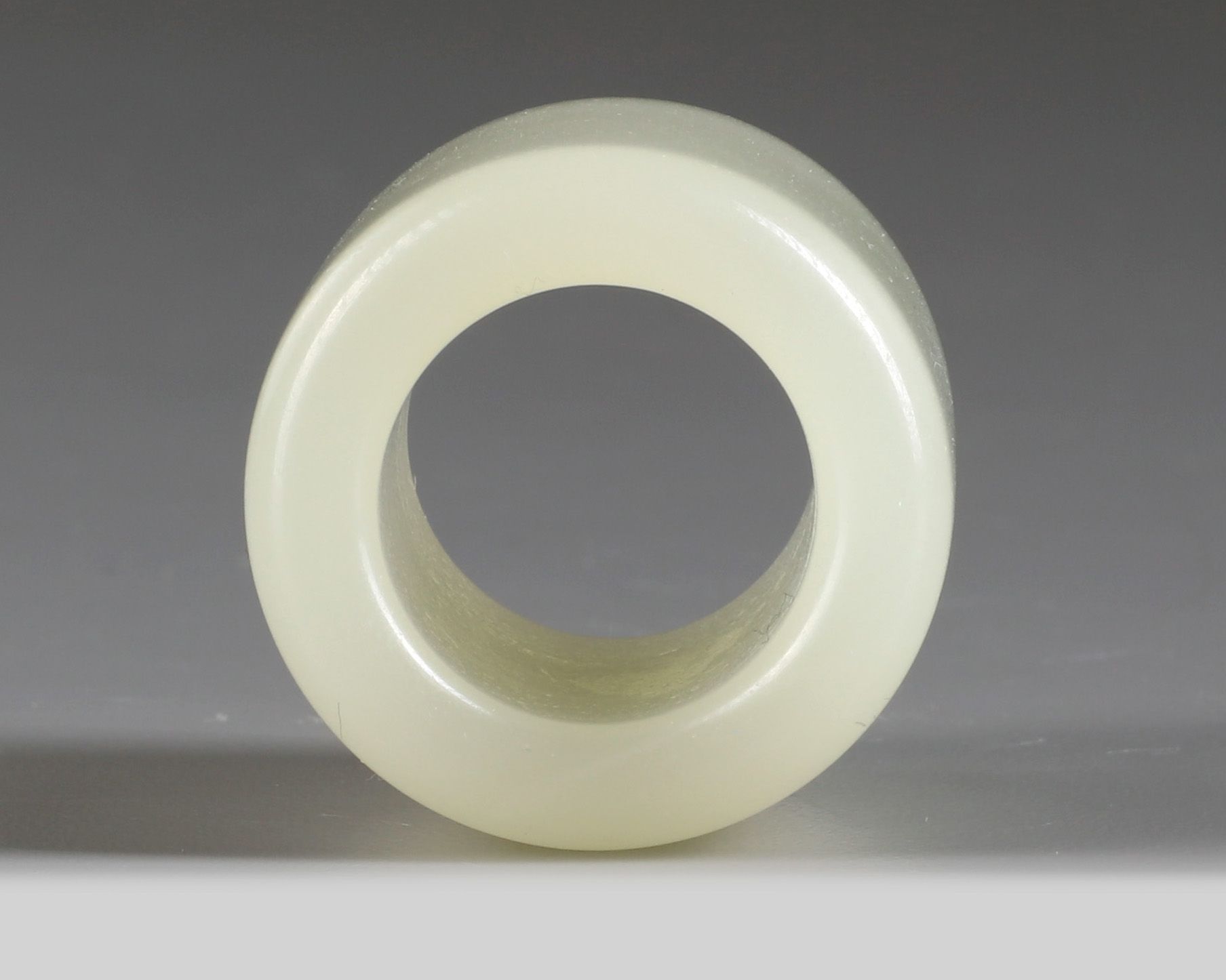 The ring is of cylindrical form and carved from a stone of even pale tone.