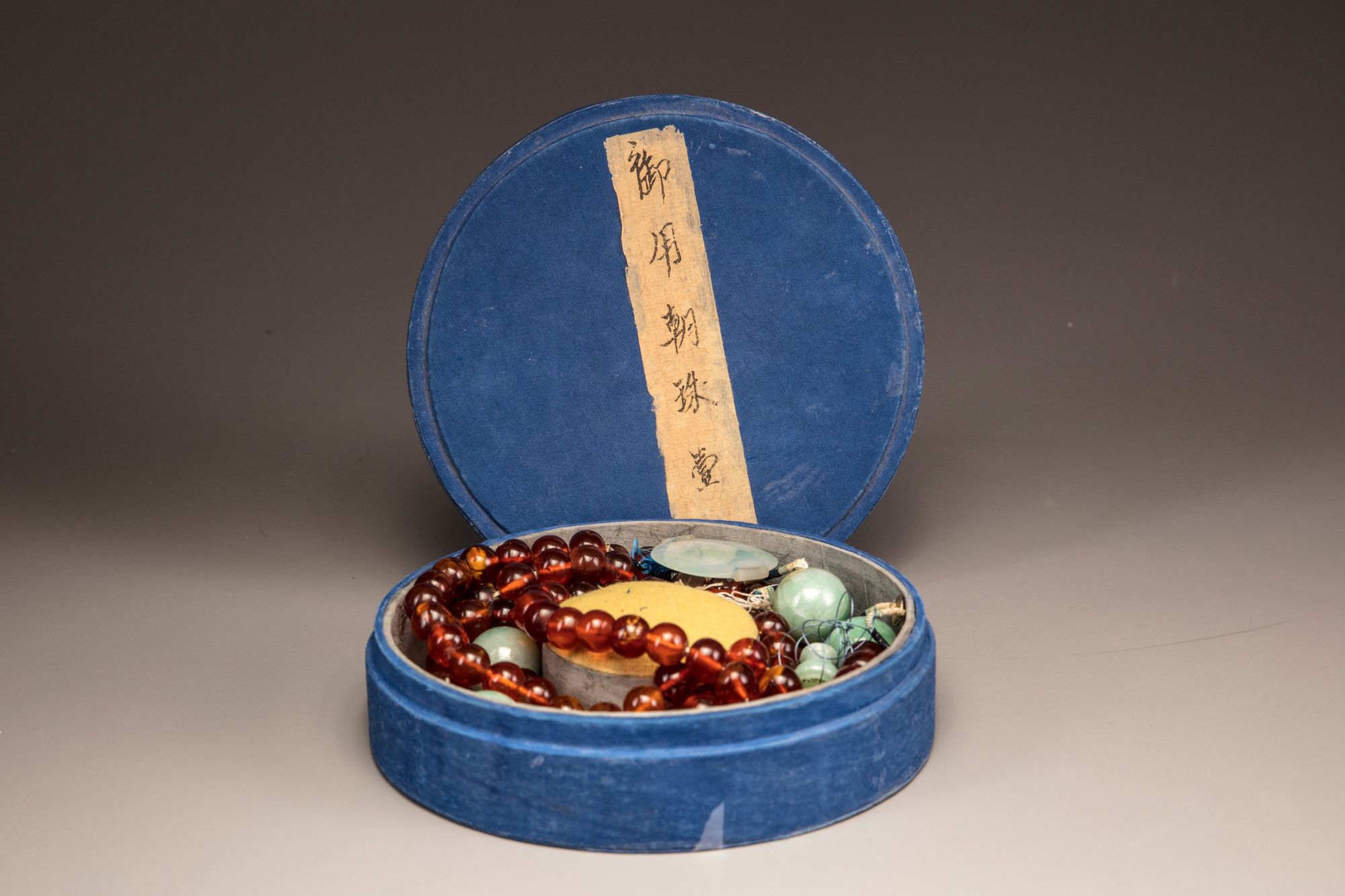 Catalogue notes: Similar amber and jadeite chaozhu, bearing three further strings of beads, were sold at: Christie's Paris, 21-22 June 2016, lot 225; Christie's New York, 17 September 2015, lot 644; and Christie's New York, 21 March 2013, The Lizzadro Collection, lot 892.