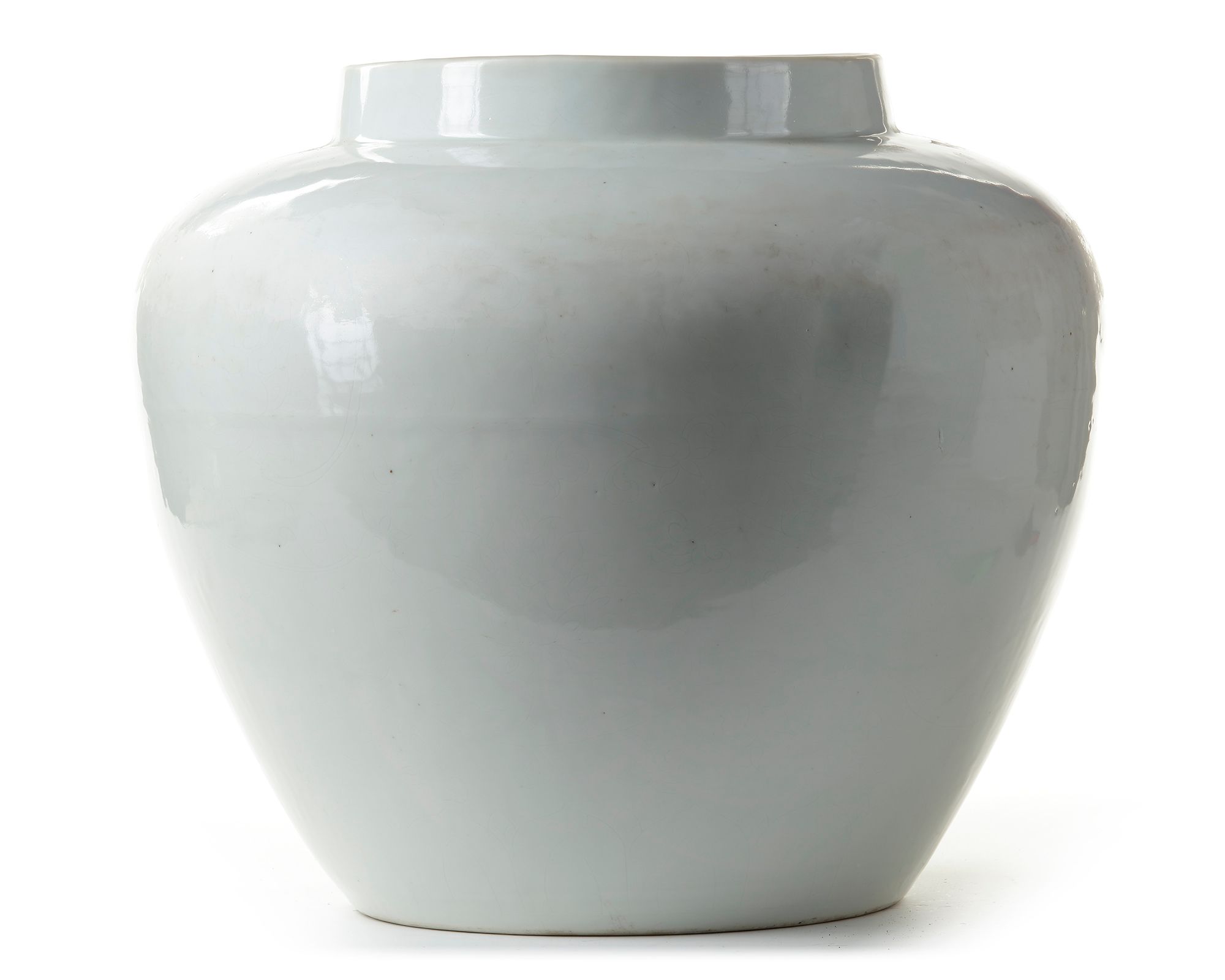 A LARGE CHINESE WHITE-GLAZED ANHUA-DECORATED VASE, QING DYNASTY (1664-1911)
