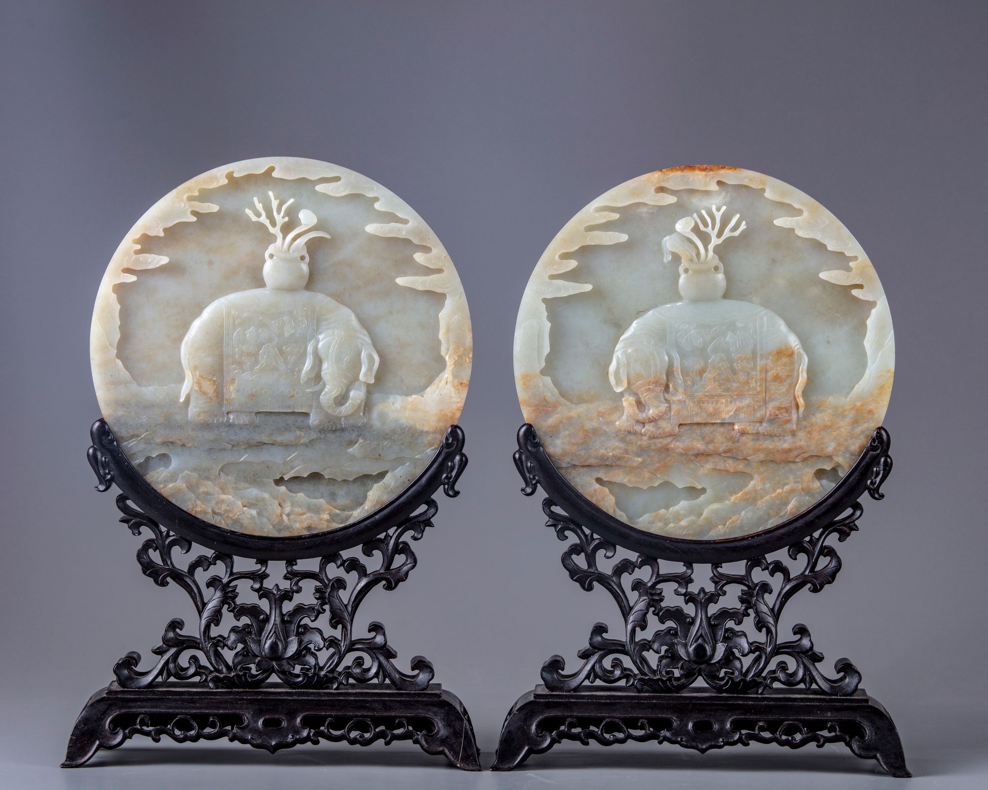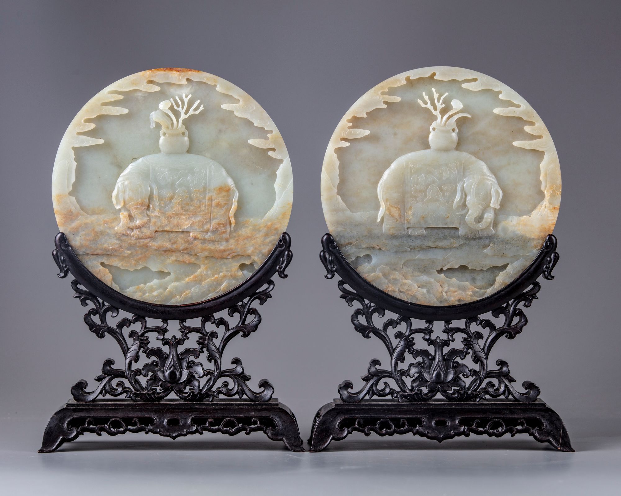 A pair of Chinese celadon jade circular table screens A pair of Chinese celadon jade circular table screens A pair of Chinese celadon jade circular table screens A pair of Chinese celadon jade circular table screens A pair of Chinese celadon jade circular table screens A pair of Chinese celadon jade circular table screens A pair of Chinese celadon jade circular table screens A pair of Chinese celadon jade circular table screens