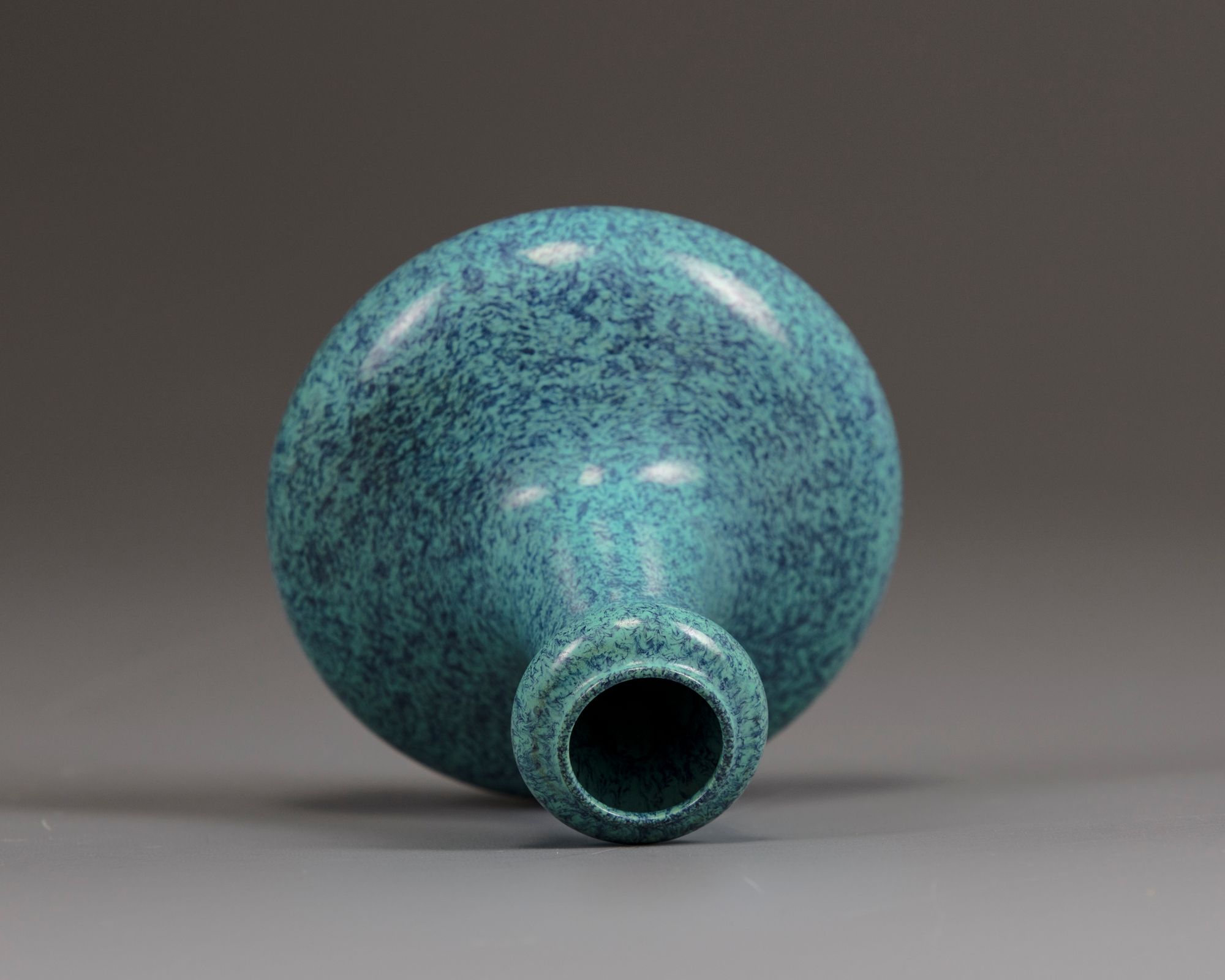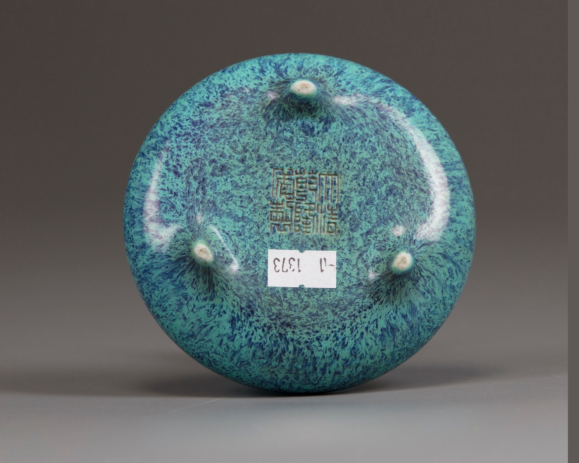 The vase is covered overall with a mottled turquoise and deep blue glaze, the base with an apocryphal Qianlong mark.