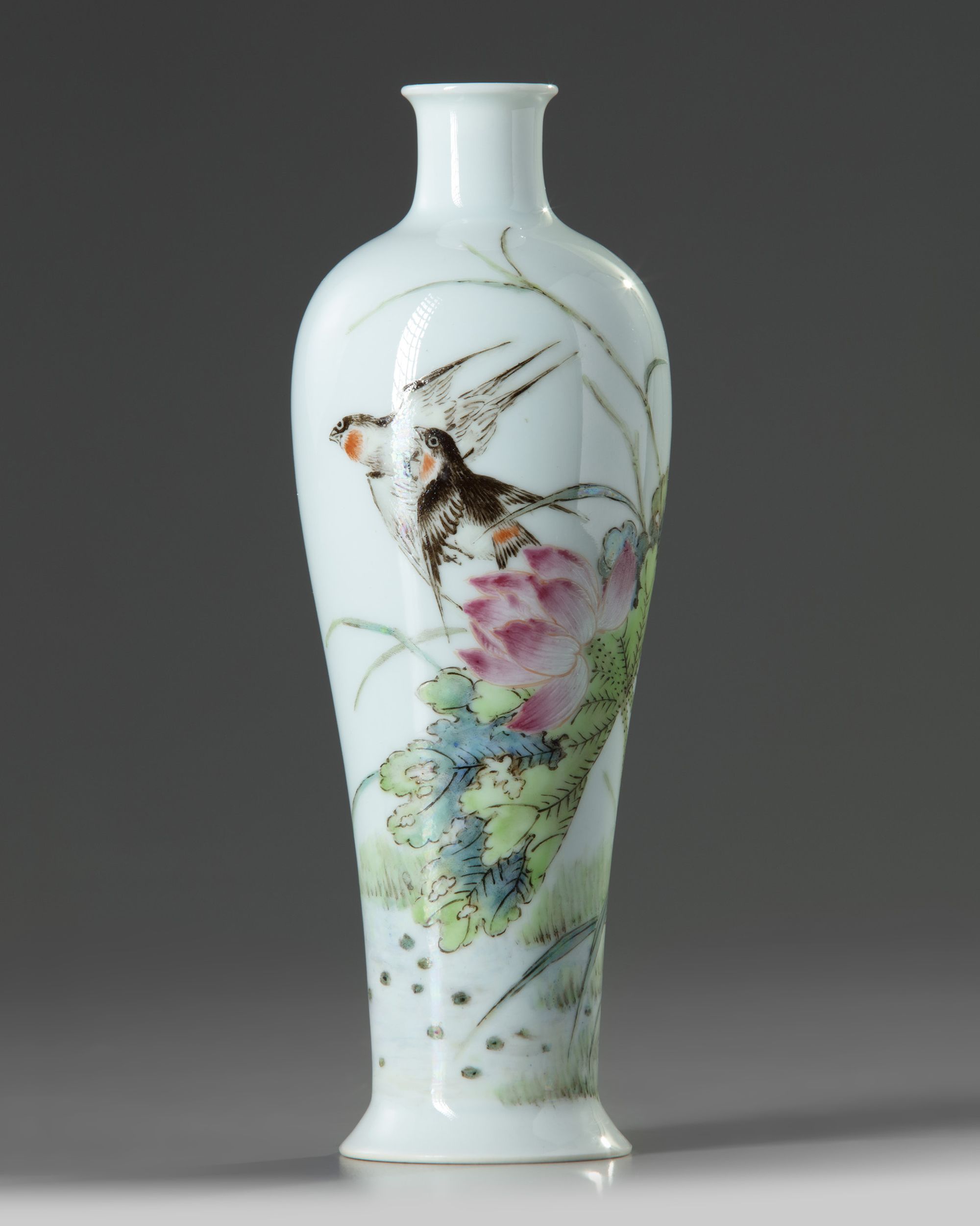 A Chinese famille rose 'birds and lotus' slender vase