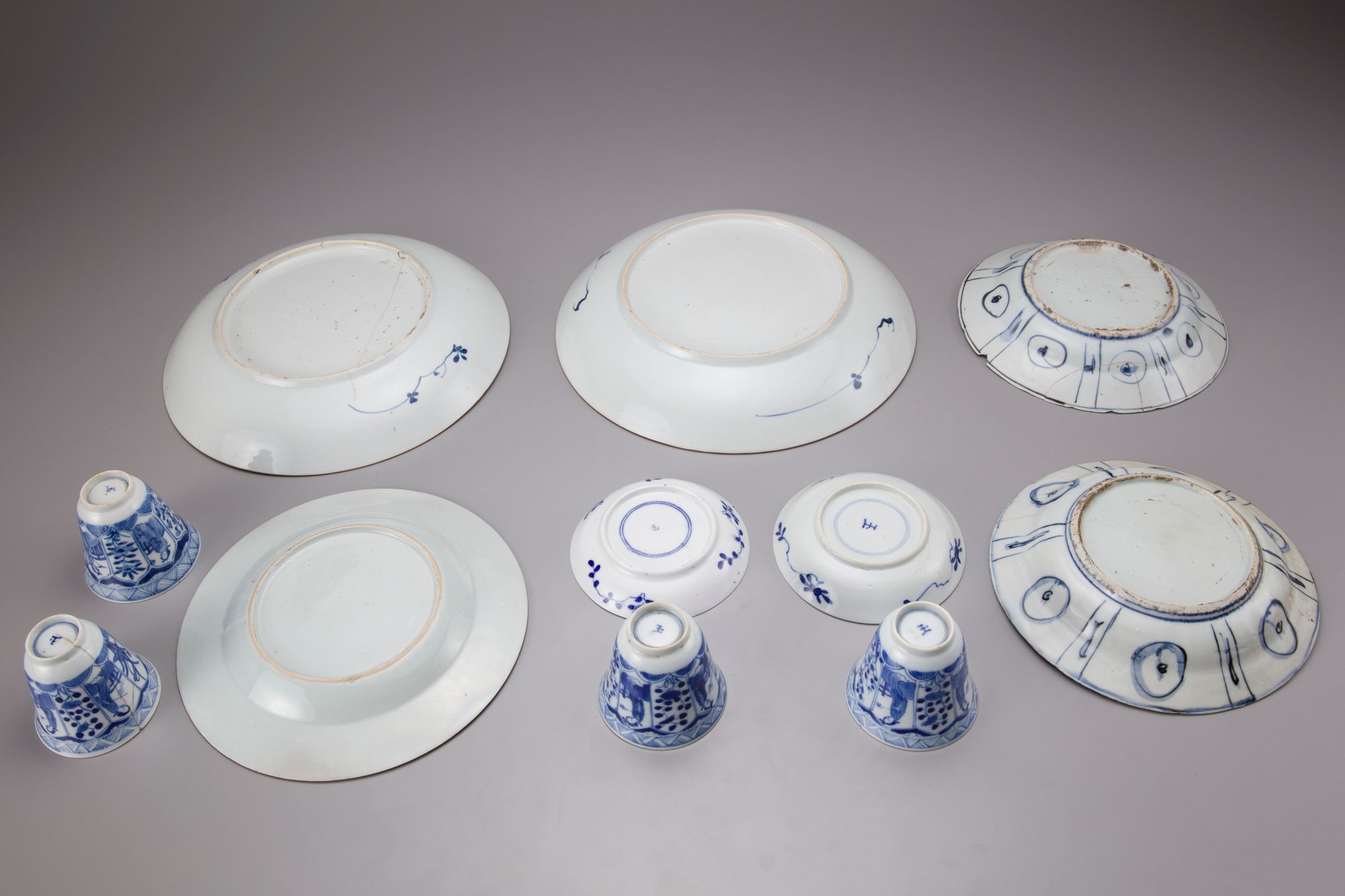 Consisting of various plates from the Wanli, Kangxi and Qianlong periods along with four Kangxi cups and two saucers.