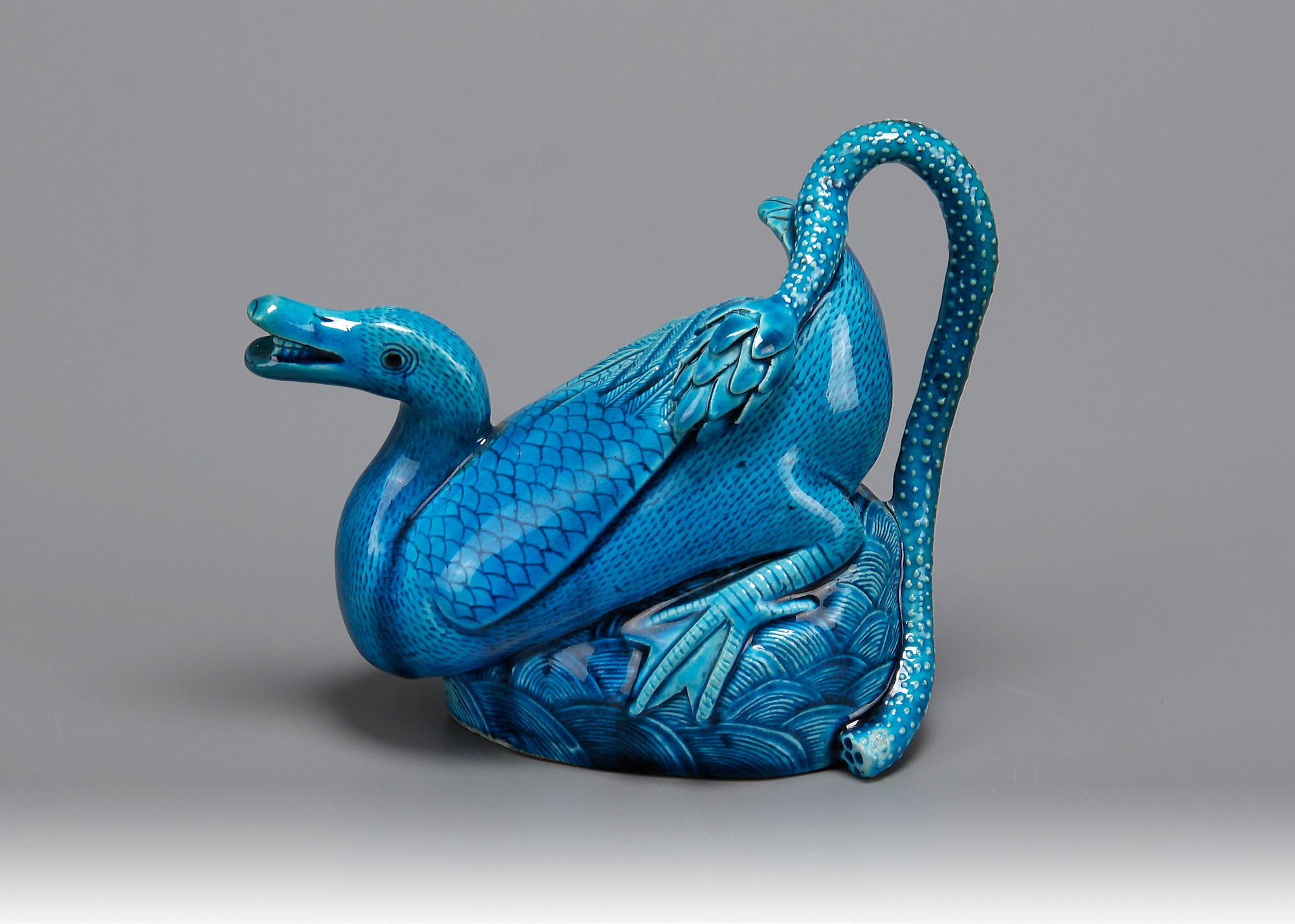 A Chinese Turquoise Wine pot, in the shape of a duck