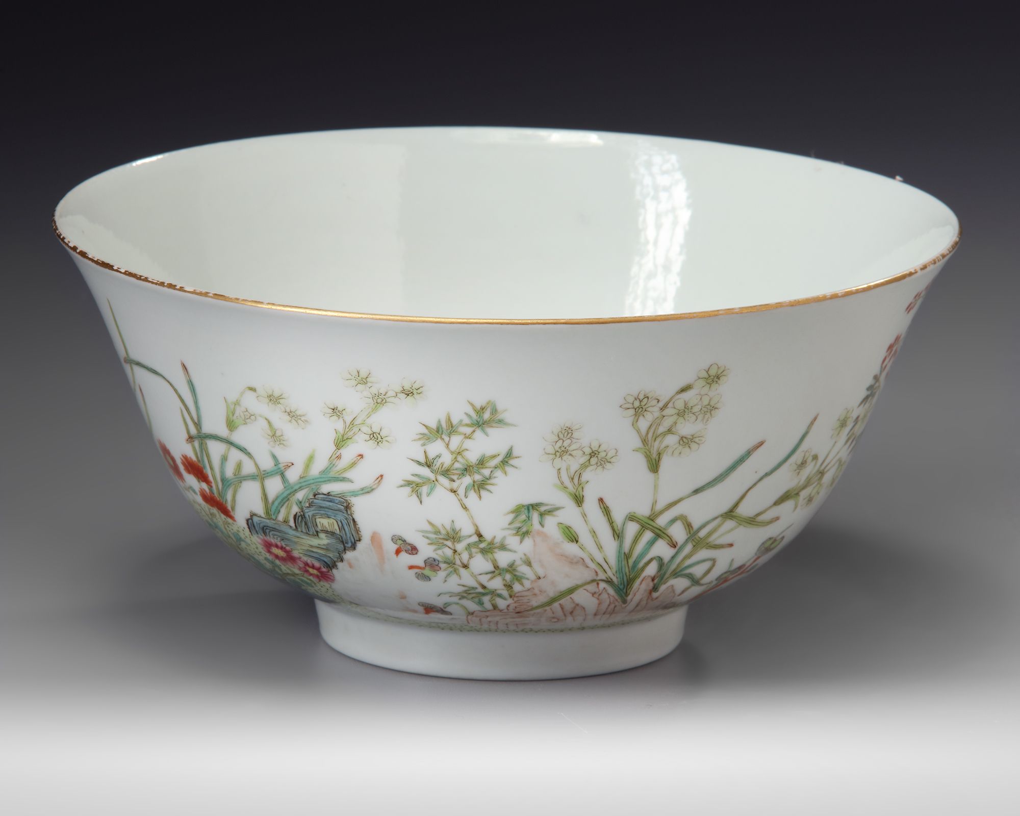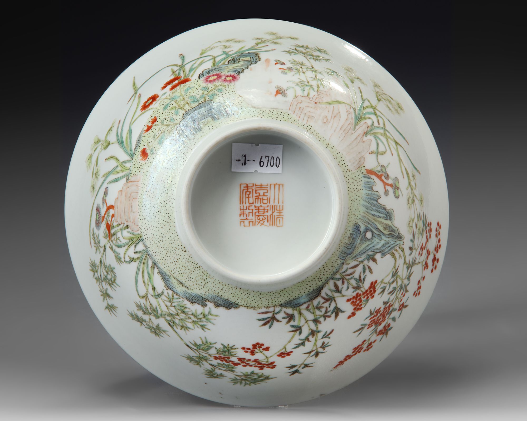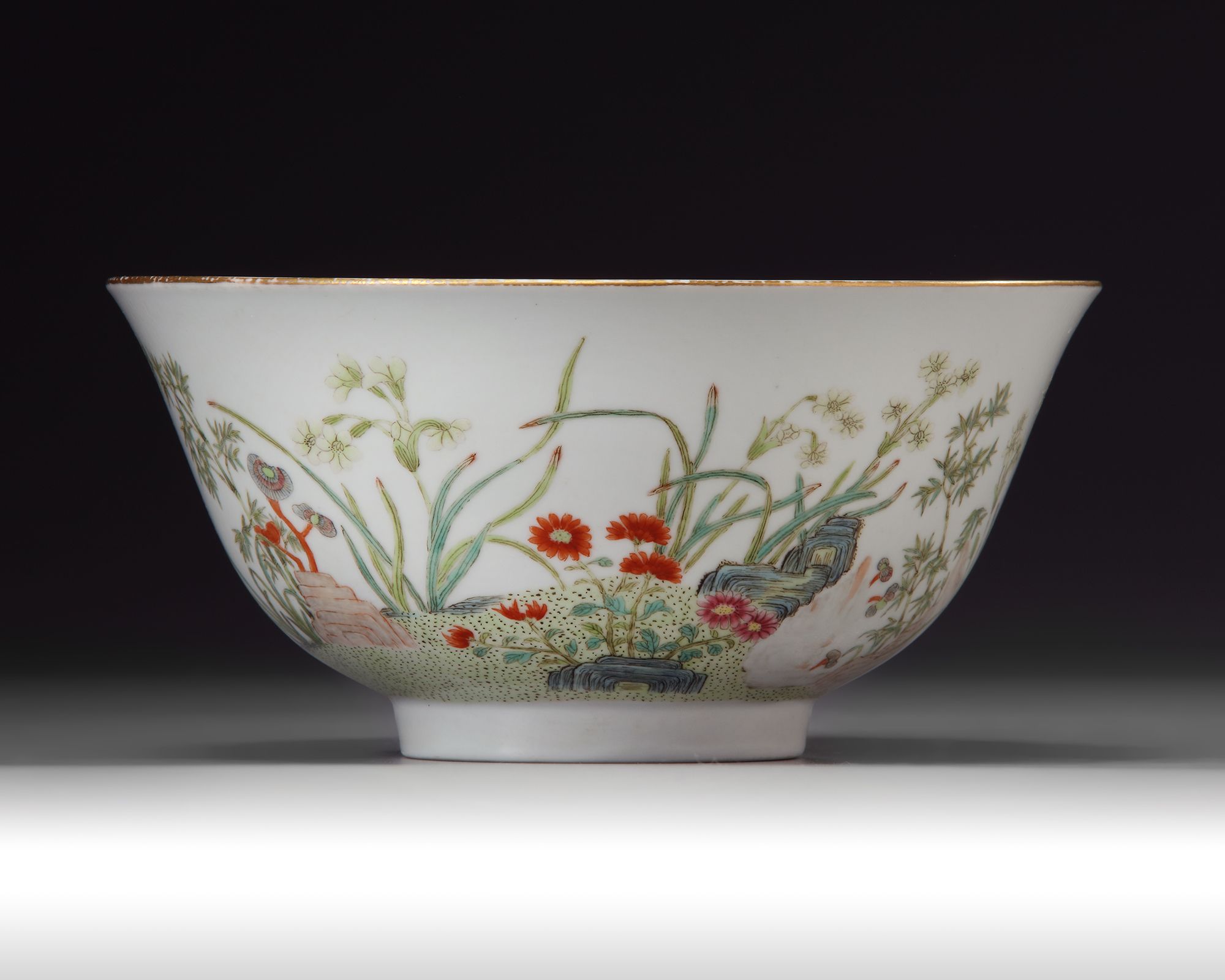 A CHINESE FAMILLE ROSE 'FLOWER AND LINGZHI' BOWL, 19TH-20TH CENTURY