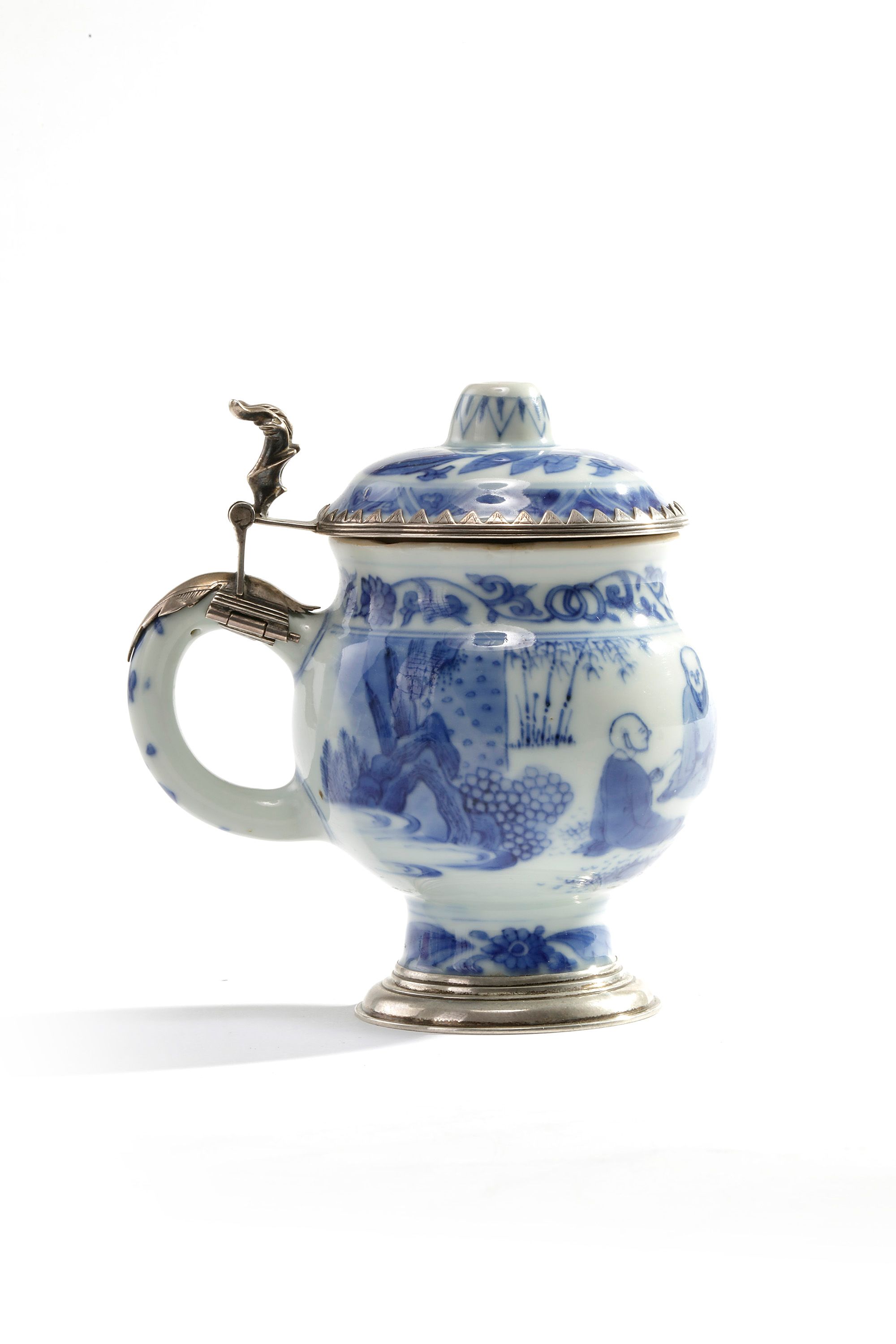 Catalogue notes: a Transitional-period blue and white mustard pot with a figural decoration from the Joseph M. Morpugo Collection was sold at Sotheby's London, 2 May 2017, lot 2.