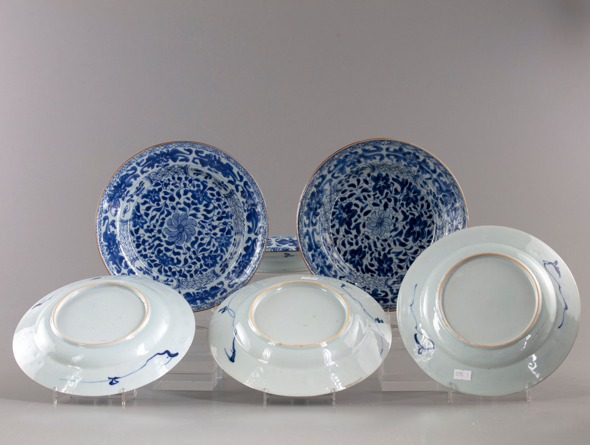 Each dish is decorated with a dense design of flowers amongst foliage.
