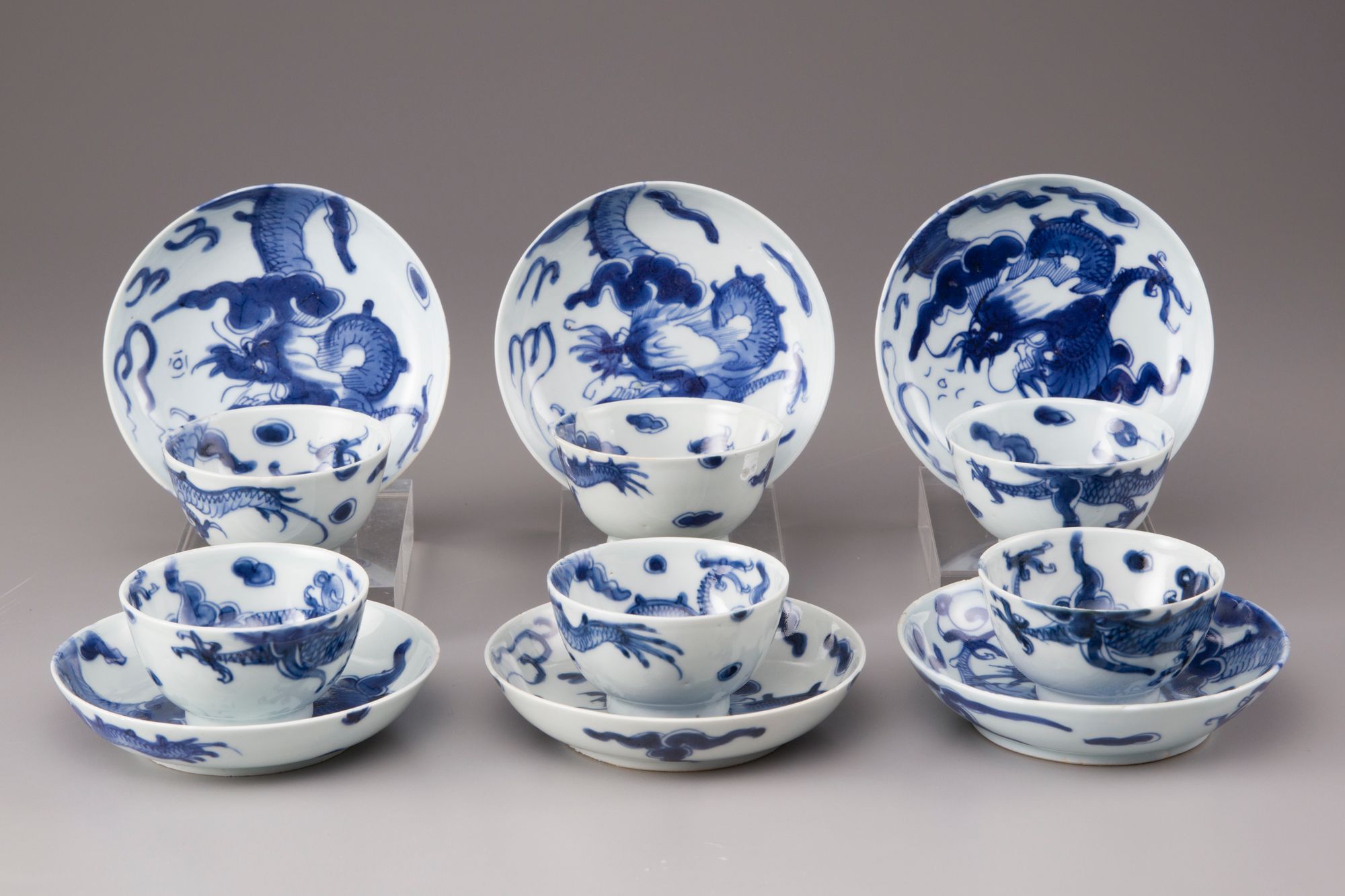 Decorated with a four-clawed dragon chasing the flaming pearl amongst stylised clouds.