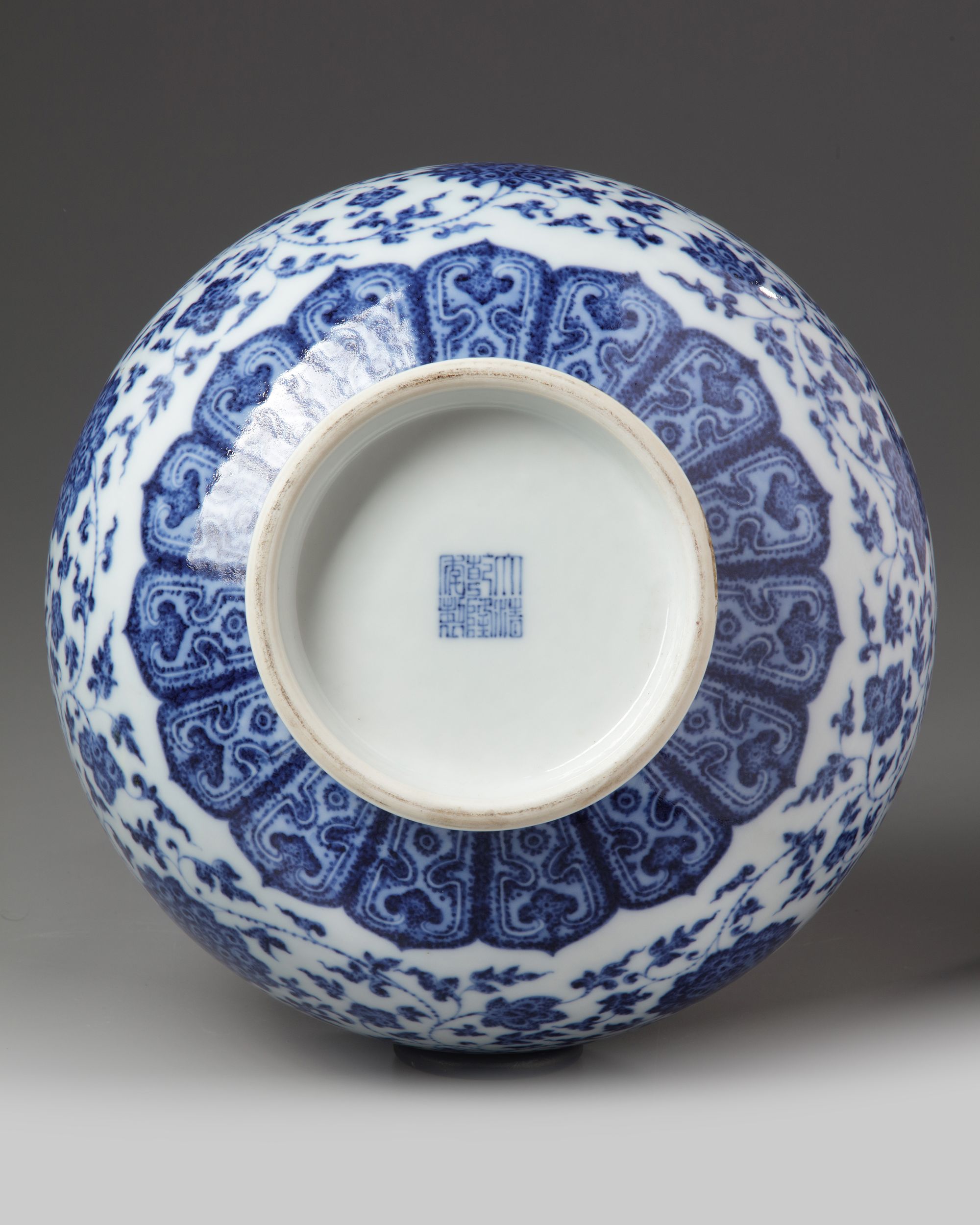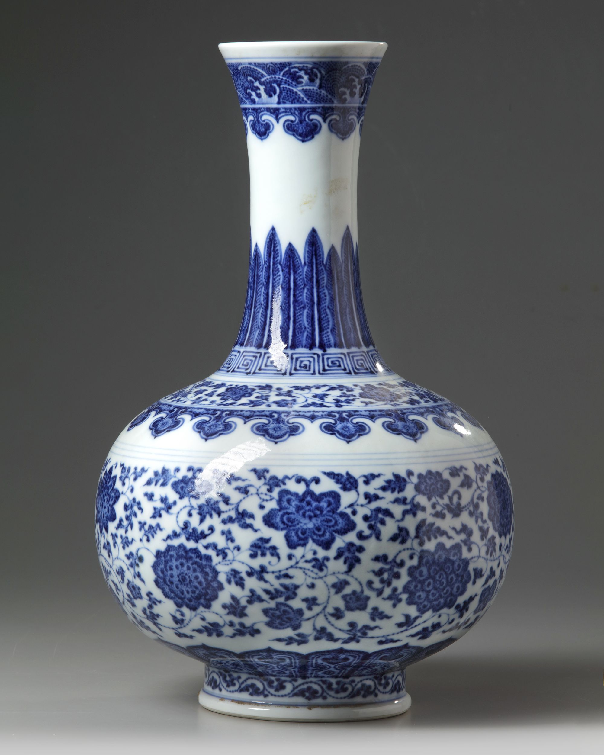 A Chinese blue and white 'scrolling lotus' bottle vase A Chinese blue and white 'scrolling lotus' bottle vase A Chinese blue and white 'scrolling lotus' bottle vase A Chinese blue and white 'scrolling lotus' bottle vase