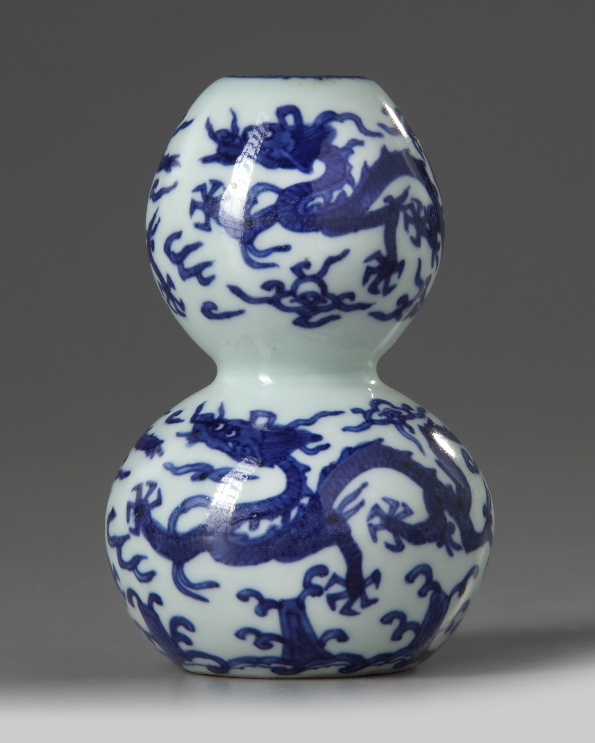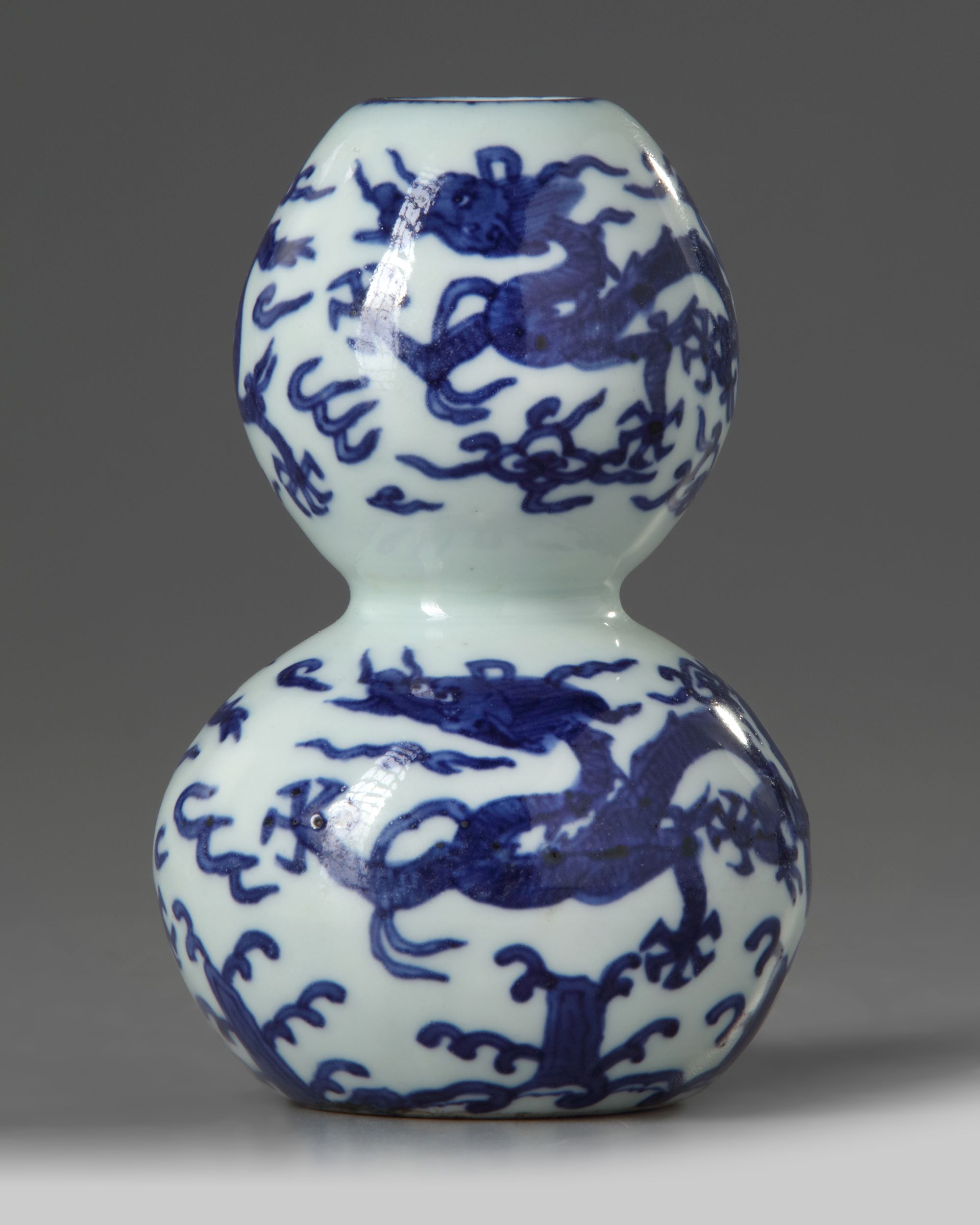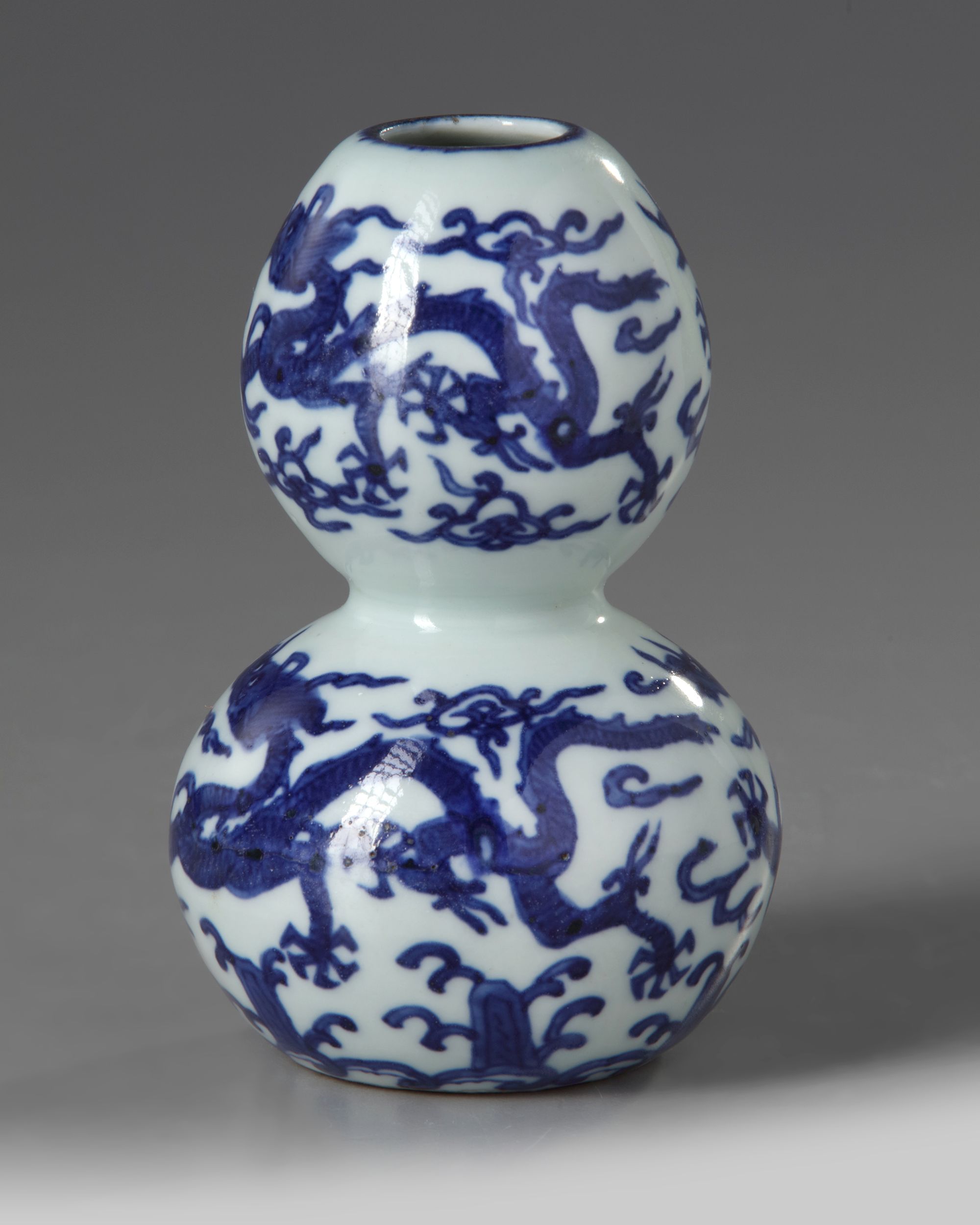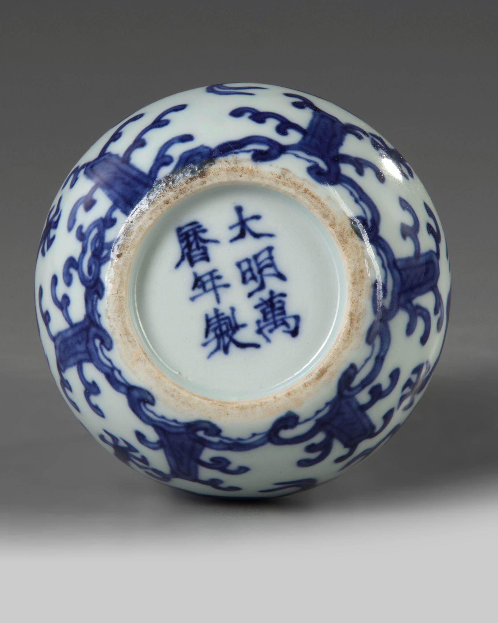 Each section is decorated with two striding dragons amongst ruyi shaped clouds and flame scrolls, the base with apocryphal Wanli mark.