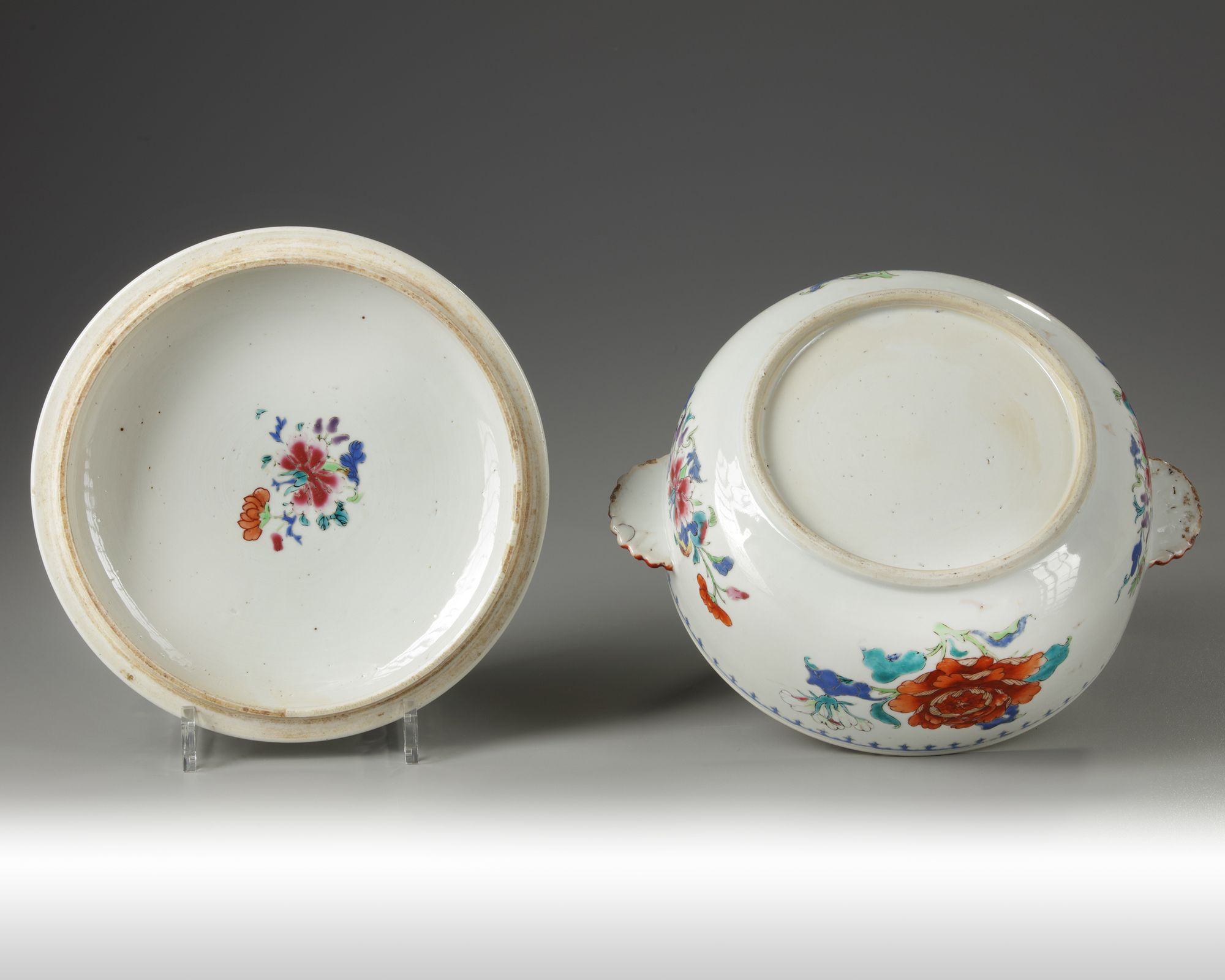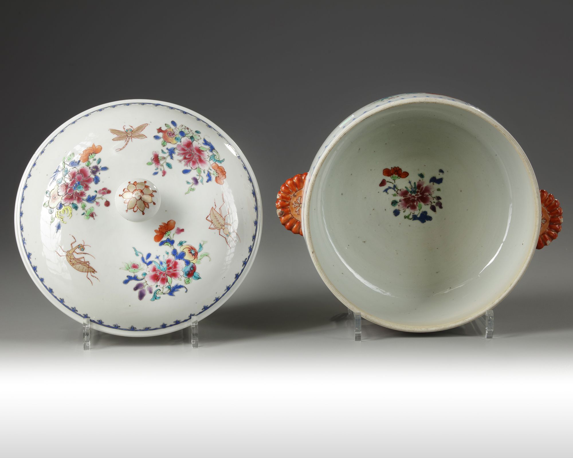 A CHINESE FAMILLE ROSE FLORAL TUREEN AND COVER, 18TH CENTURY