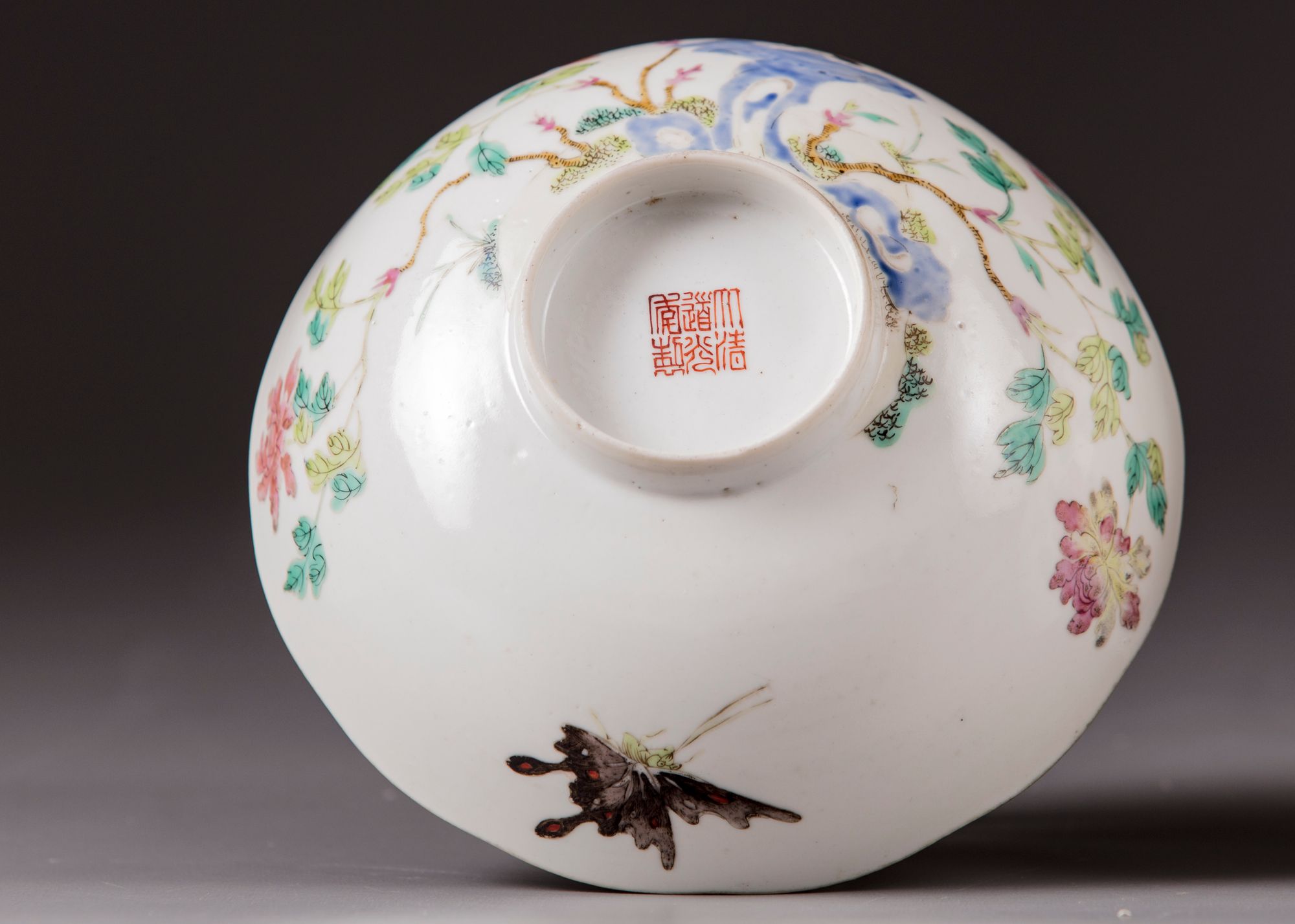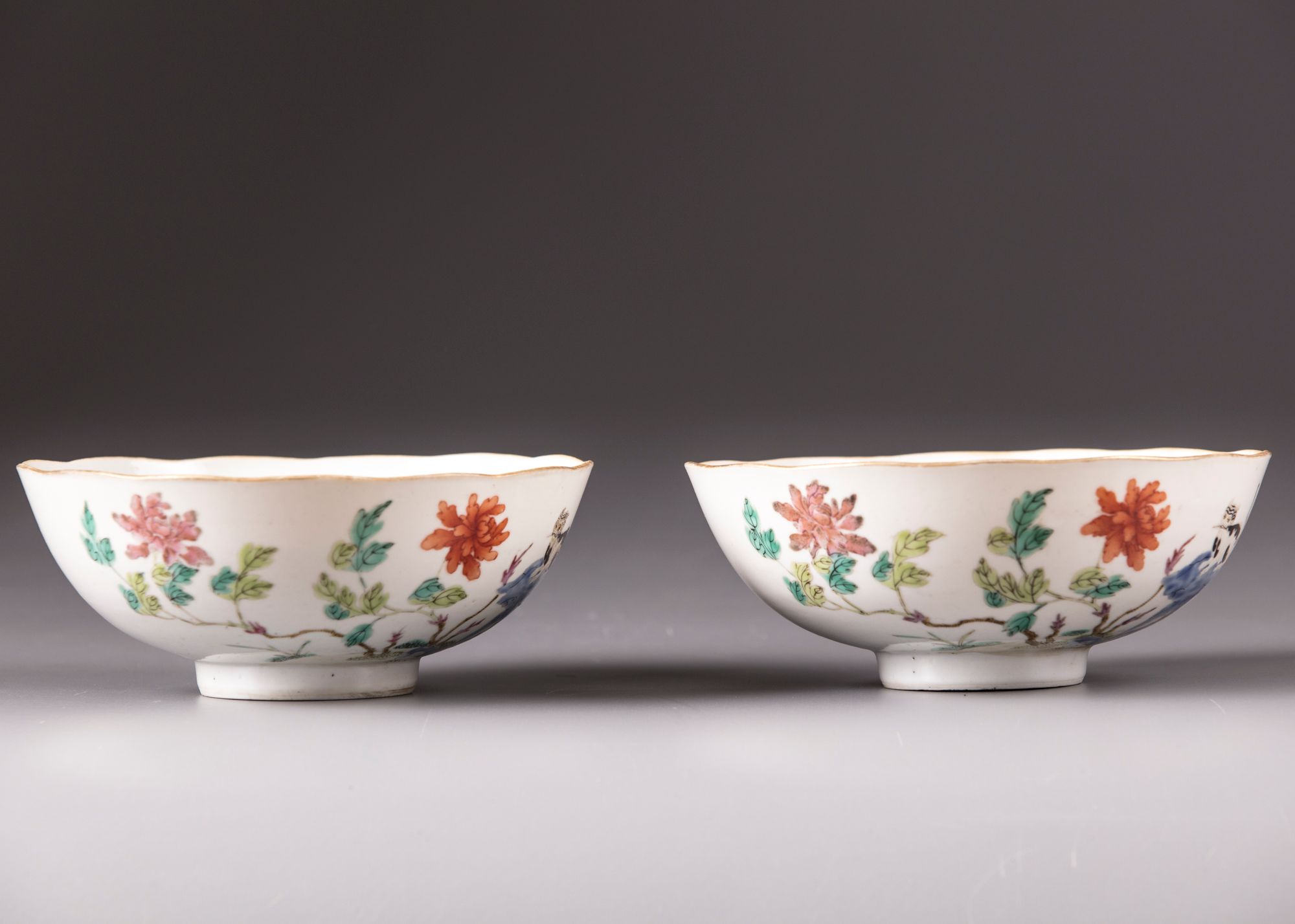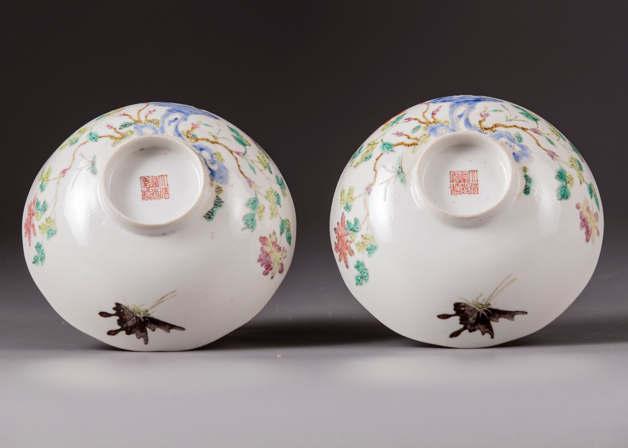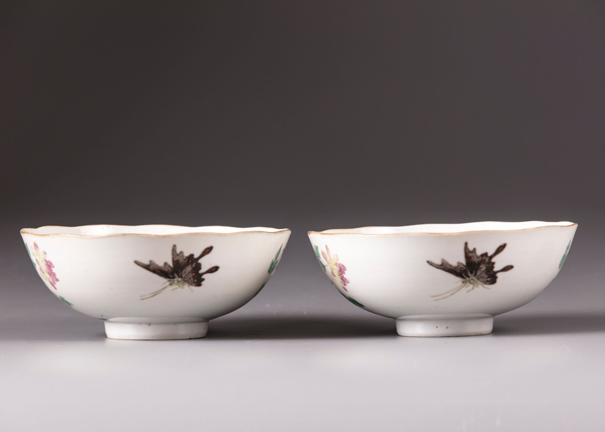 A pair of Chinese famille rose 'butterfly and flower' bowls