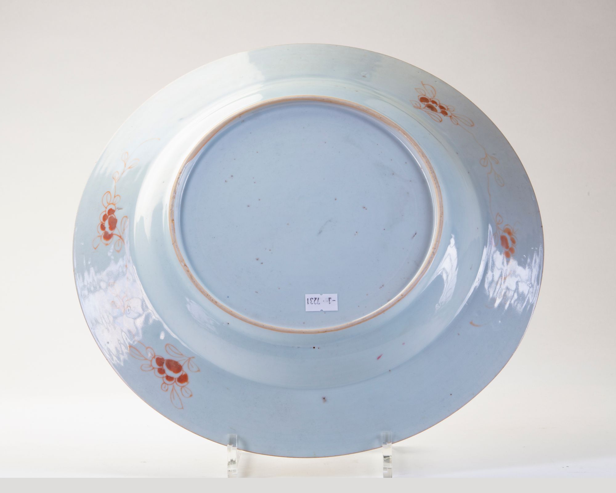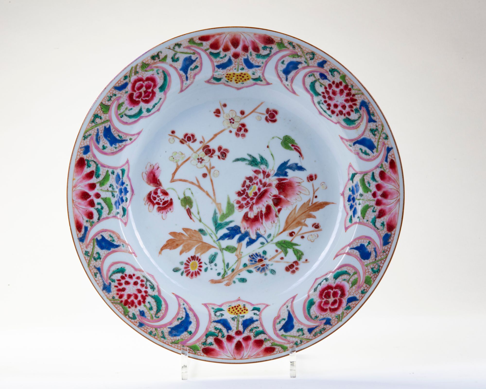 Decorated with rich colored floral sprays. 32 cm diameter.