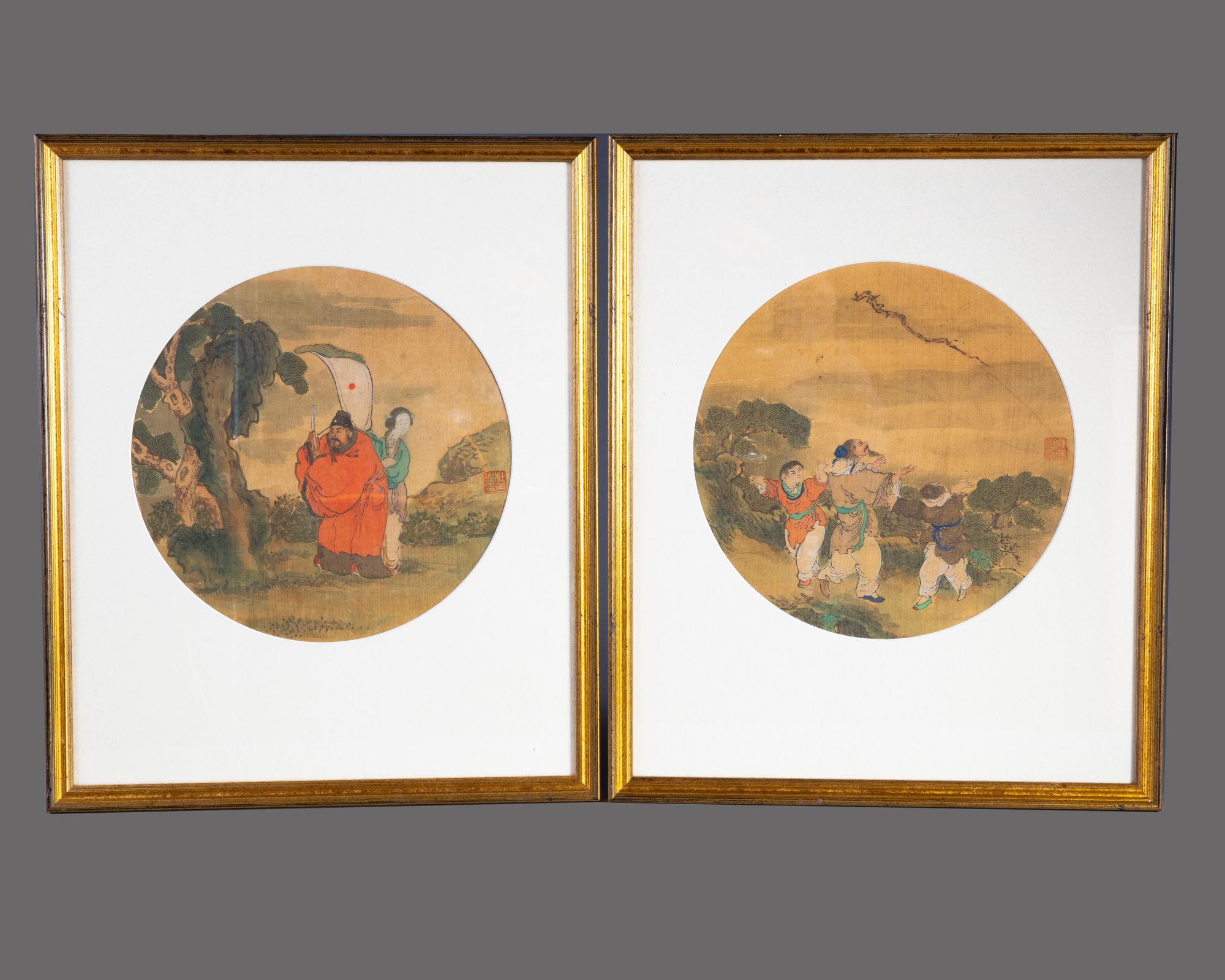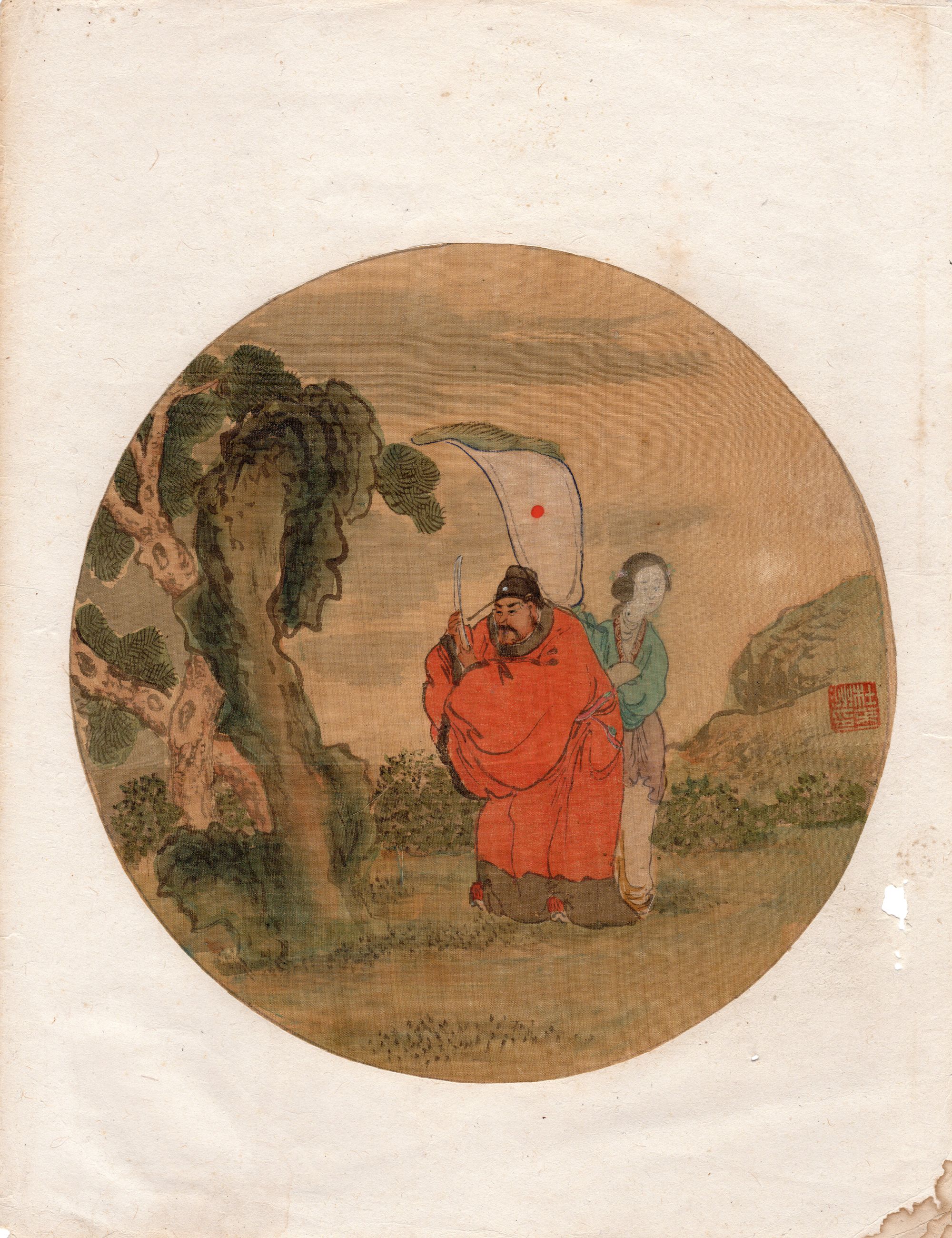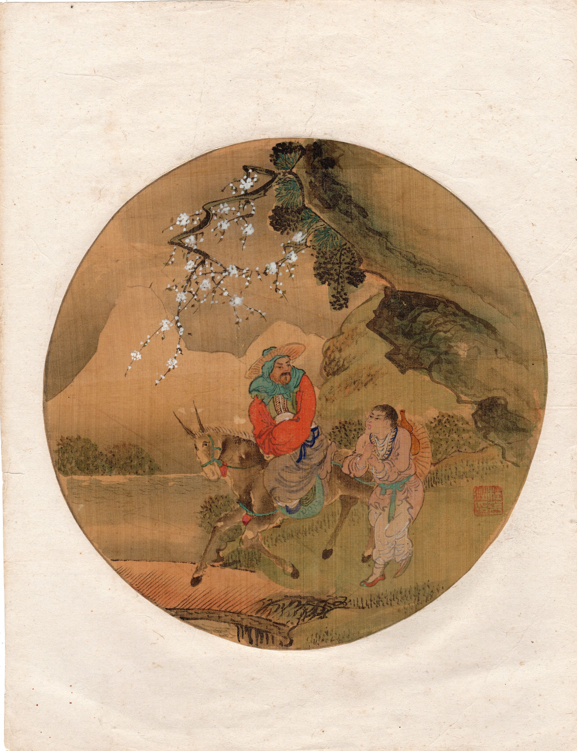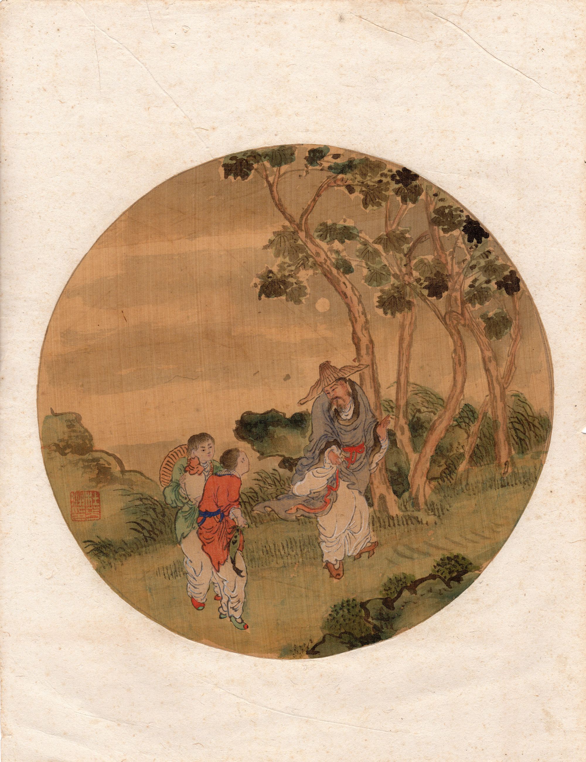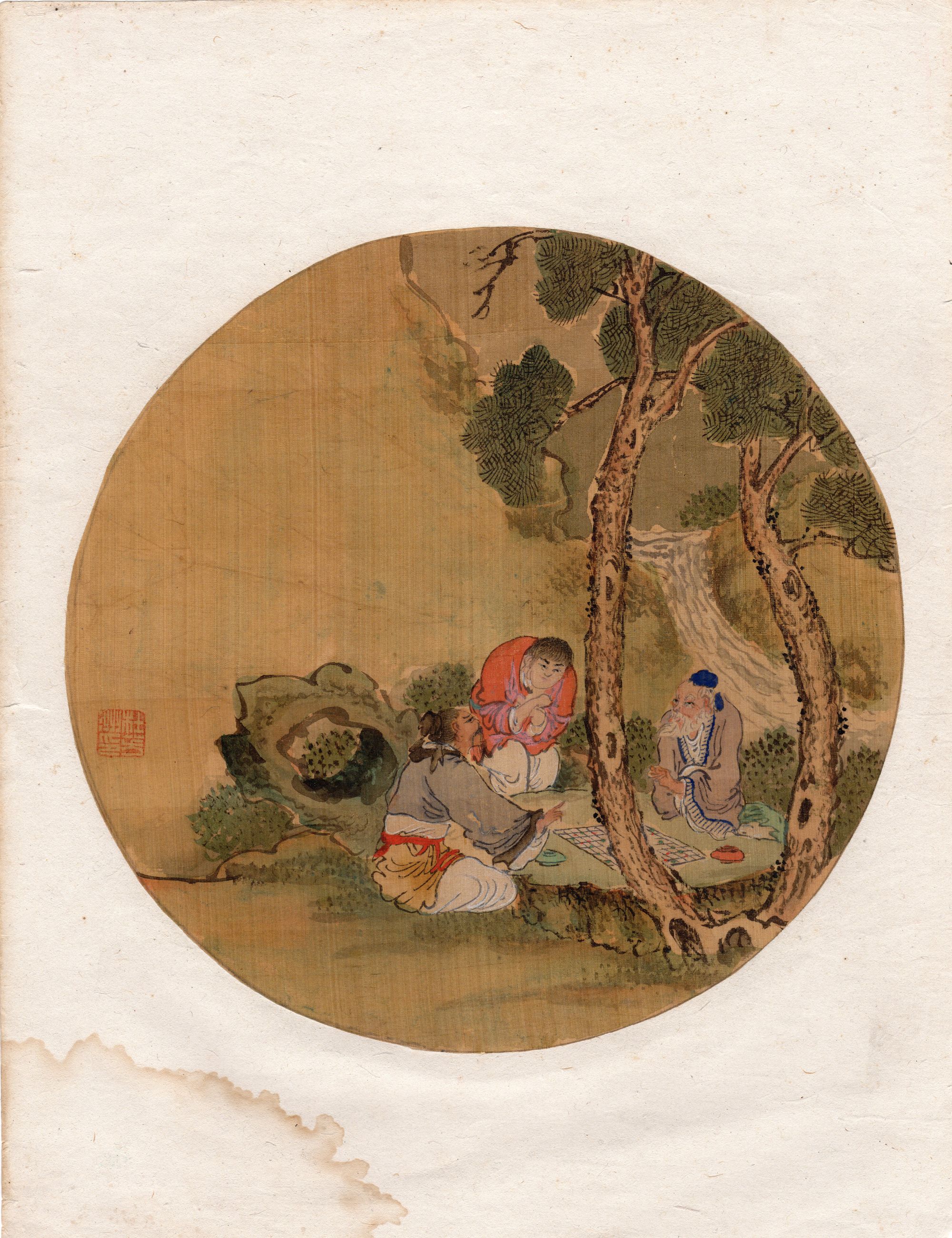 Ink and colour on silk. Album leaves mounted on paper. Each painting depicts scholars, monks, ladies and boys in various landscapes. One painting is signed in Du Fangzhou in imitation of Qiu Ying (a Ming dynasty artist), some paintings are variously signed by the artist, each painting with a seal reading 'Du Fangzhou yin'.