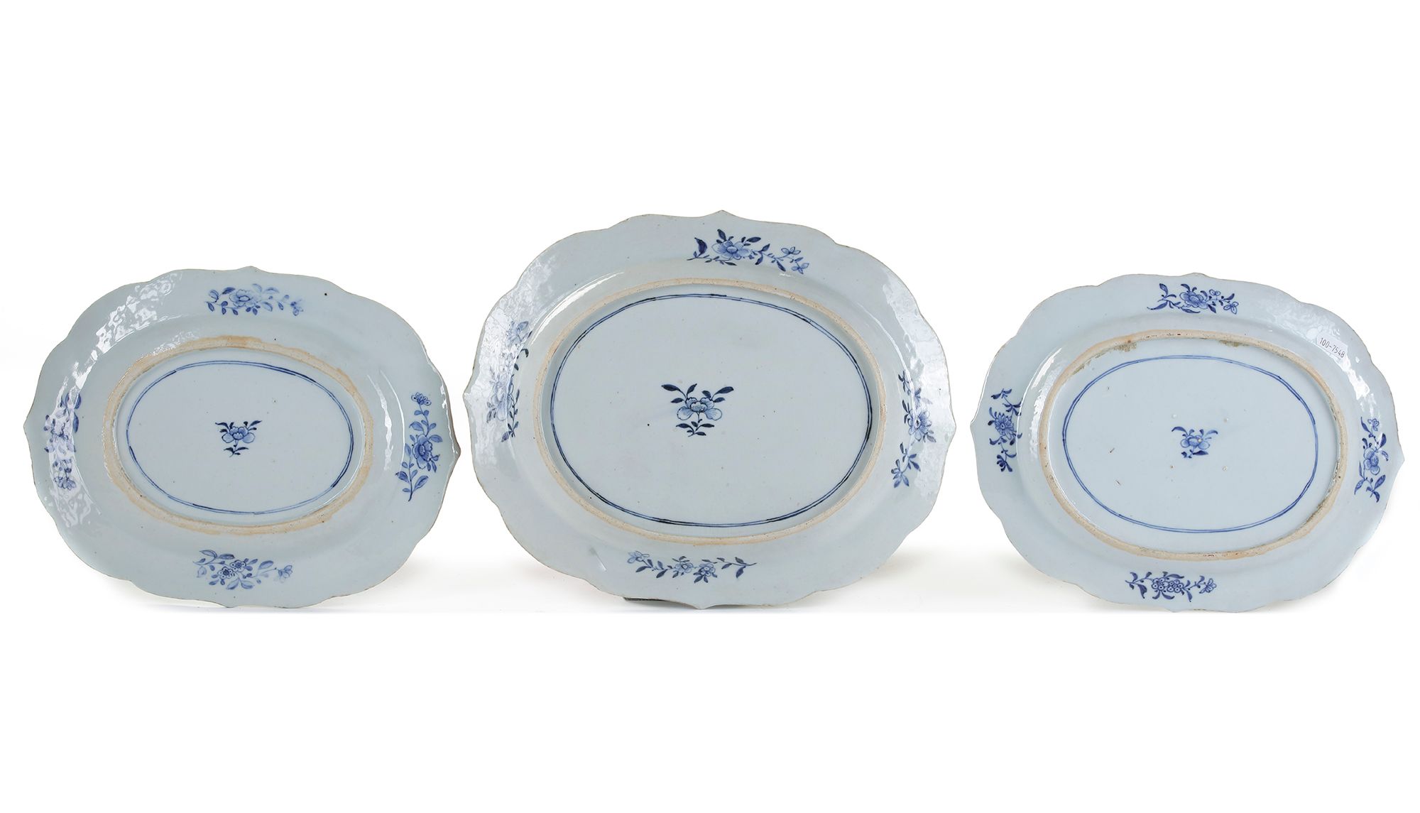 THREE CHINESE BLUE AND WHITE SERVING DISHES, QIANLONG PERIOD (1736-1795)
