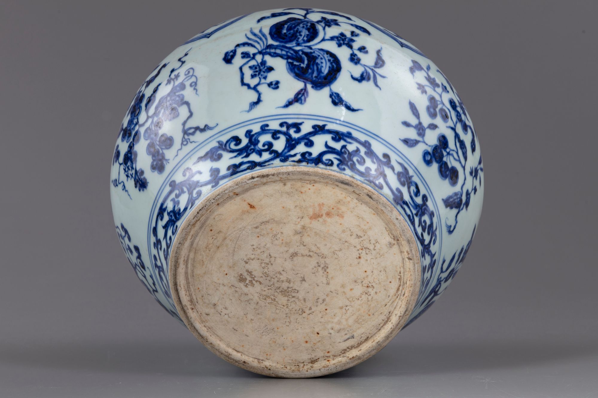 To the base with a band of scrolls with unglazed bottom.
