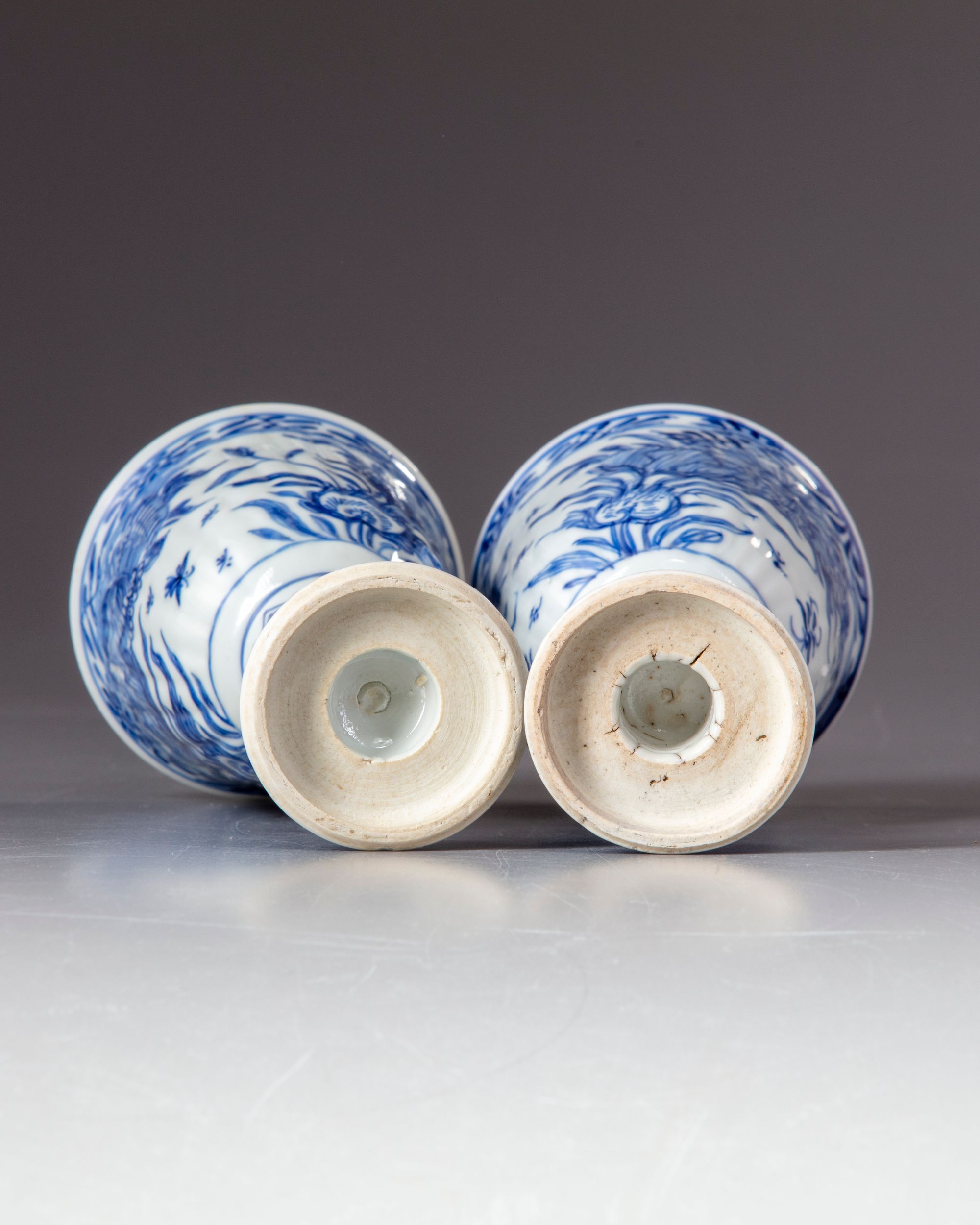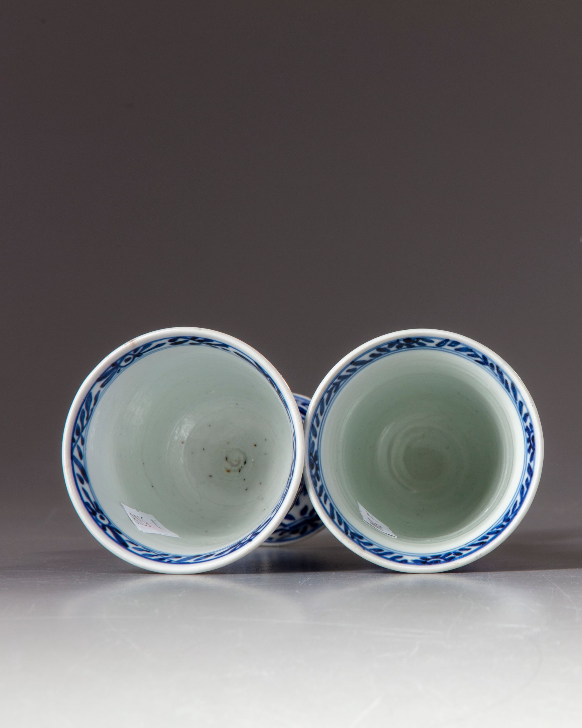 Two blue and white stemmed beakers Two blue and white stemmed beakers Two blue and white stemmed beakers