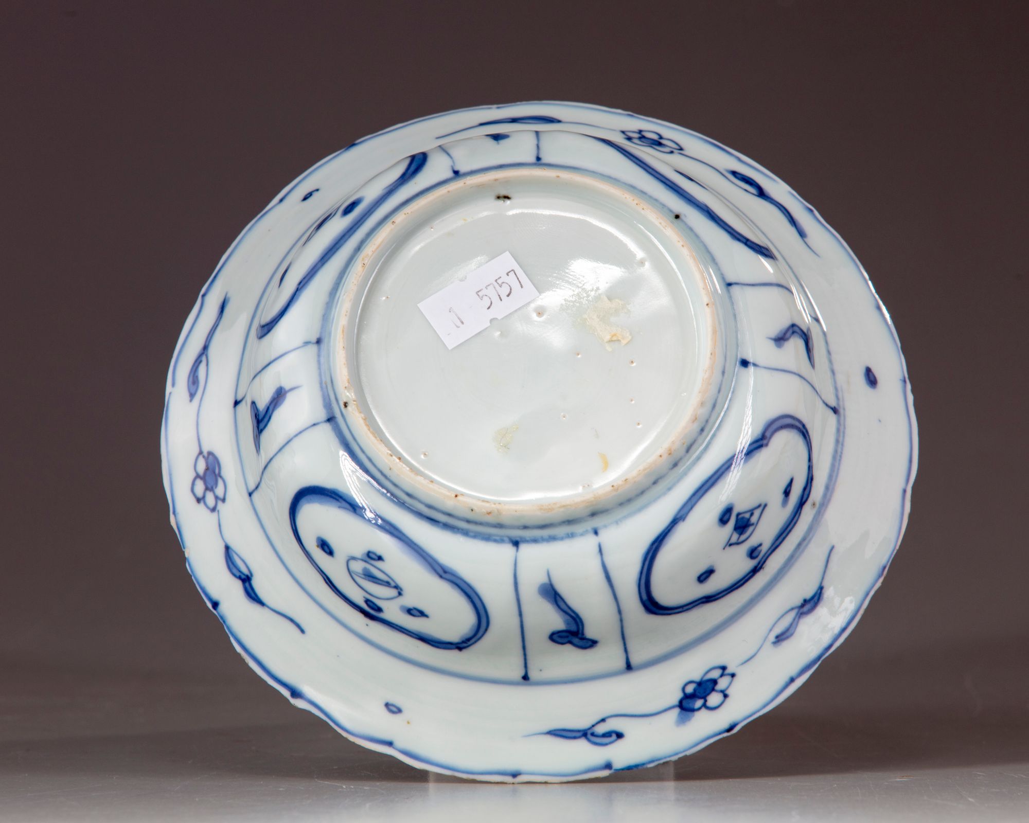 A Chinese blue and white “kraak porselein ” bowl, decorated with a central medallion enclosing two birds amongst flowers, to the sides with alternating masks and ruyi heads panels enclosing flowers.