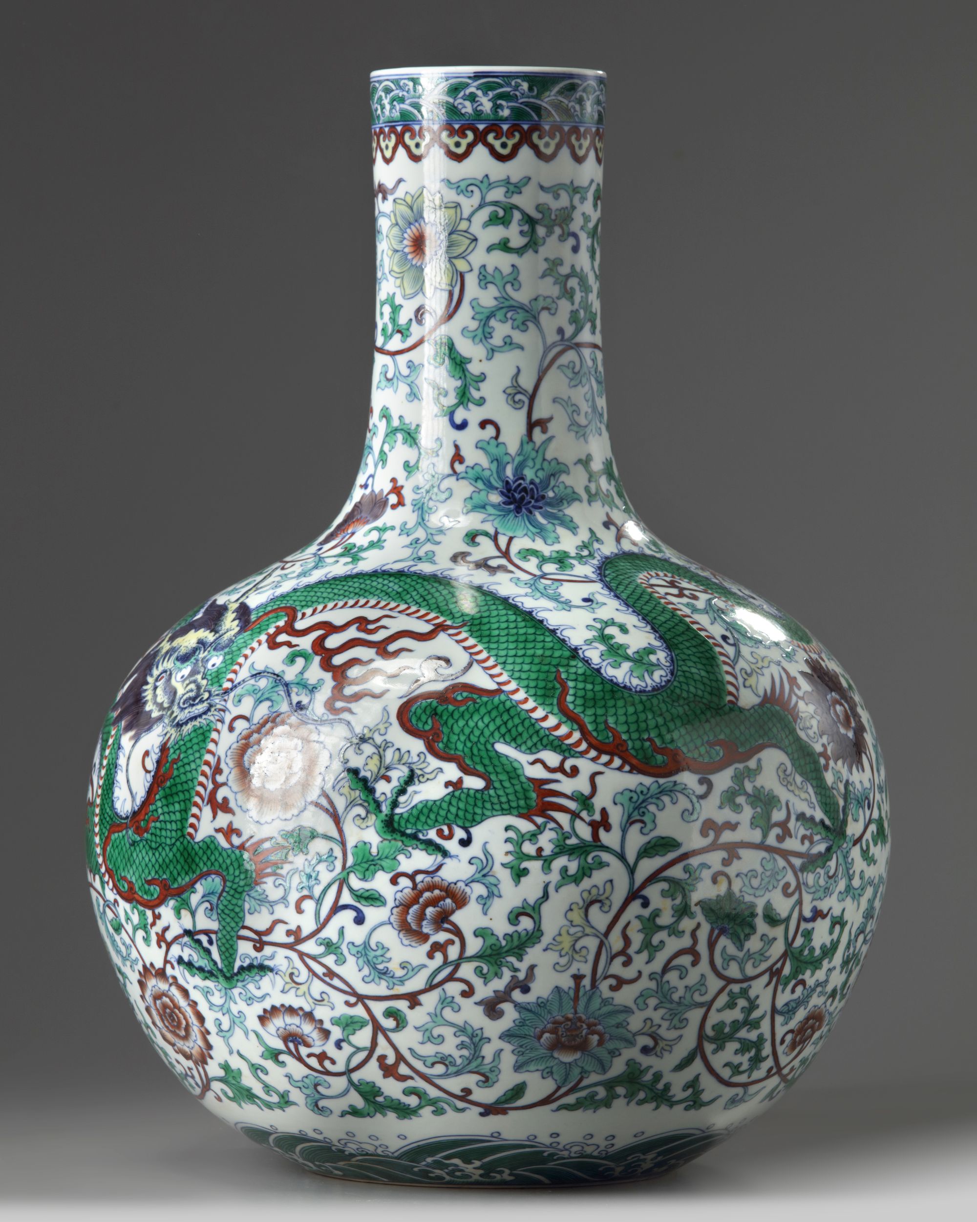 A LARGE CHINESE DOUCAI 'DRAGON AND PHOENIX' VASE, TIANQIUPING, 20TH CENTURY