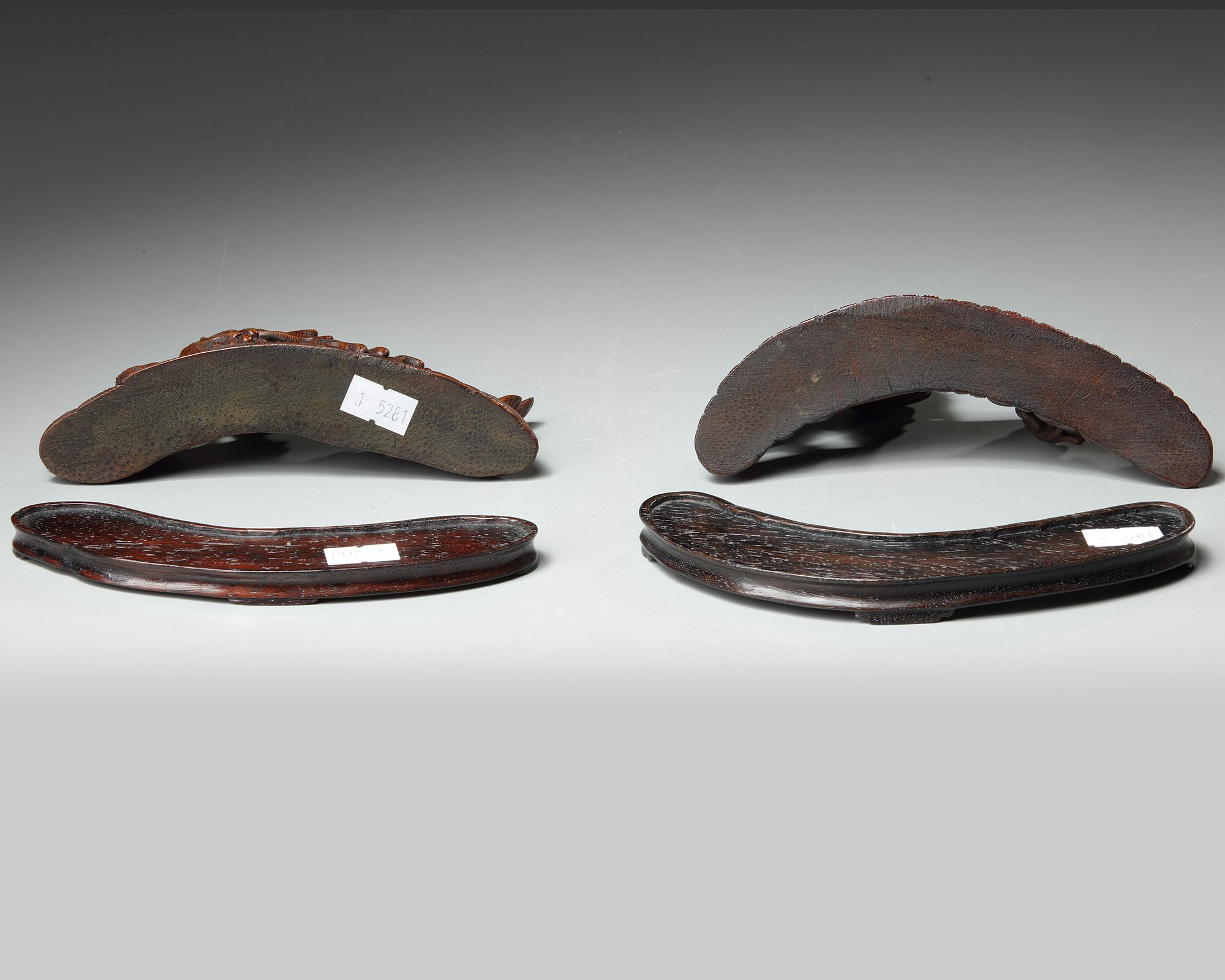 The dragon carp is 15.1 cm. long The qilin and young is 15.5 cm. long Each with a wood stand.