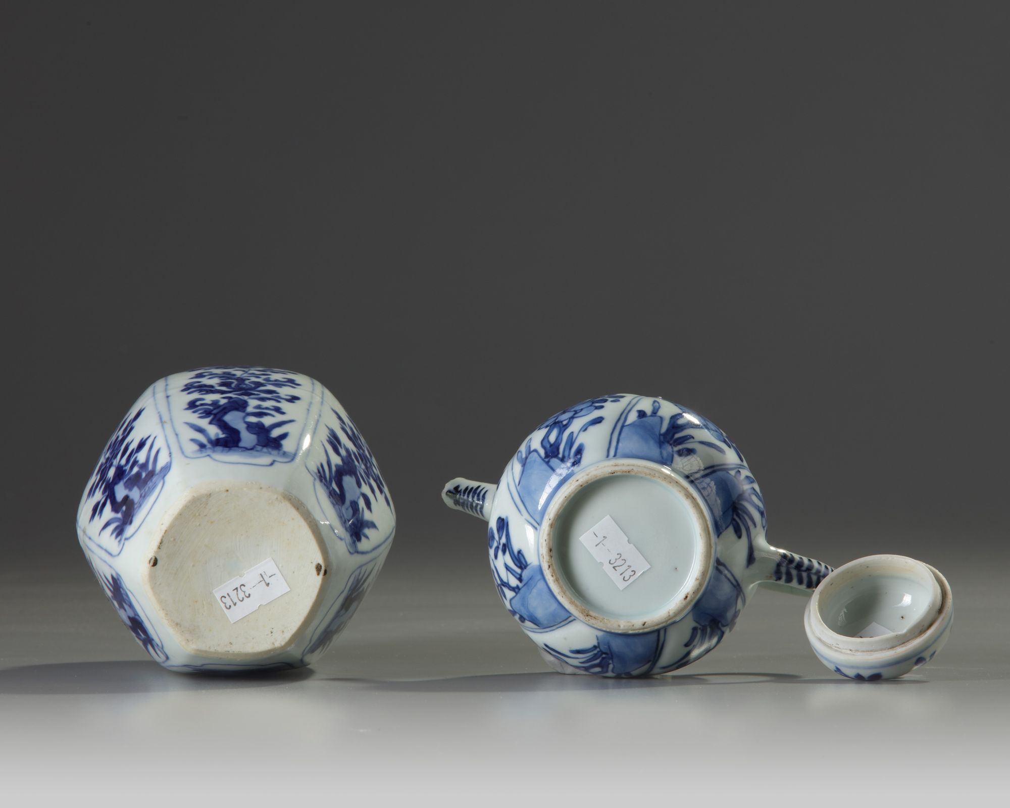 The teapot: 10.5 cm. high, 13.2 cm. wide The jar: 16.2 cm. high