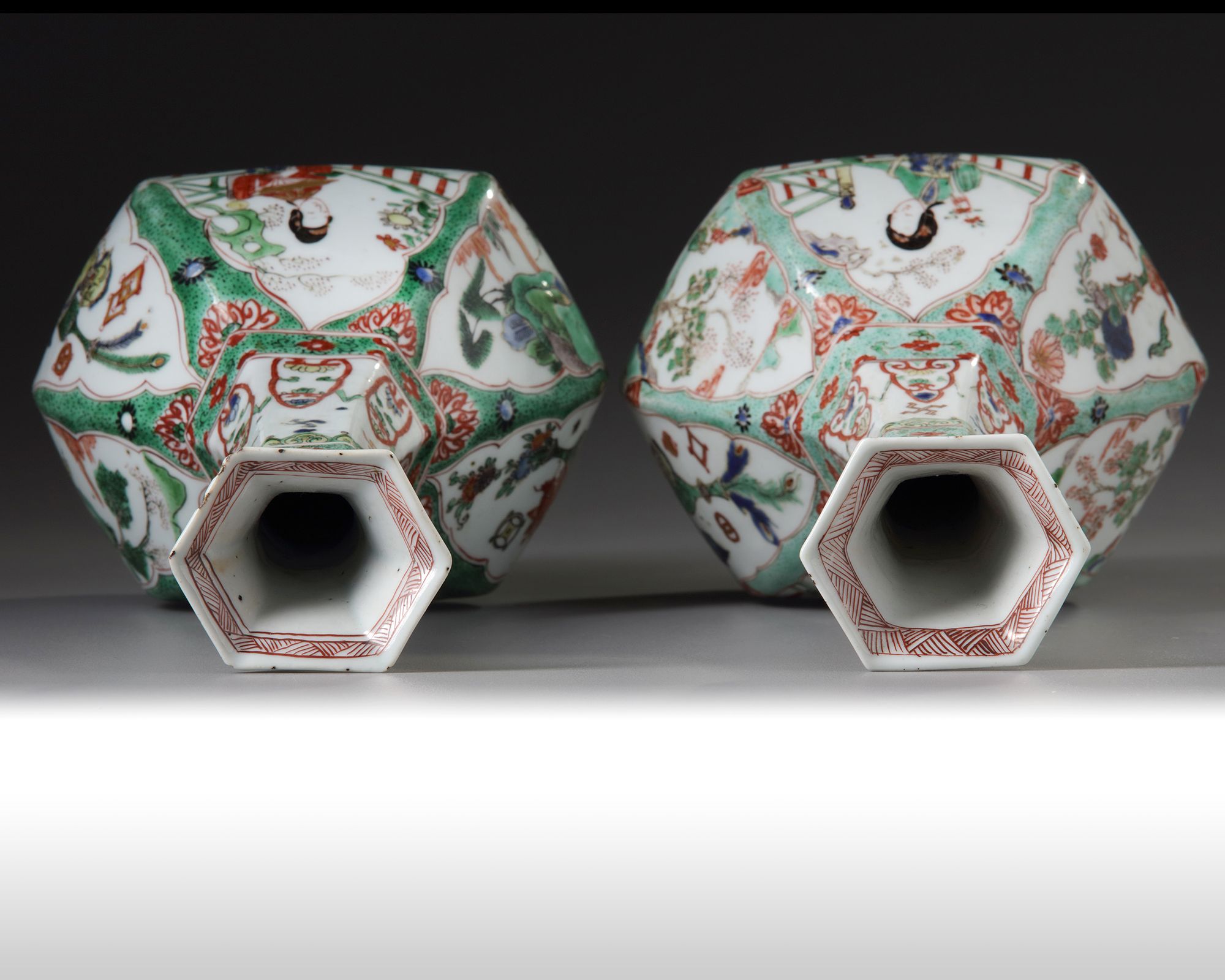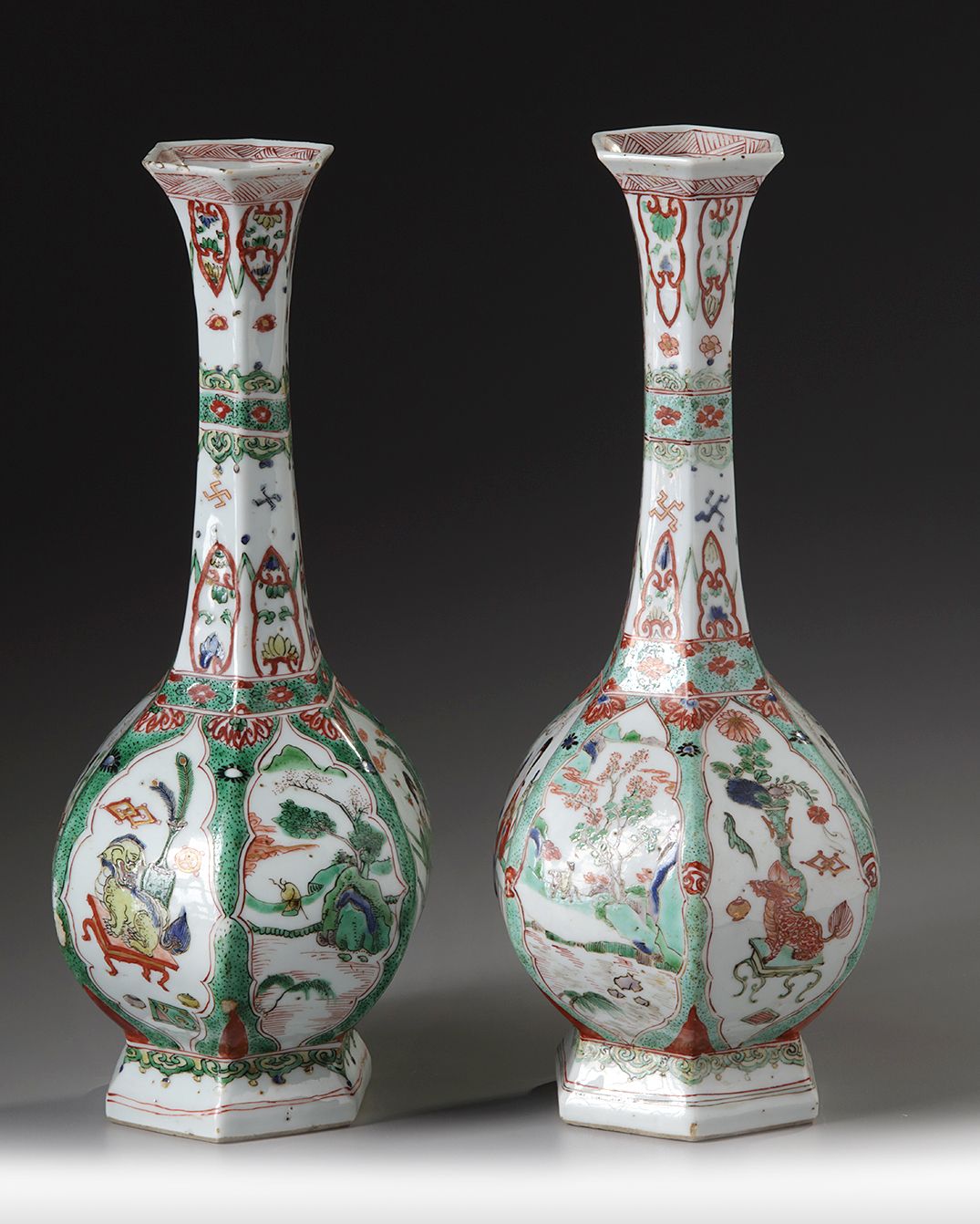Catalogue notes: According to Prof. Dr. C.J.A. Jörg, the shape of these vases comes from 15th and 16th century versions inspired by Persian or North Indian metal models. Compare vases held in the Rijksmuseum, Amsterdam and Museum Boymans van Beuningen, Rotterdam. Another pair is illustrated the Leonard Gow Collection.