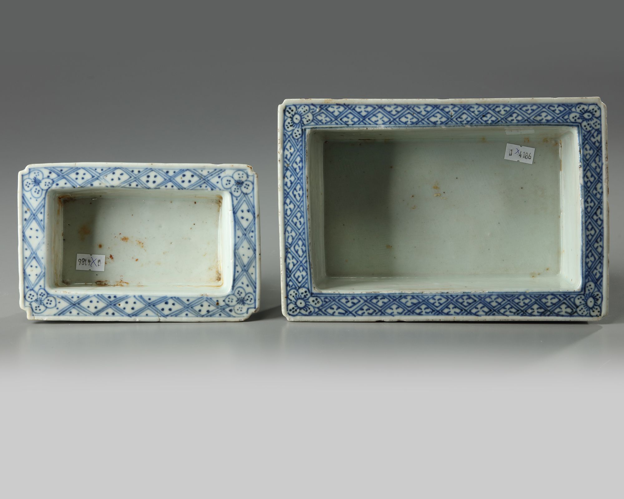 The larger jardinière: 6.5 cm. high by 24 cm. wide, 16.5 cm. deep The smaller jardinière: 5 cm. high by 17.7 cm. wide by 11.5 cm. deep