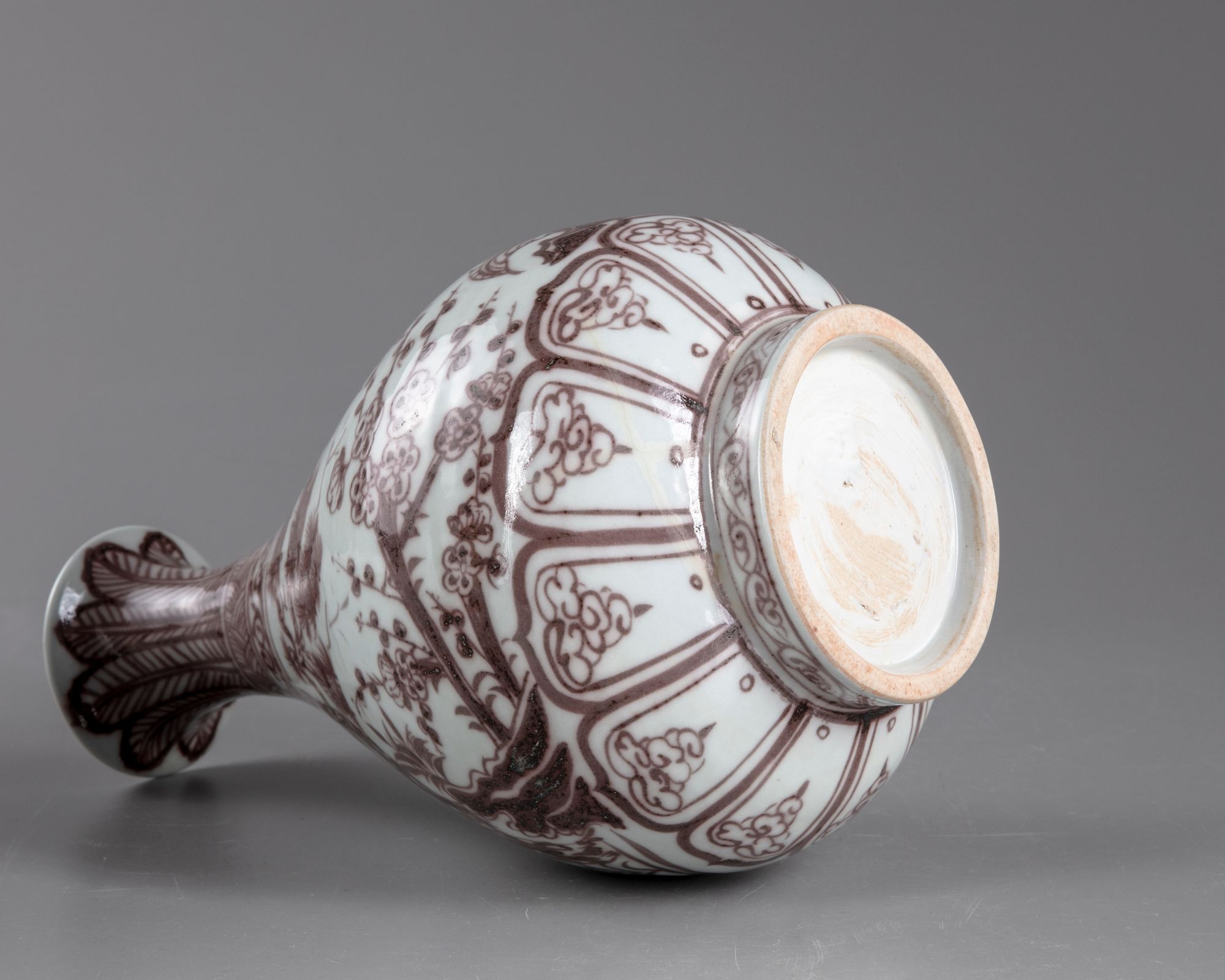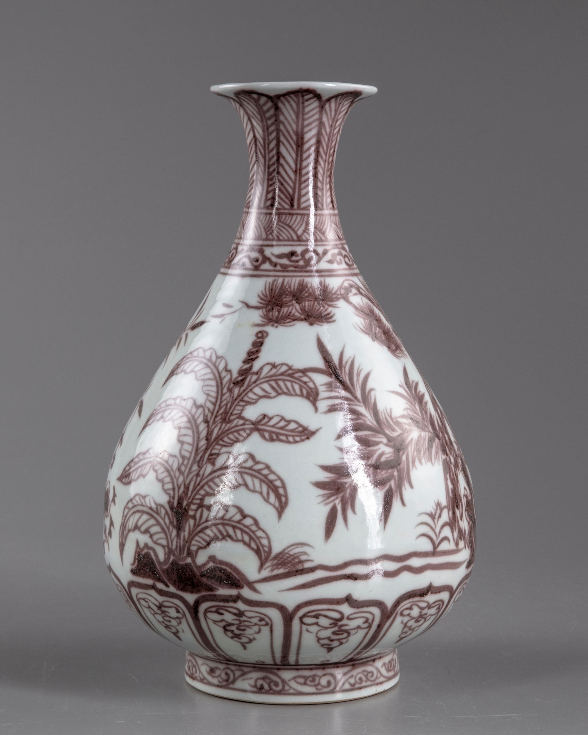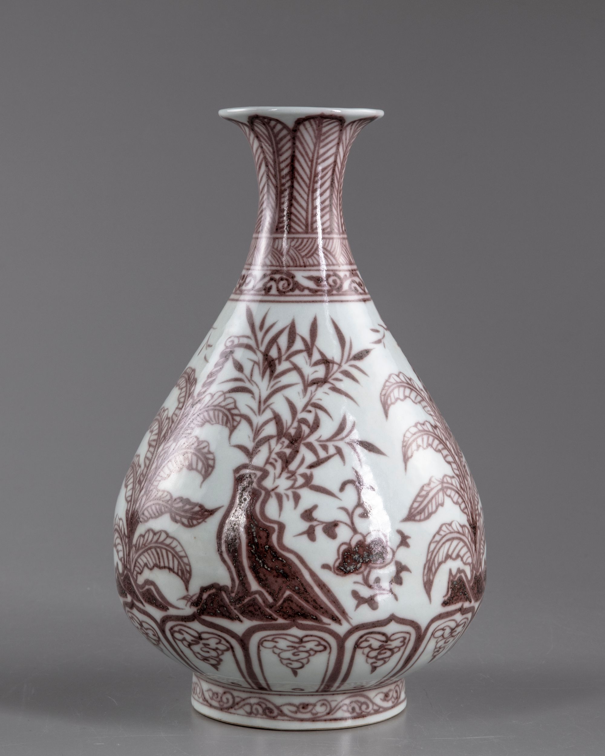 A CHINESE UNDERGLAZE COPPER-RED 'THREE FRIENDS OF WINTER' PEAR-SHAPED VASE, YUHUCHUNPING