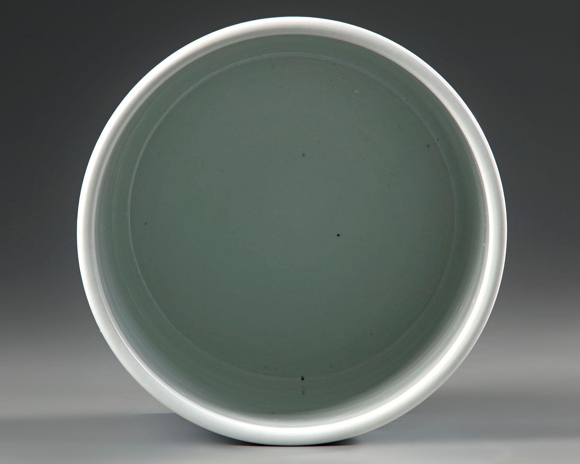 Decorated with a different landscape scene, with mountains, rivers, and pavilions, some with figures. Height: 16 cm. Diameter: 18 cm.